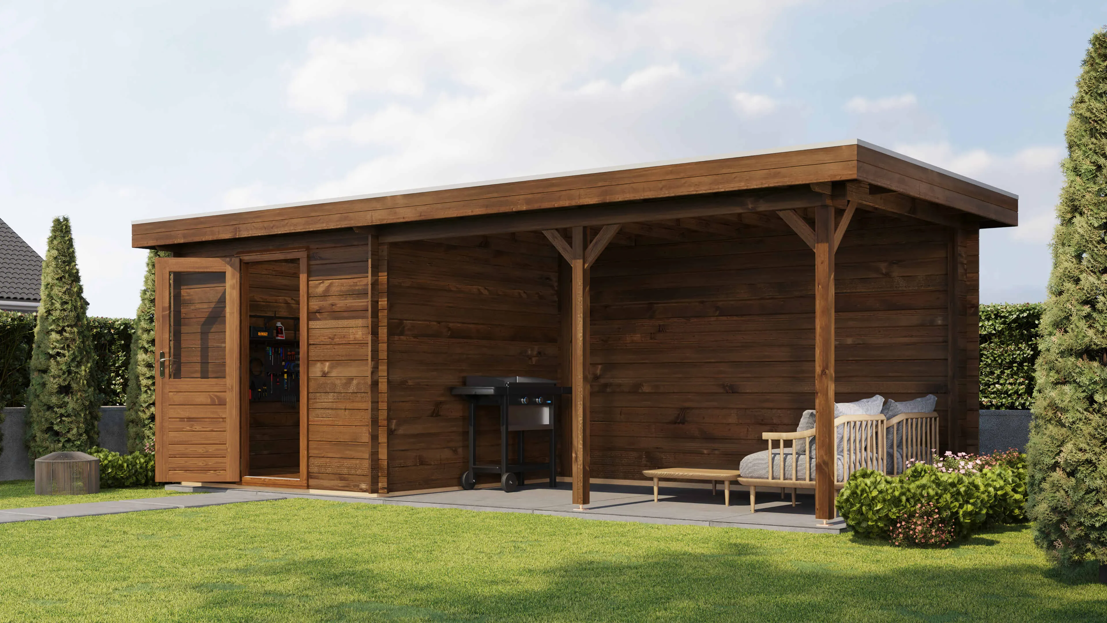 Hinweis: Das Gartenhaus wird unbehandelt geliefert. Die EPDM-Dachabdichtung ist separat erhältlich.