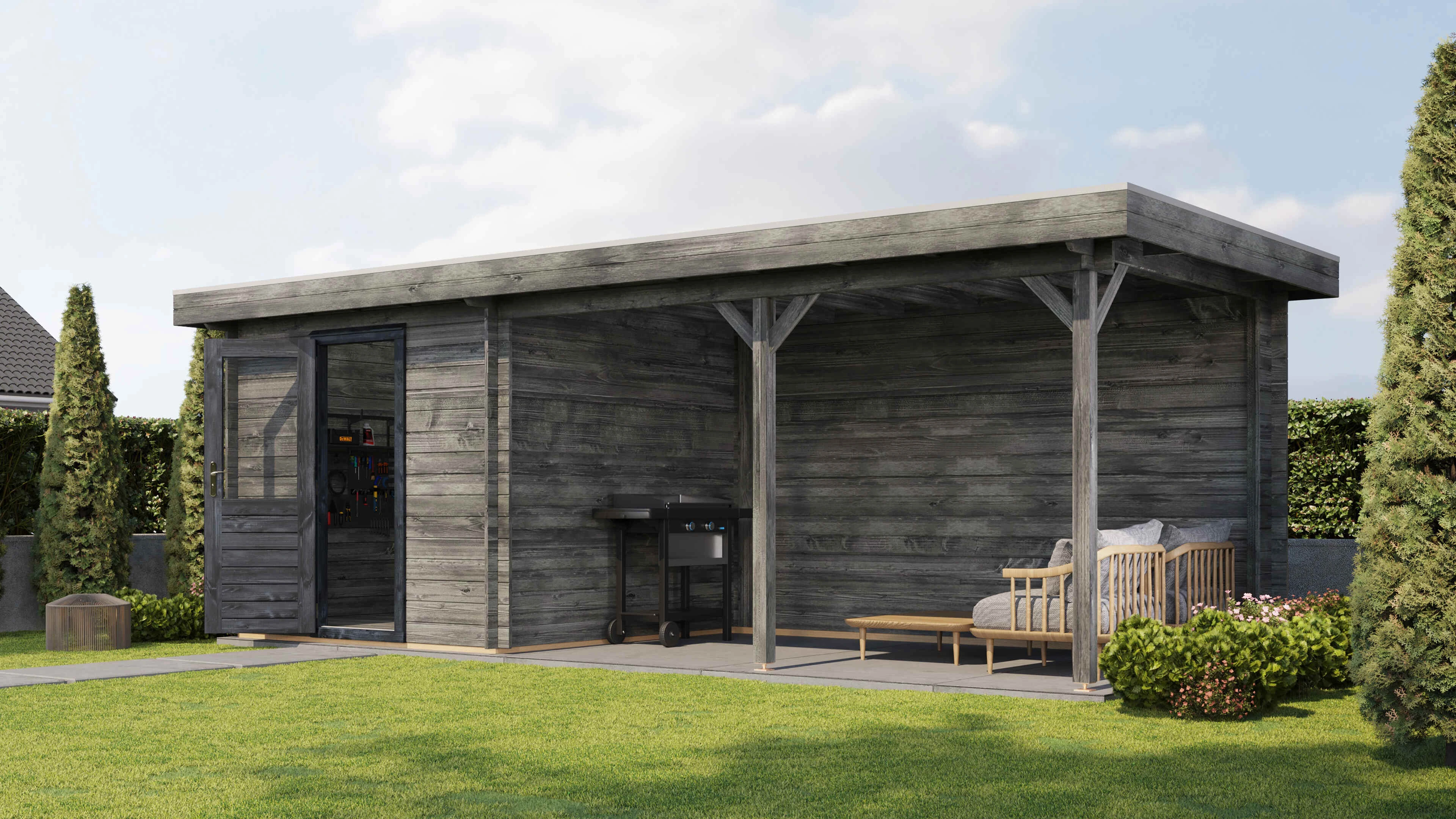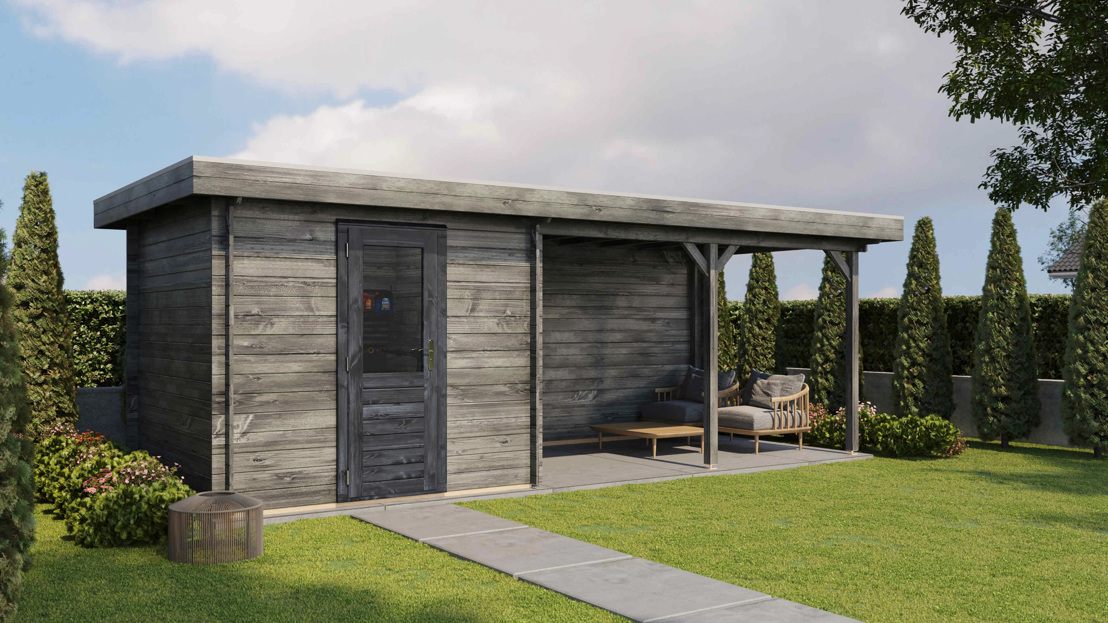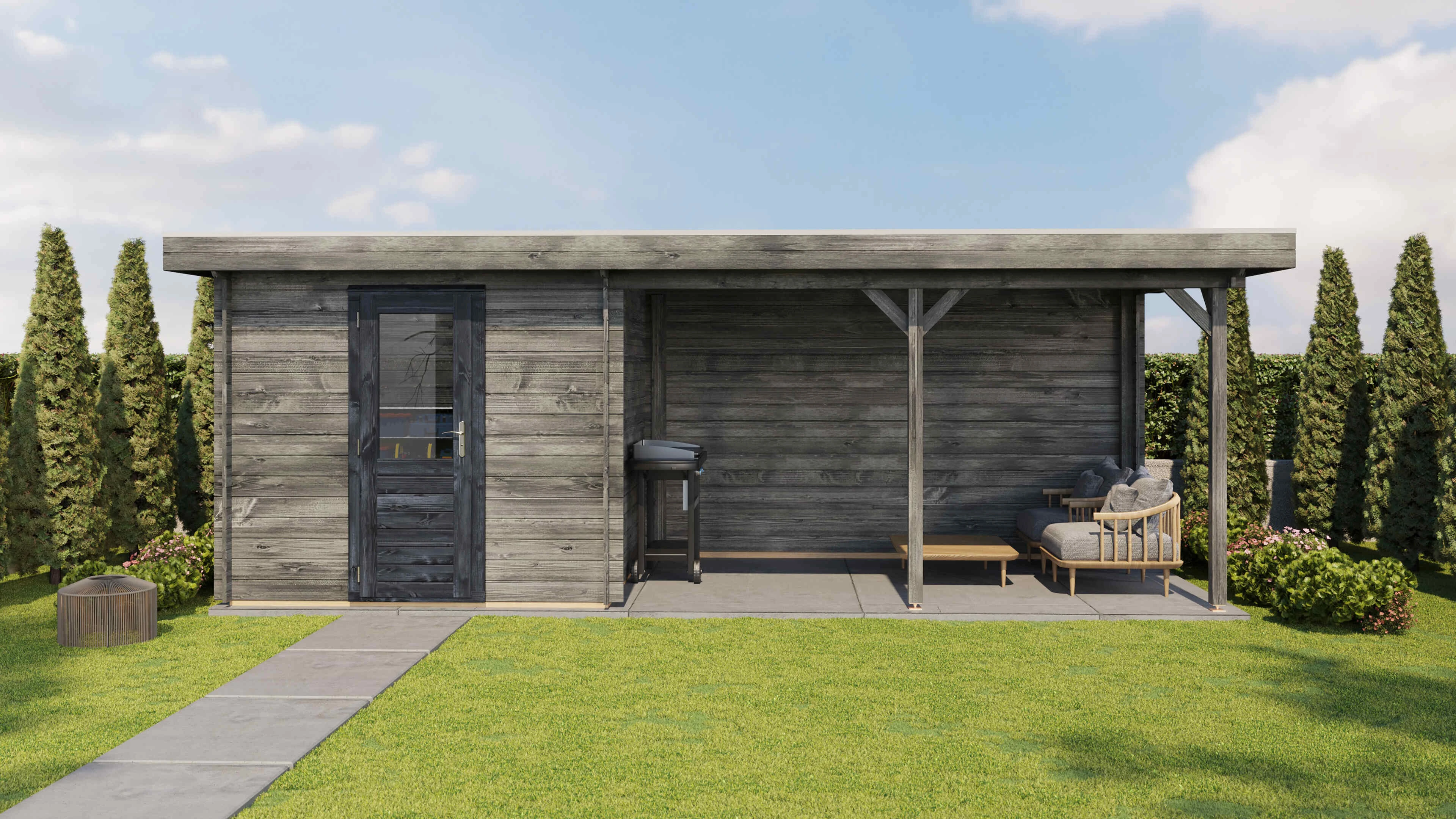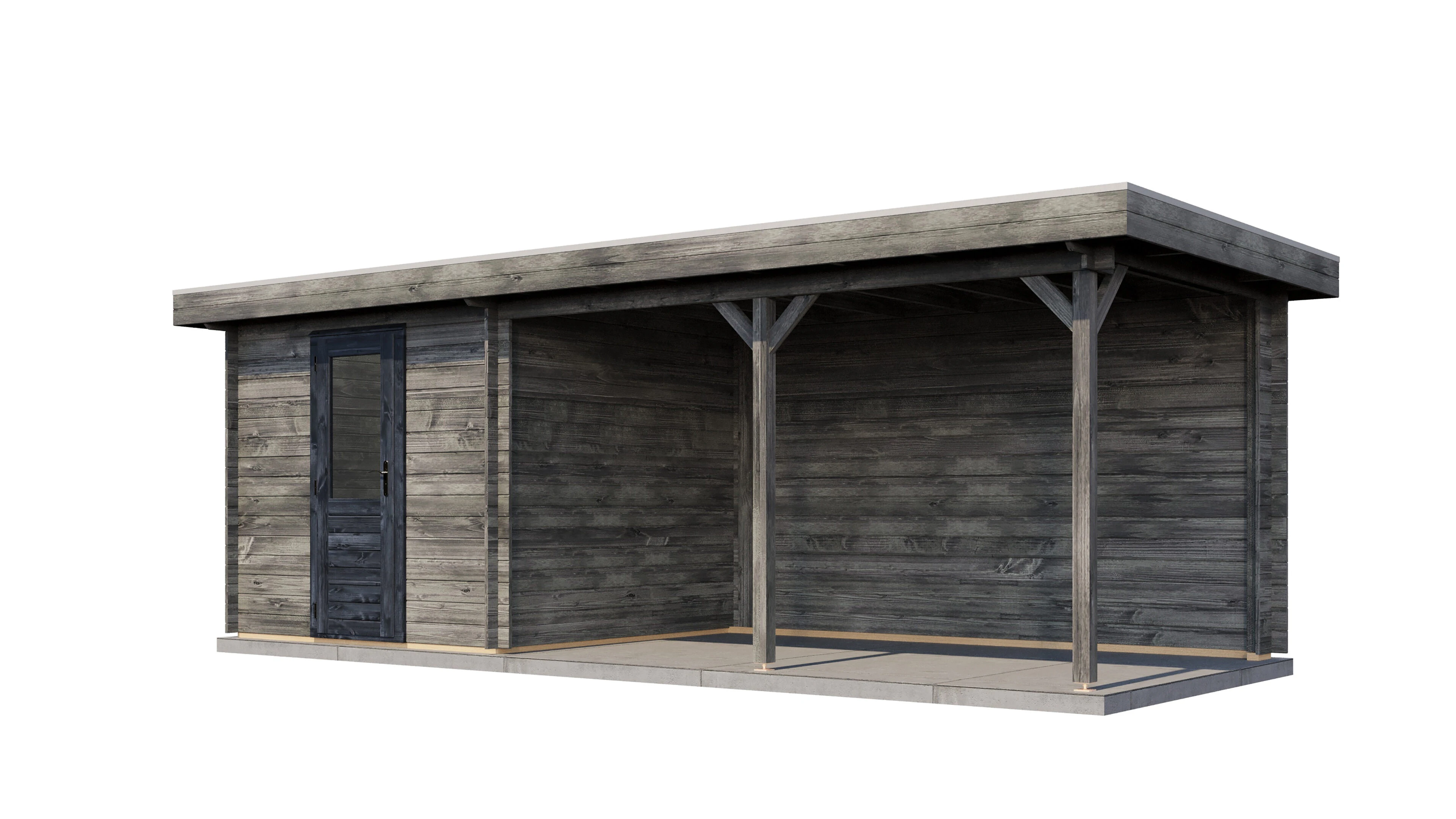 Lugarde Select Blockhaus Ansbach mit Vordach 250x250cm + 400cm - Kesseldruck Grau