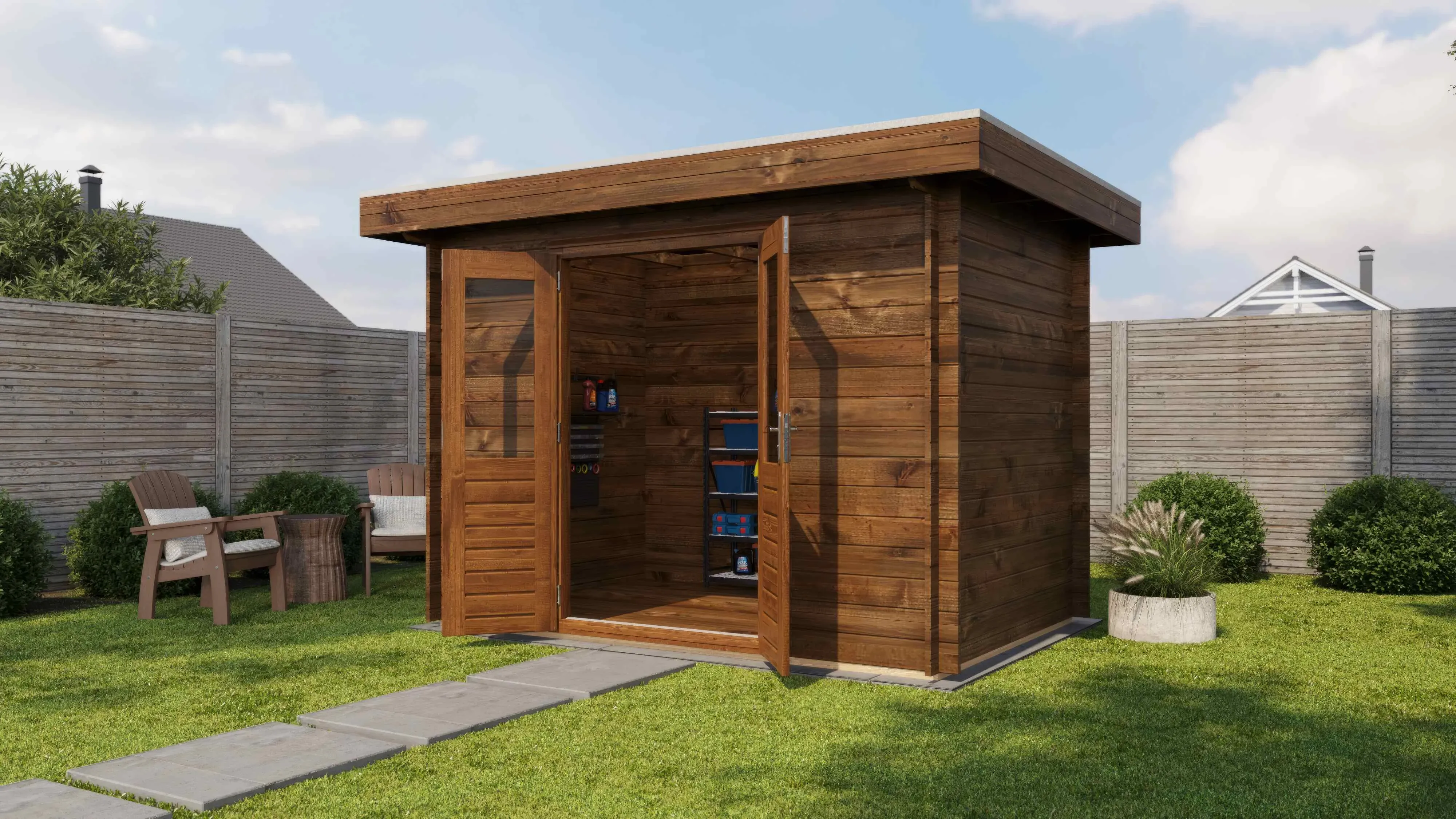 Das Lugarde Select Blockhaus verbindet traditionelle Holzbauweise mit moderner Funktionalität. Mit einer Grundfläche von 300 × 200 cm bietet es vielseitige Nutzungsmöglichkeiten für Ihren Garten.
