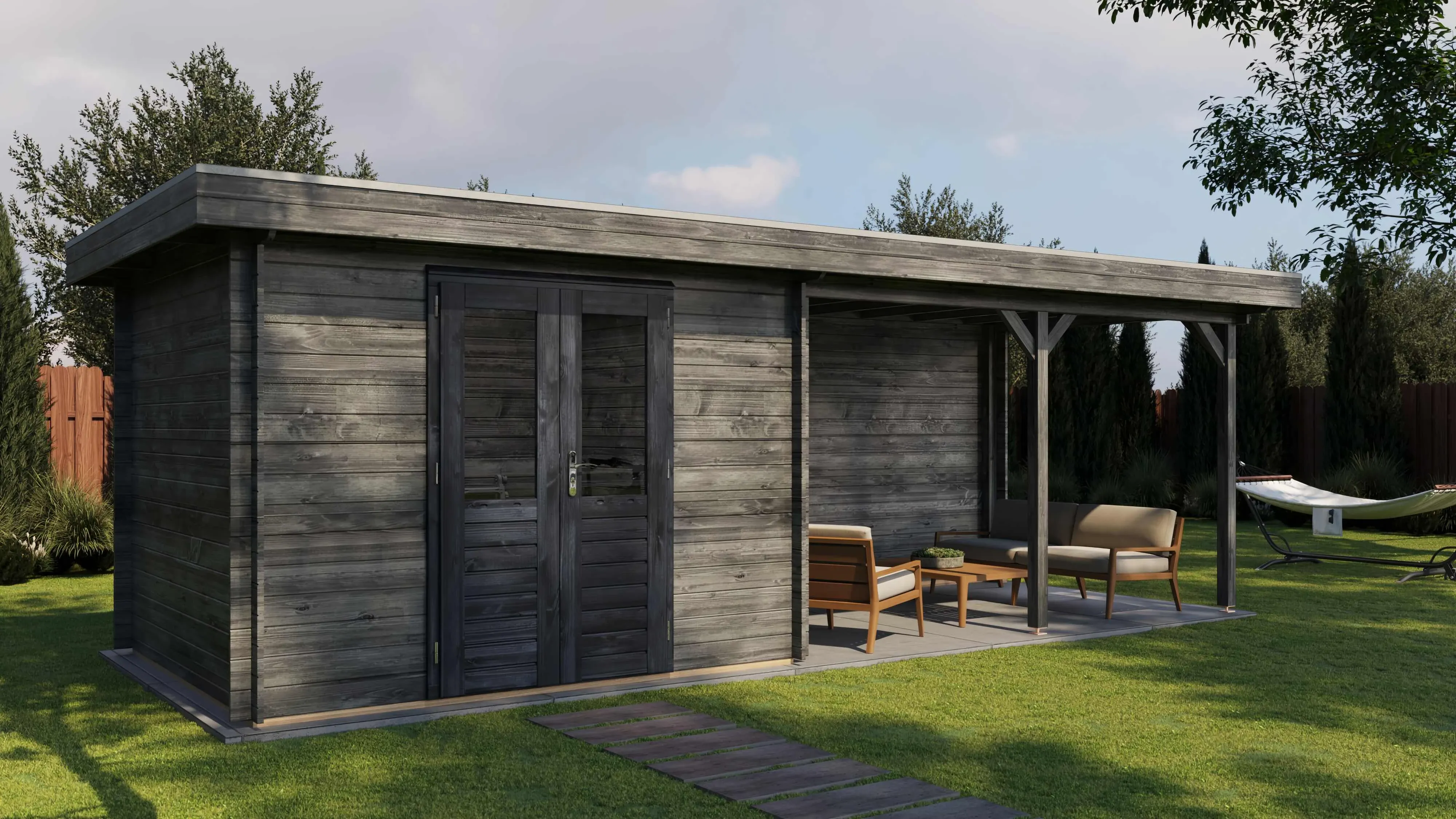 Hinweis: Das Gartenhaus wird unbehandelt geliefert. Die EPDM-Dachabdichtung ist separat erhältlich.