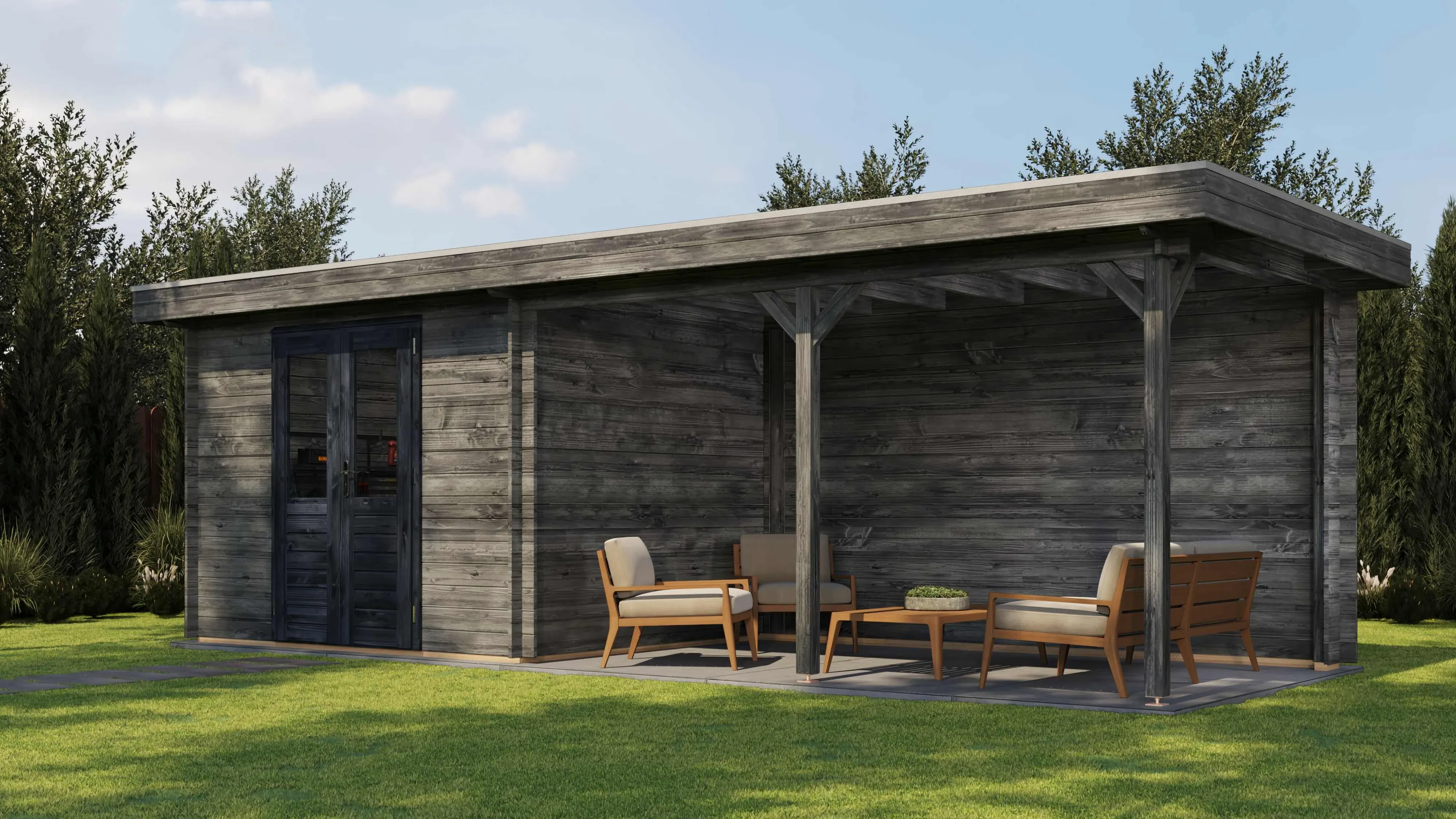 Lugarde Select Blockhaus Balingen mit Vordach 300x250cm + 400cm - Kesseldruck Grau