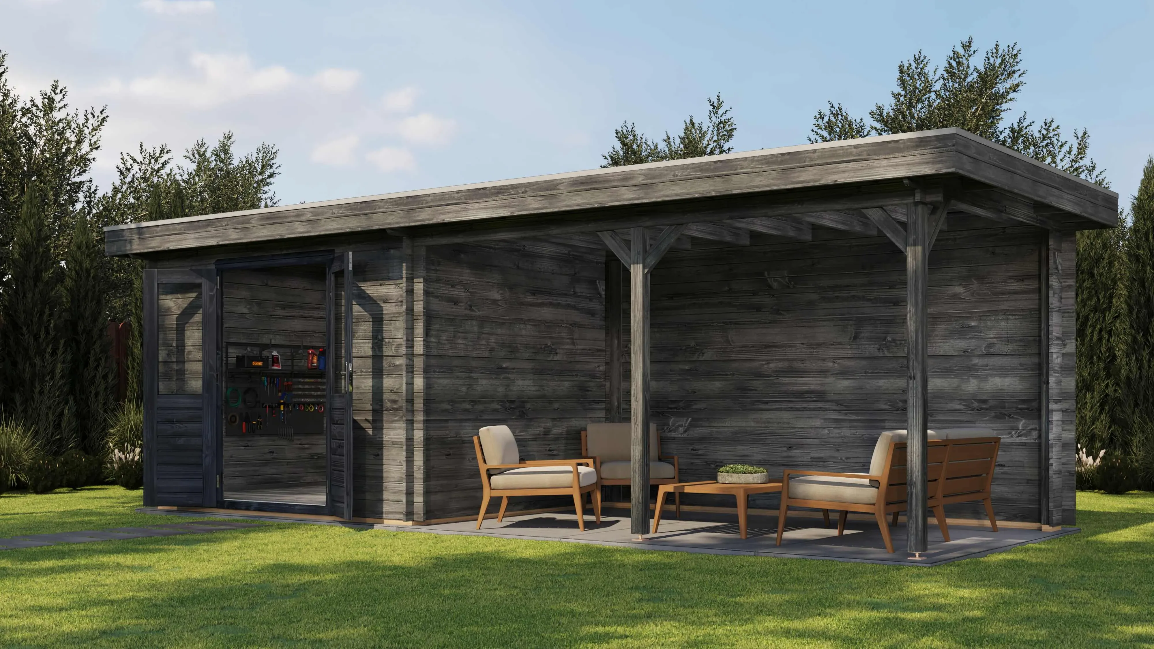 Das Lugarde Select Blockhaus verbindet traditionelle Holzbauweise mit moderner Funktionalität. Mit einer Grundfläche von 300 × 250 cm bietet es vielseitige Nutzungsmöglichkeiten für Ihren Garten.