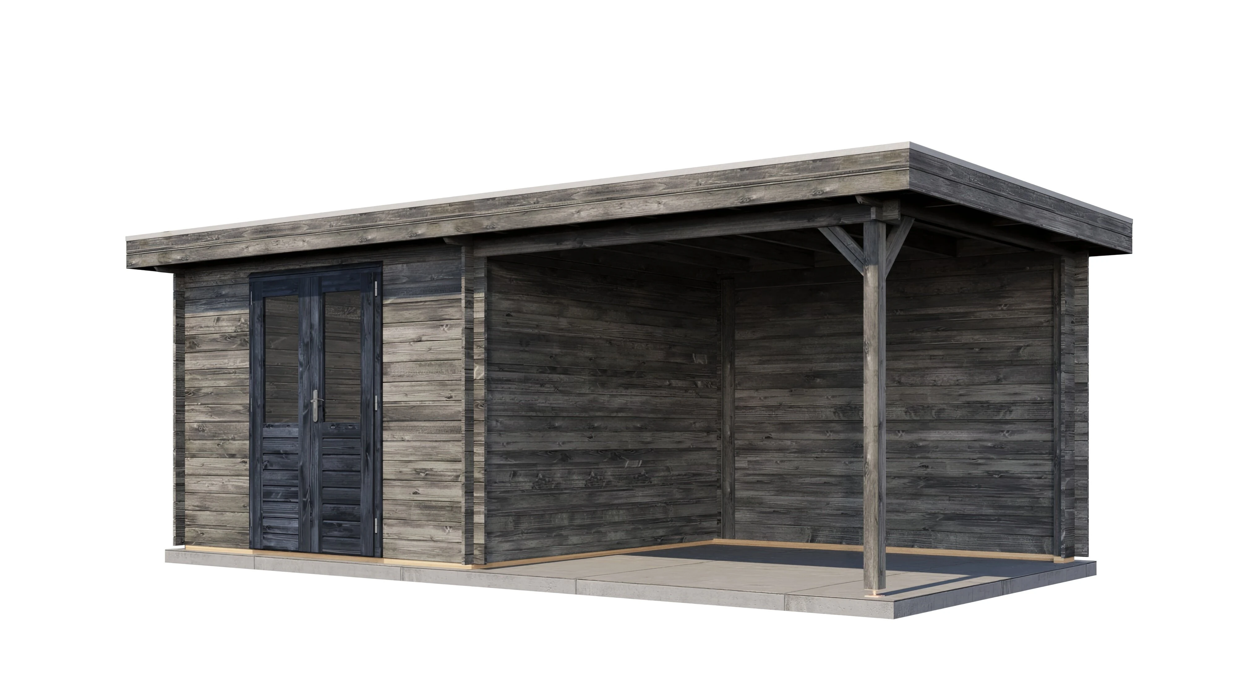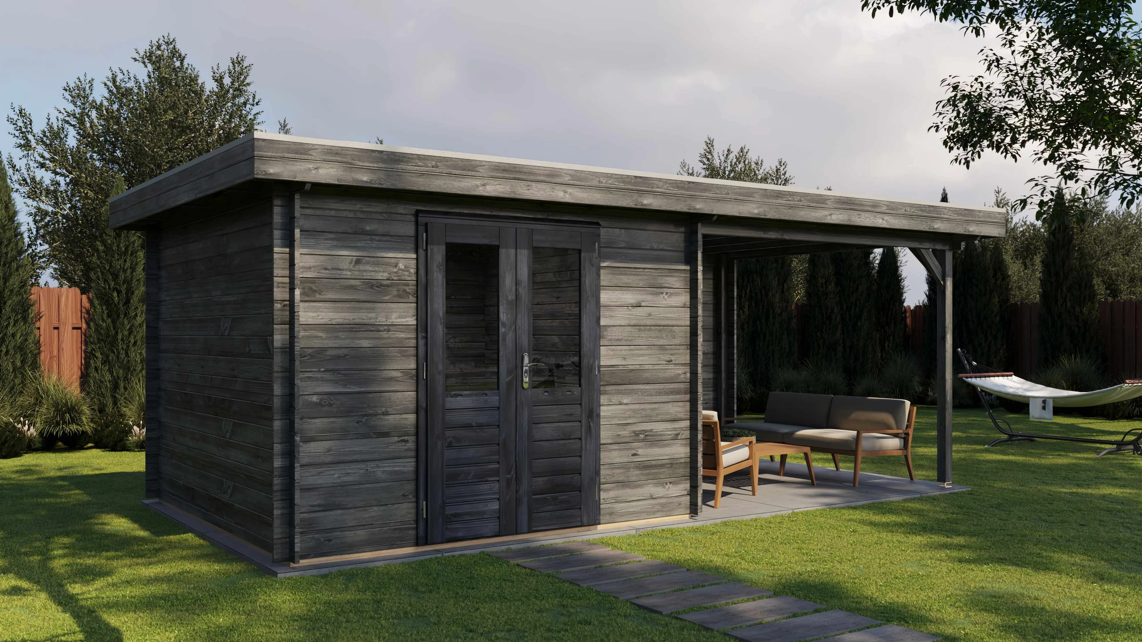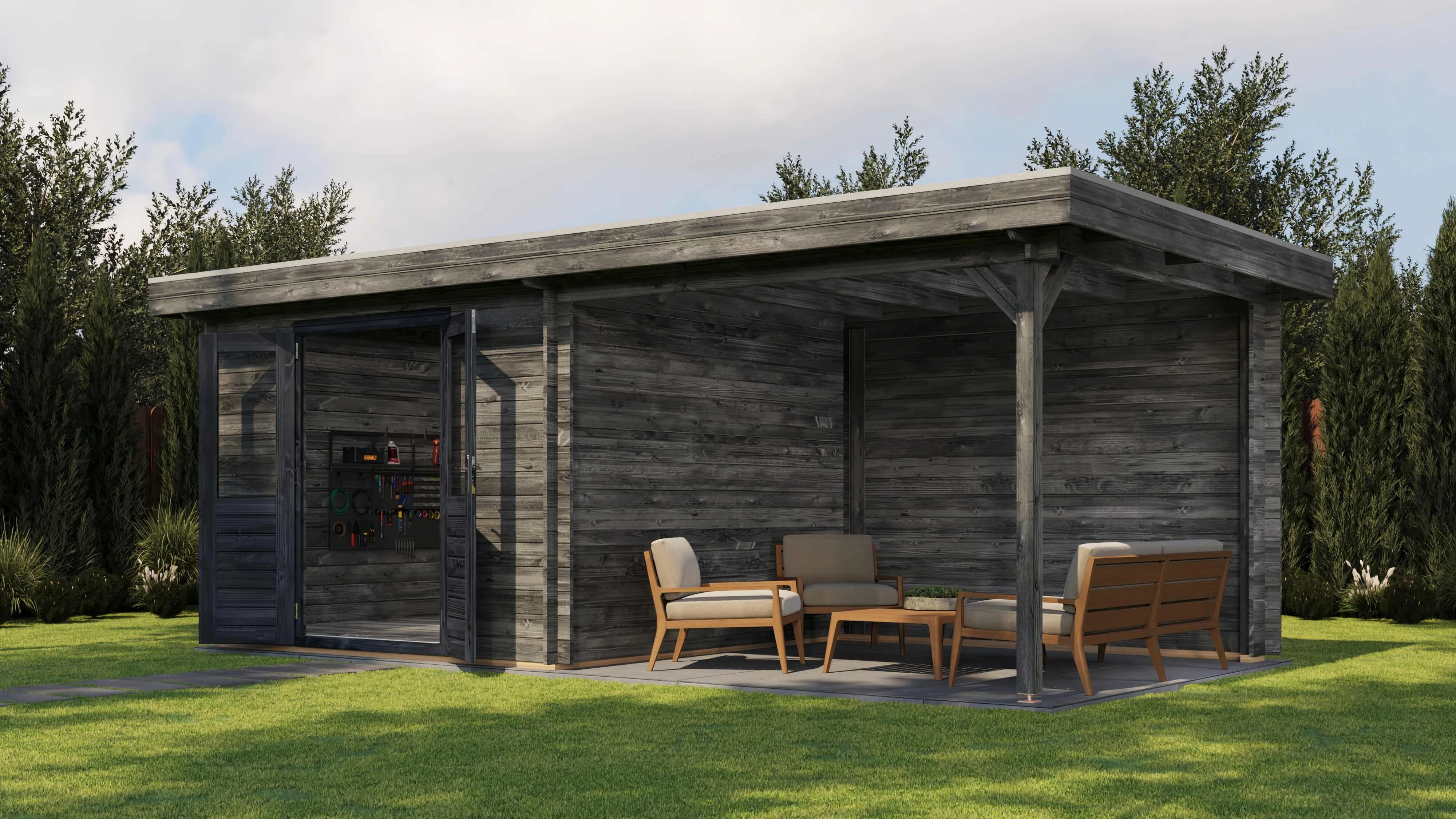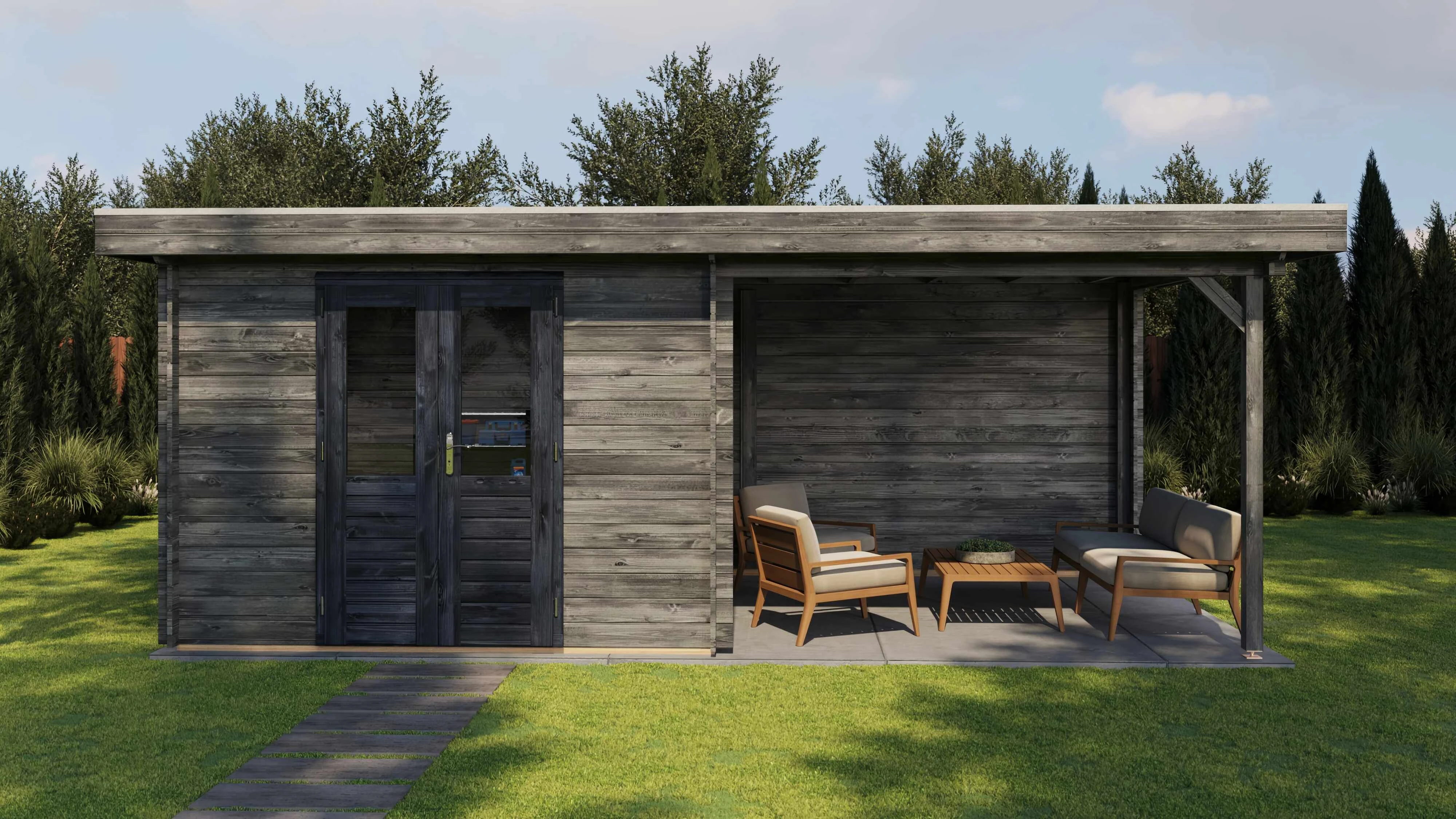 Produktinformationen "Lugarde Select Blockhaus Bayreuth mit Vordach 300x300cm + 300cm - Kesseldruck Grau"