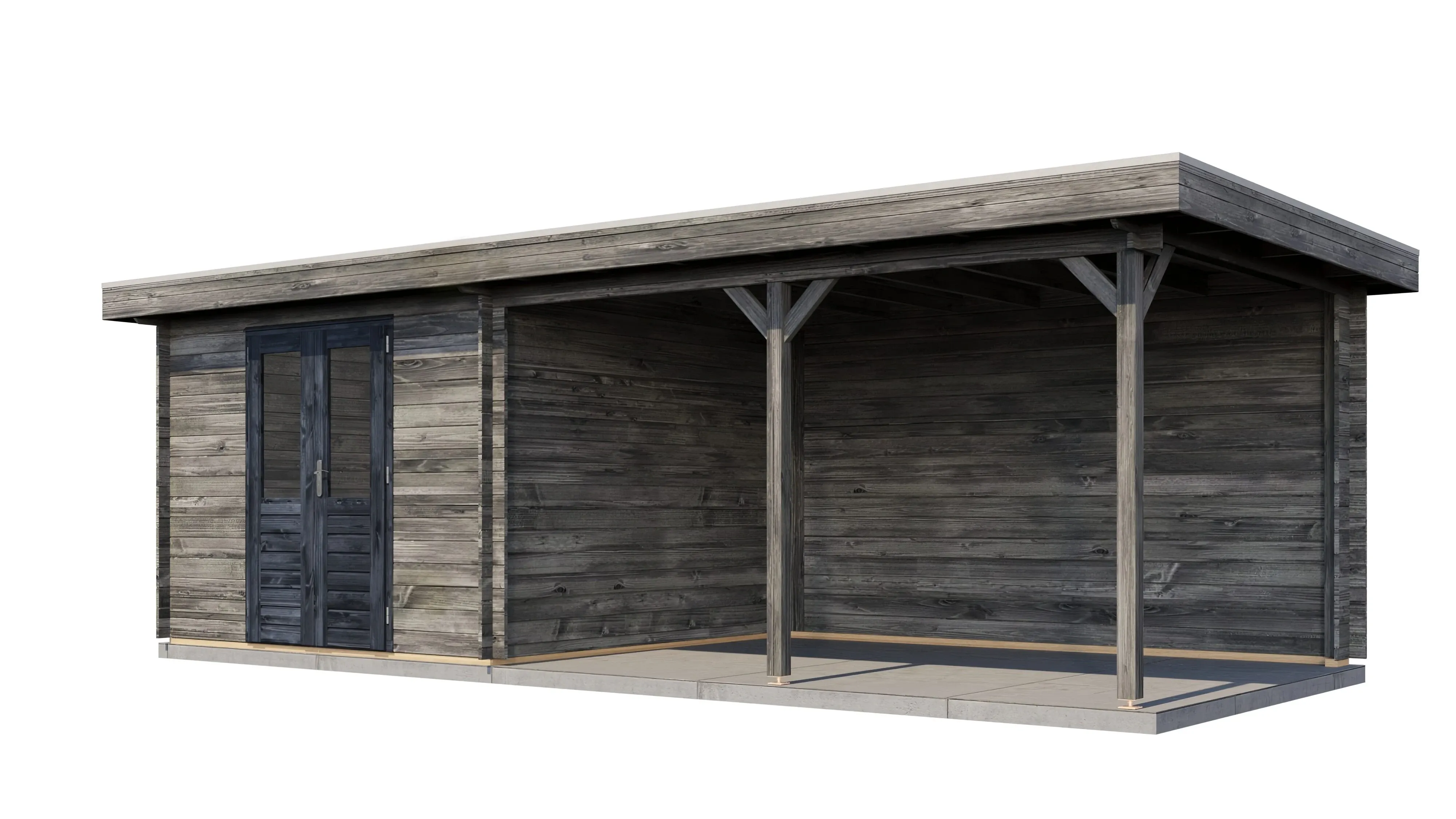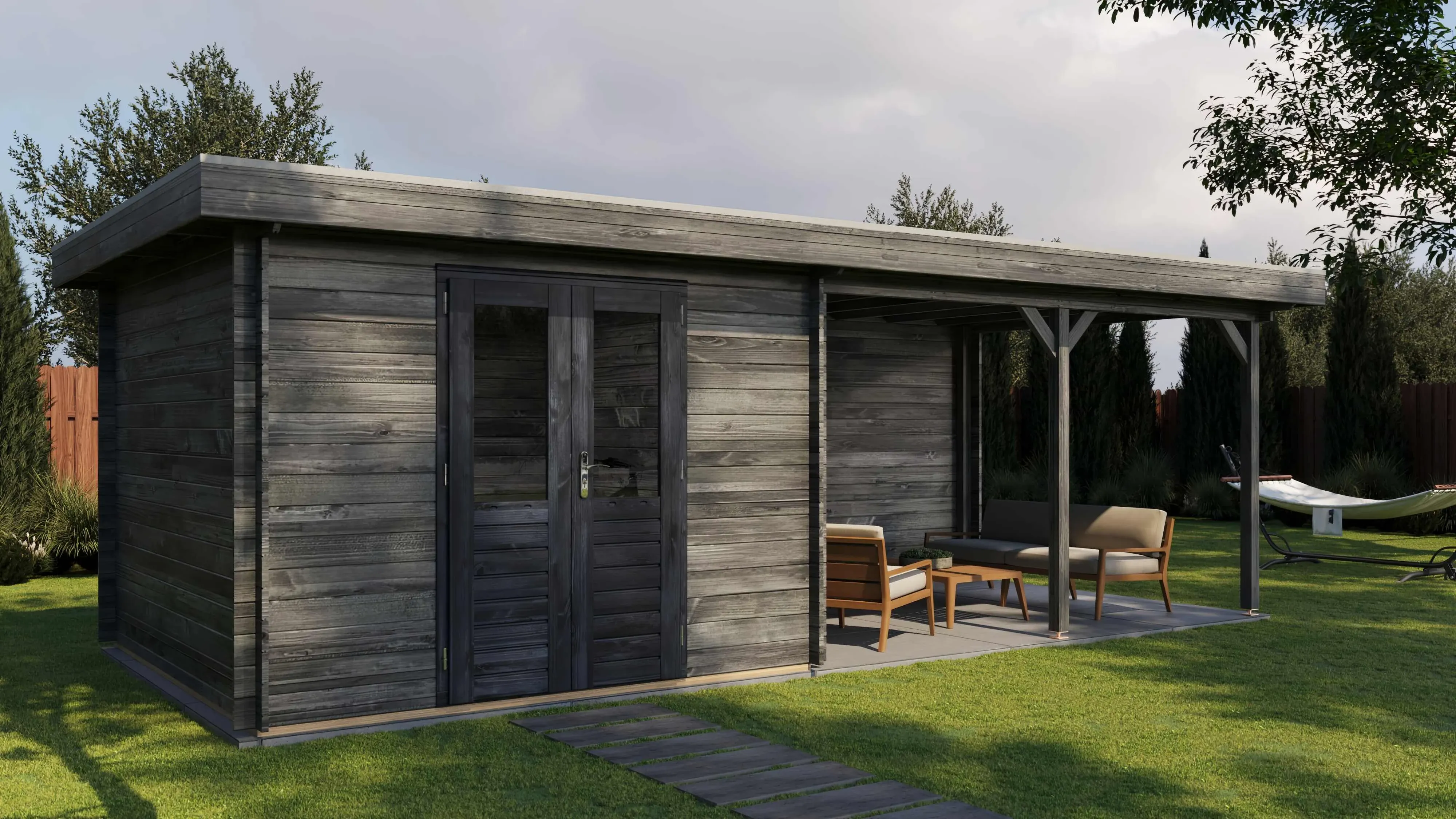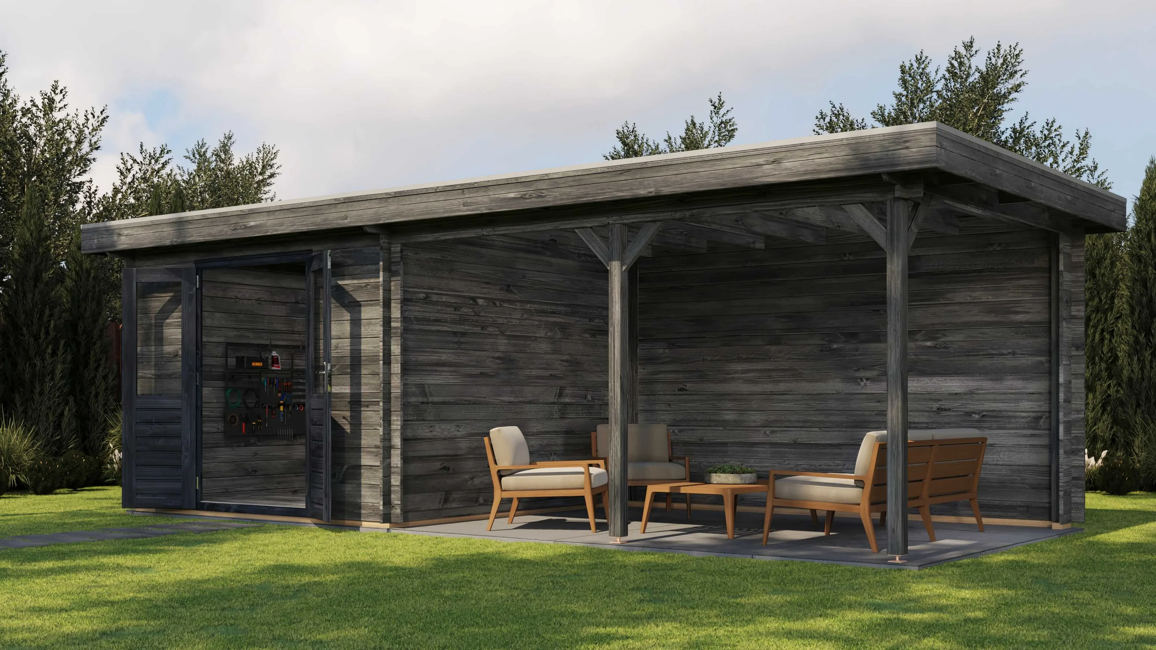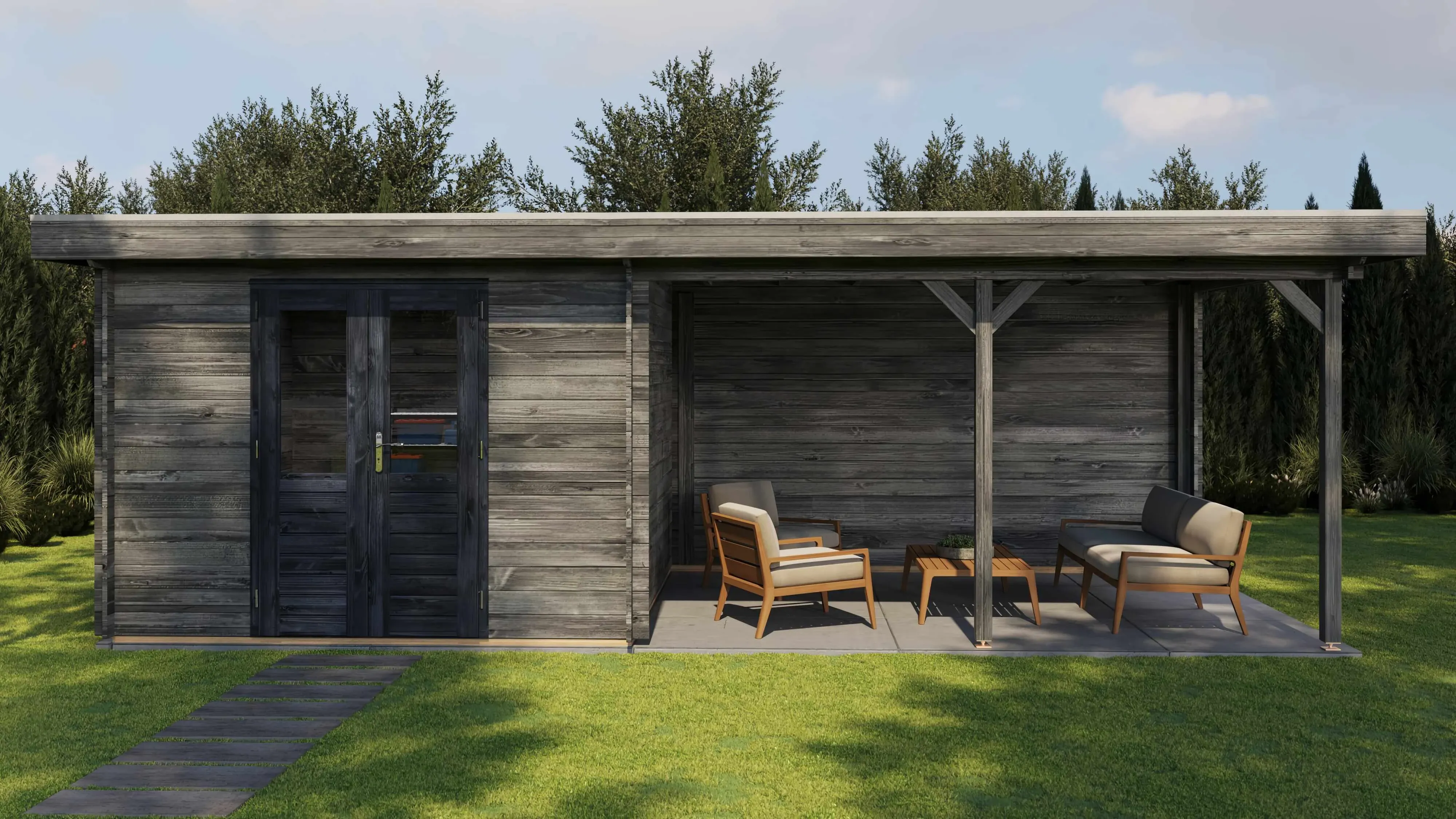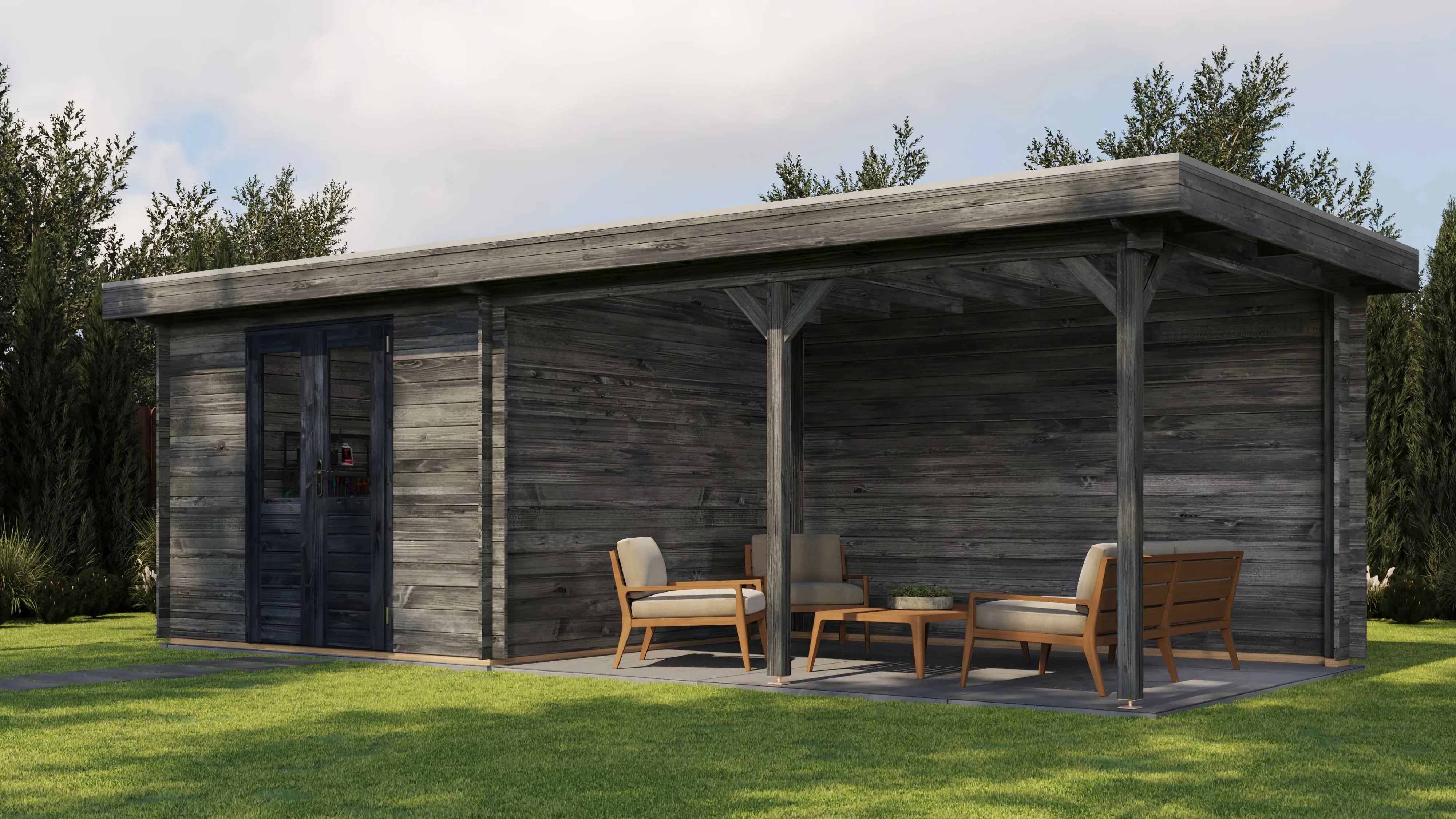 Produktinformationen "Lugarde Select Blockhaus Bensheim mit Vordach 300x300cm + 400cm - Kesseldruck Grau"