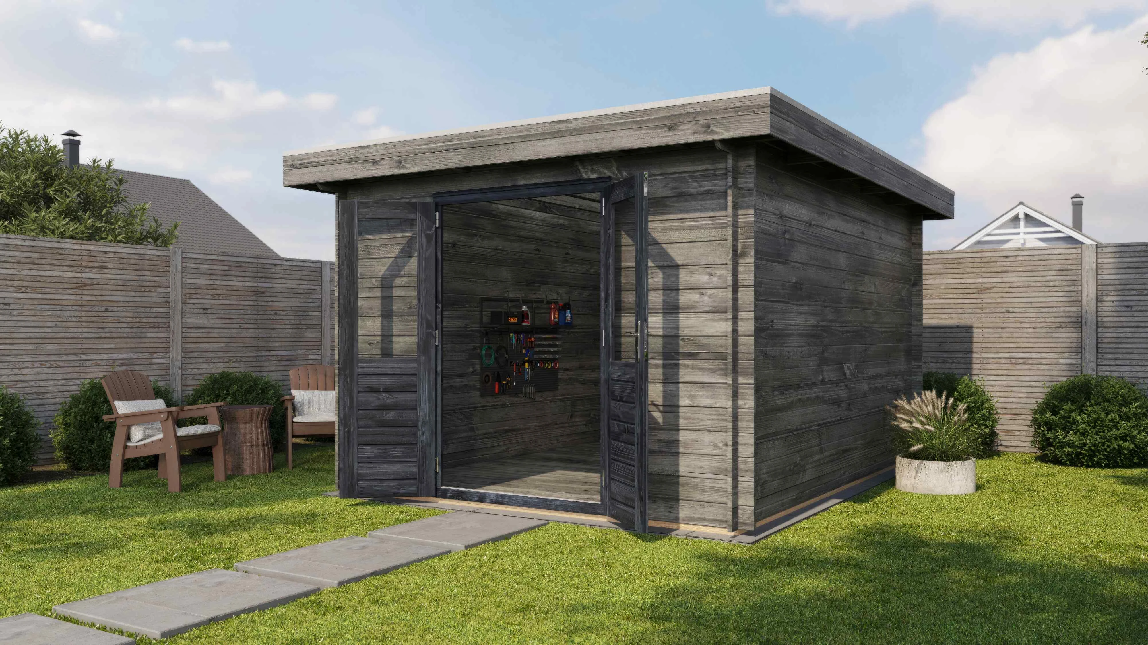Hinweis: Das Gartenhaus wird unbehandelt geliefert. Die EPDM-Dachabdichtung ist separat erhältlich.