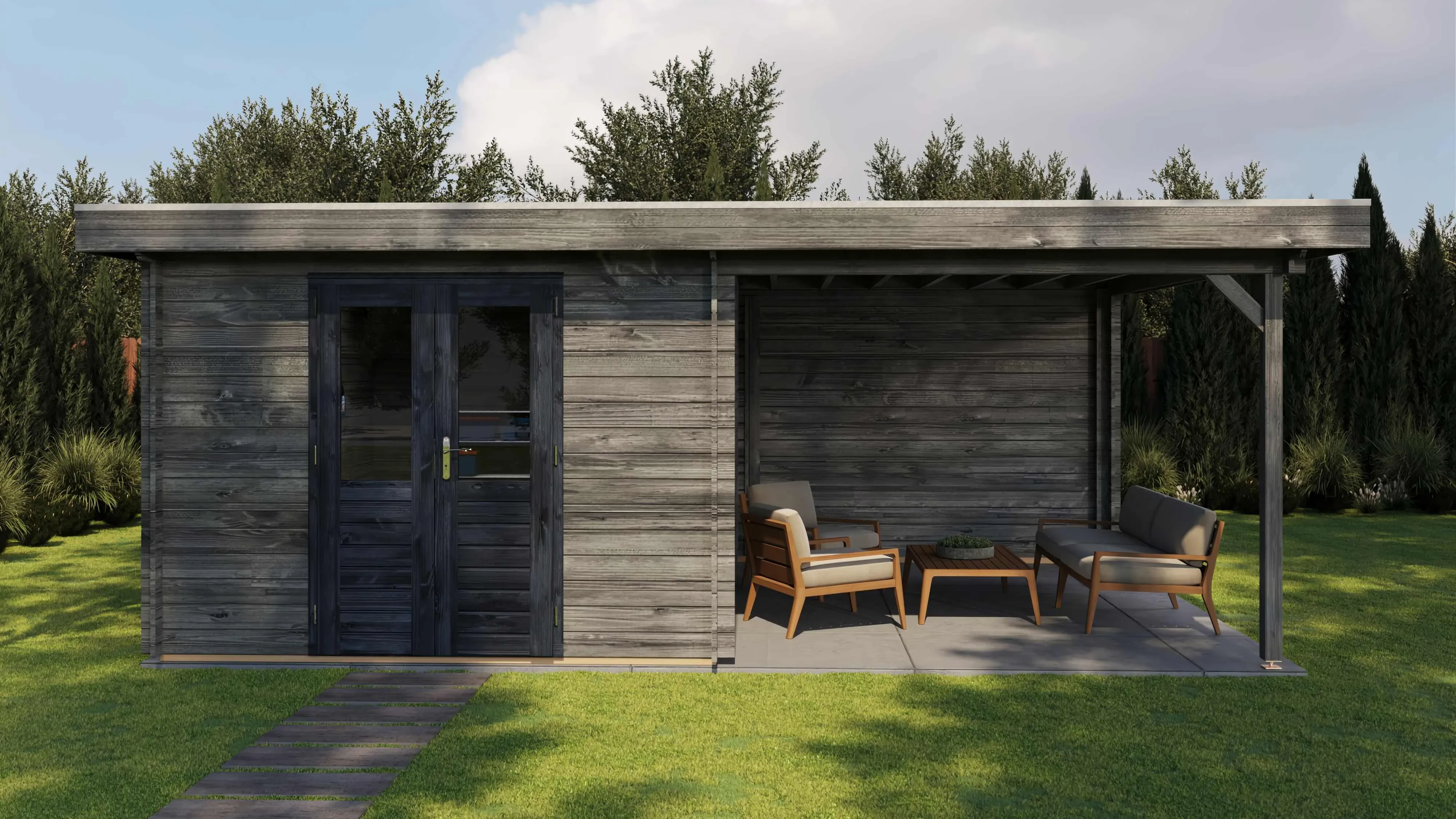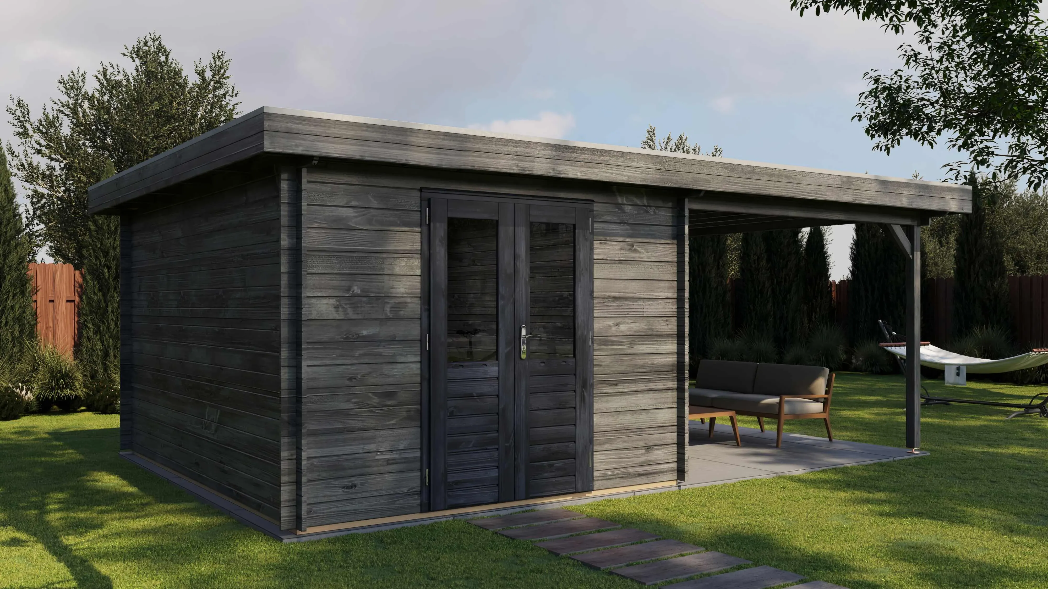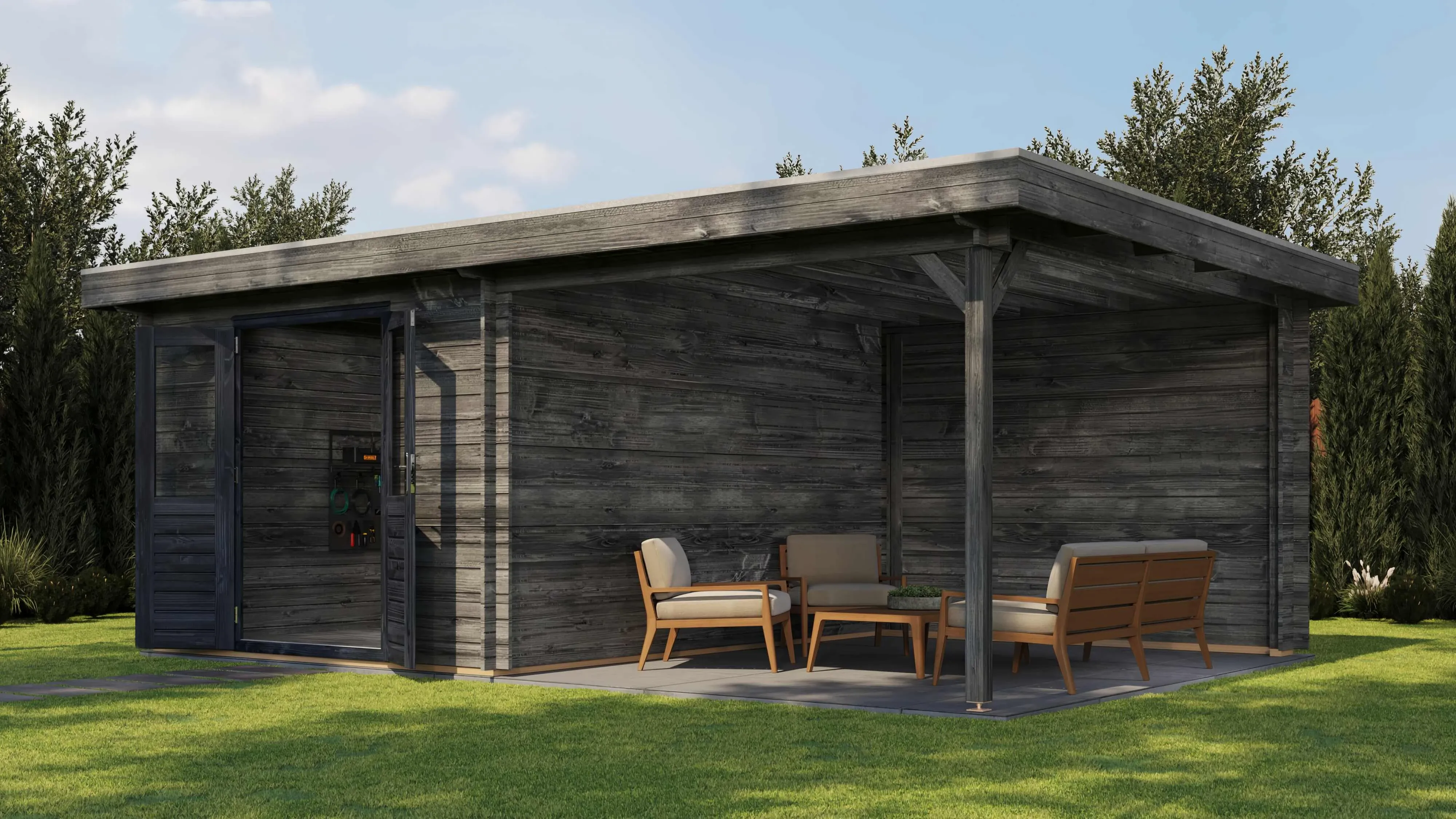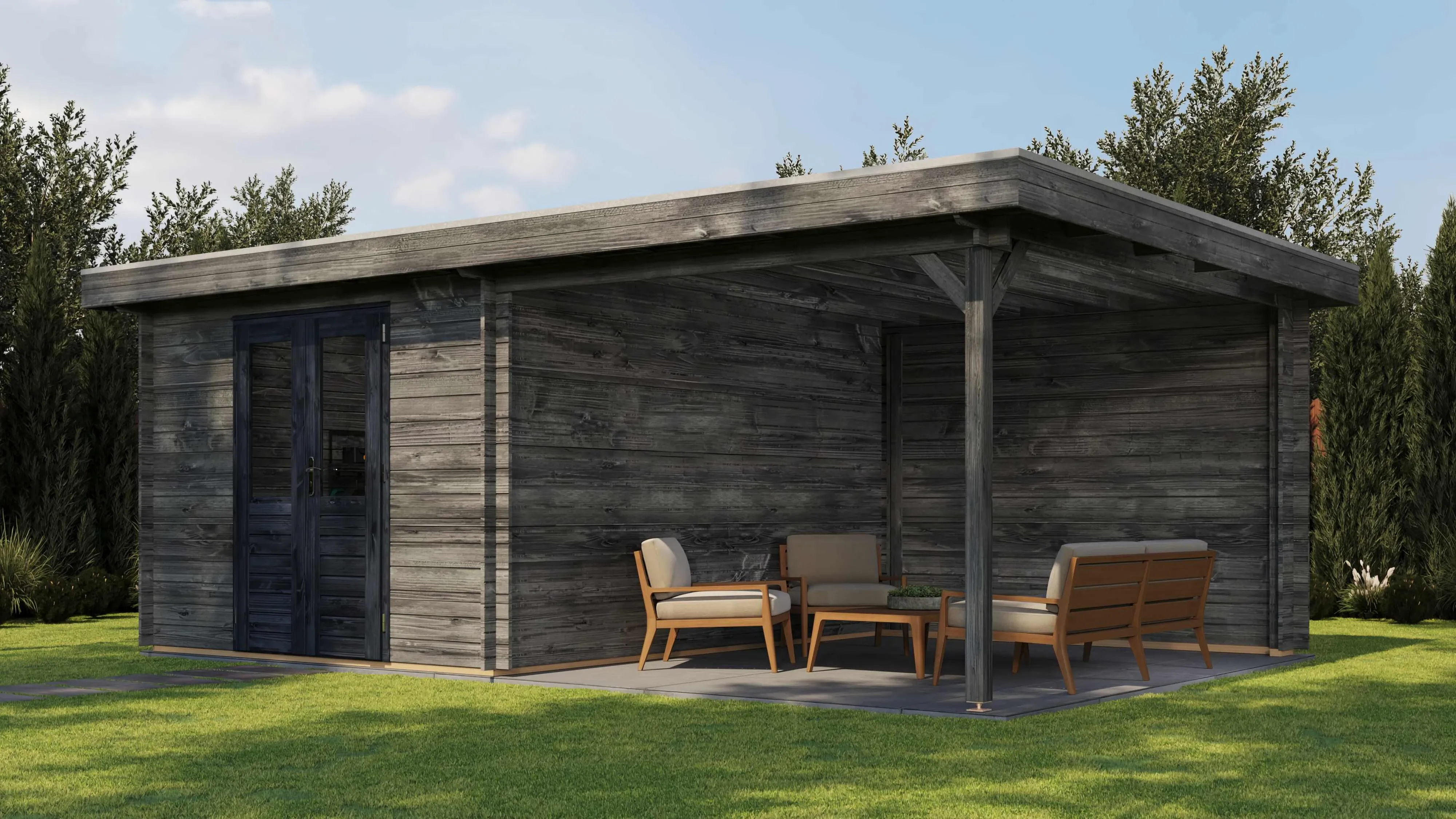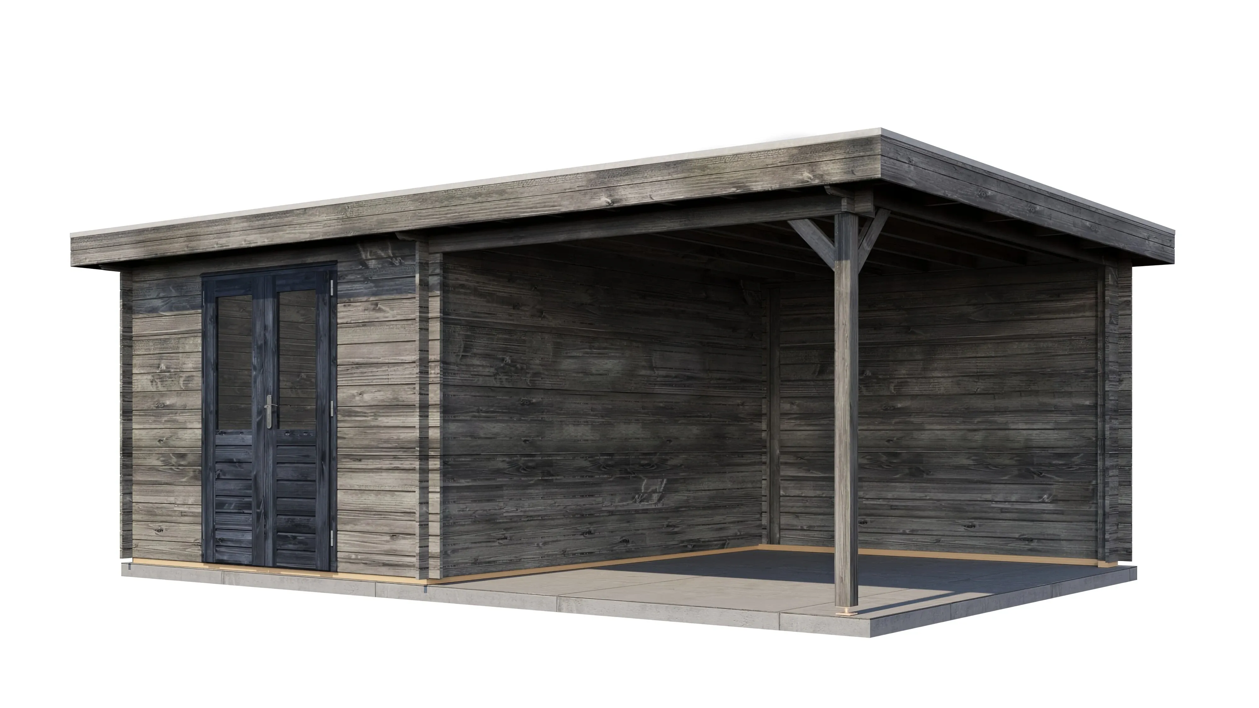 Produktinformationen "Lugarde Select Blockhaus Bielefeld mit Vordach 300x400cm + 300cm - Kesseldruck Grau"