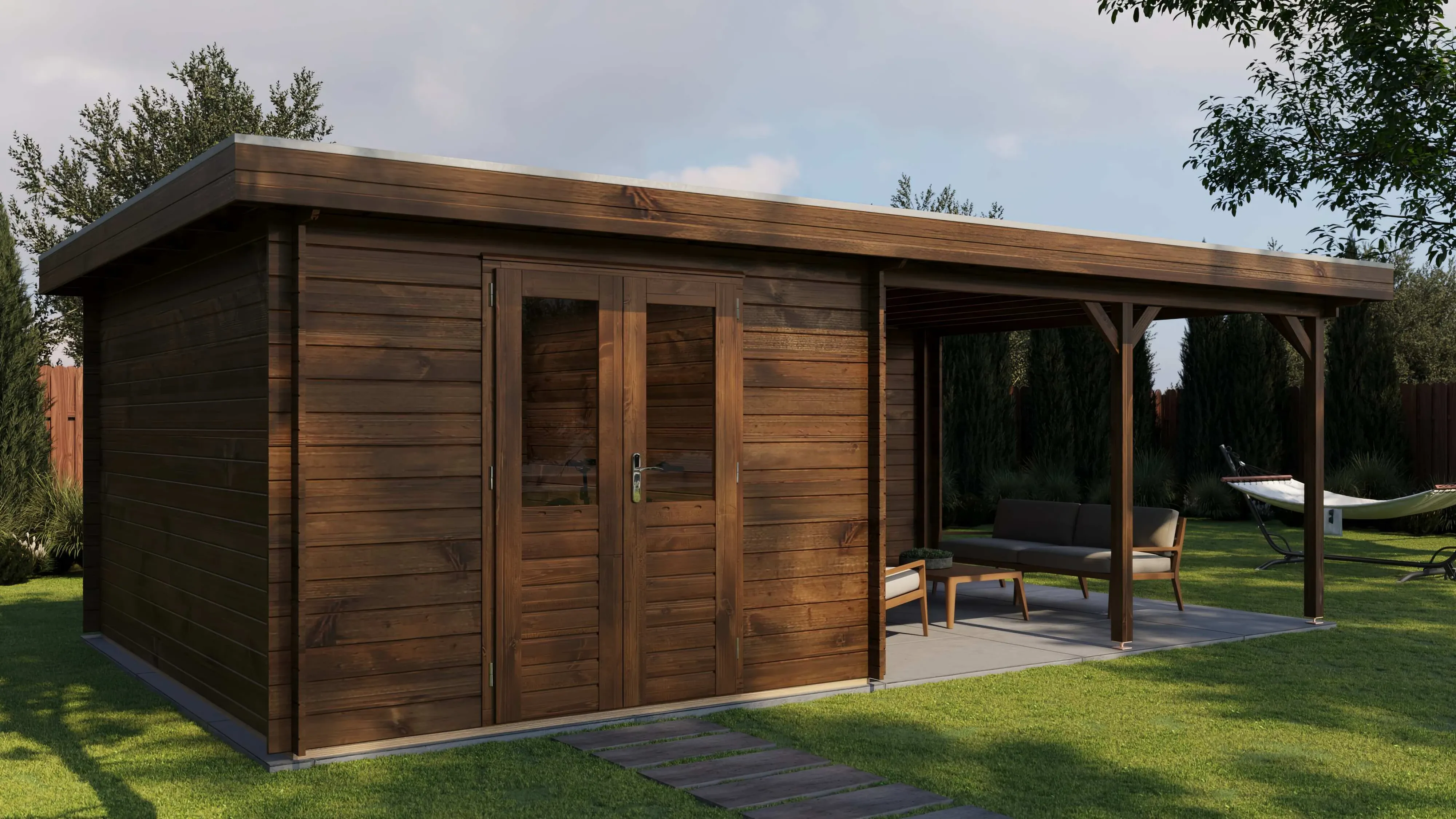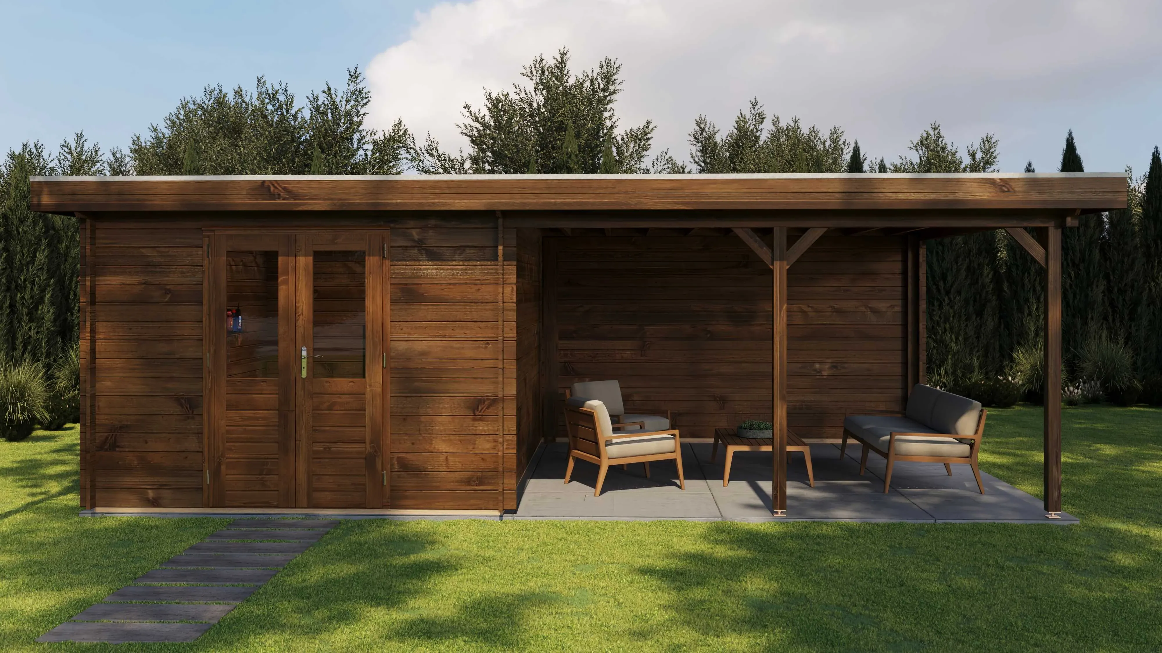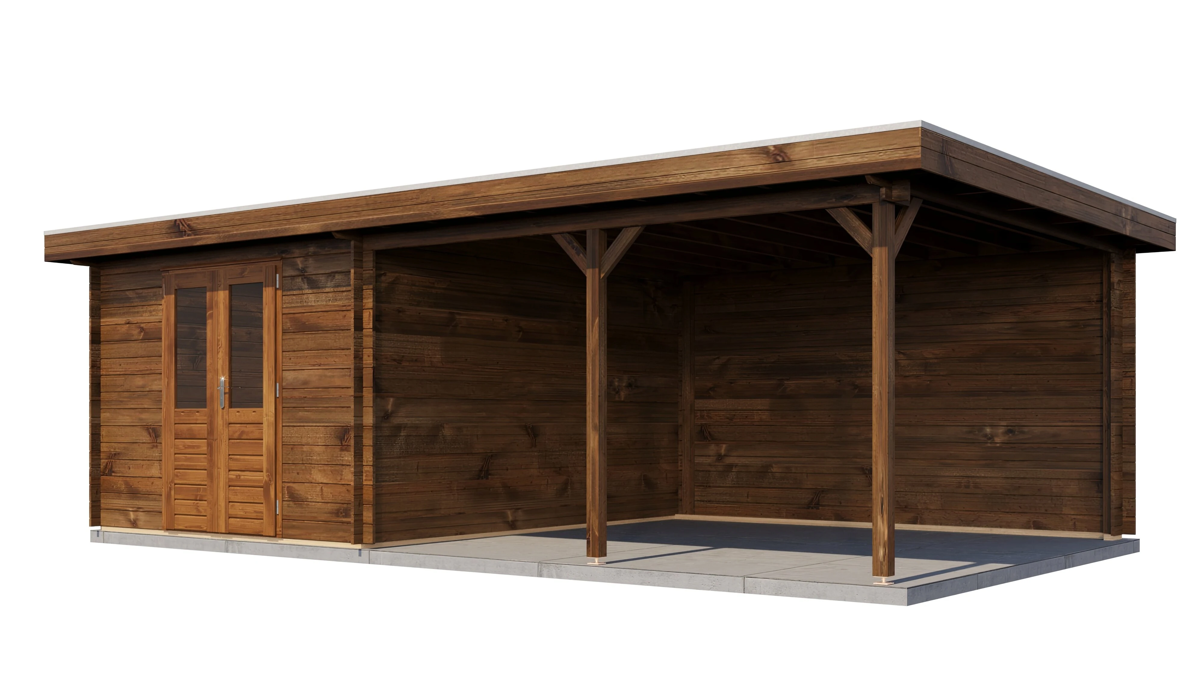 Produktinformationen "Lugarde Select Blockhaus Bitterfeld mit Vordach 300x400cm + 400cm - Kesseldruck Braun"
