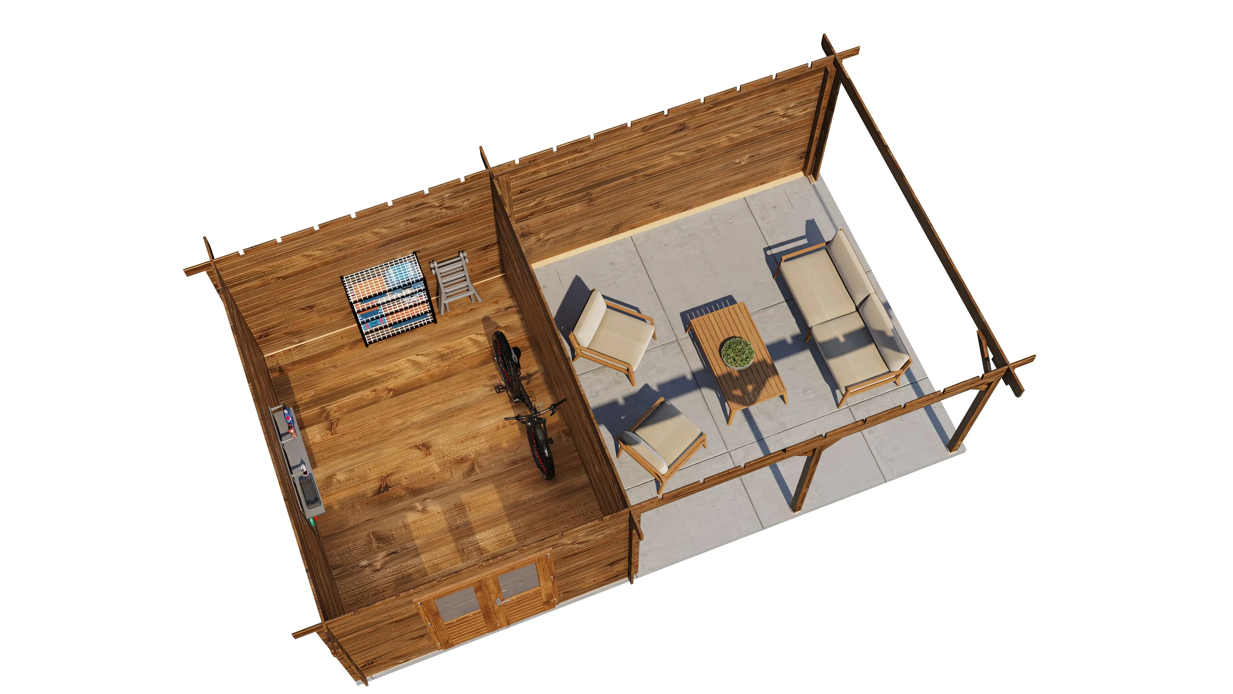 Das Lugarde Select Blockhaus verbindet traditionelle Holzbauweise mit moderner Funktionalität. Mit einer Grundfläche von 300 × 400 cm bietet es vielseitige Nutzungsmöglichkeiten für Ihren Garten.
