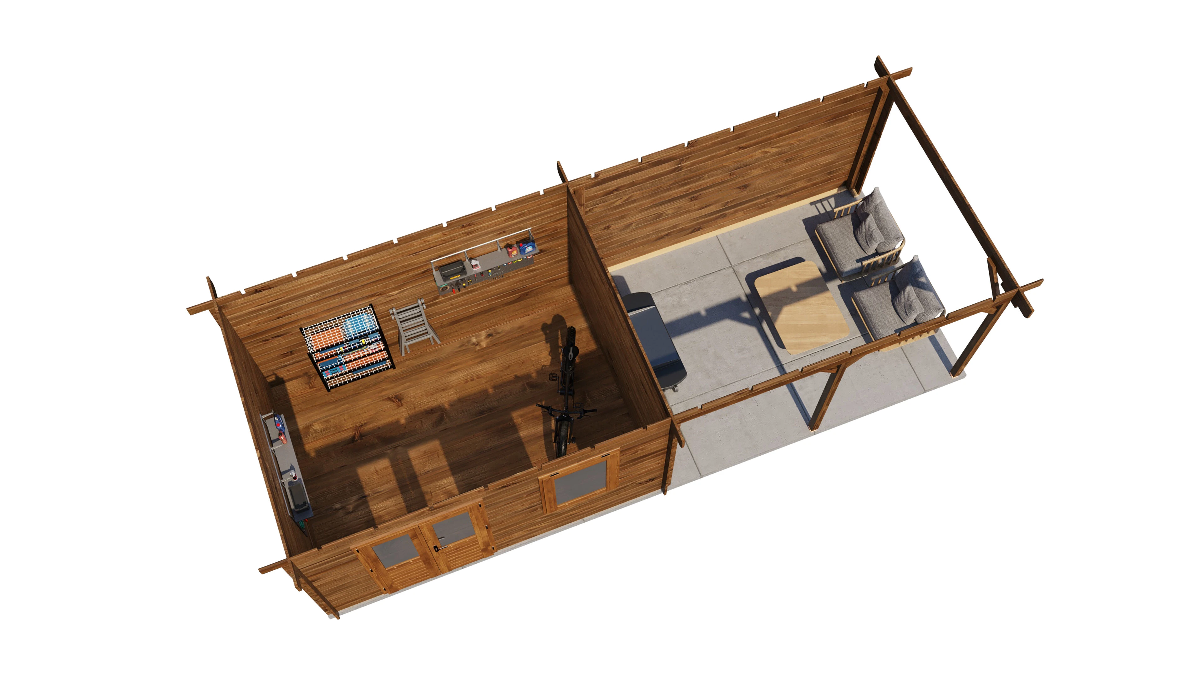 Hinweis: Das Gartenhaus wird unbehandelt geliefert. Die EPDM-Dachabdichtung ist separat erhältlich.