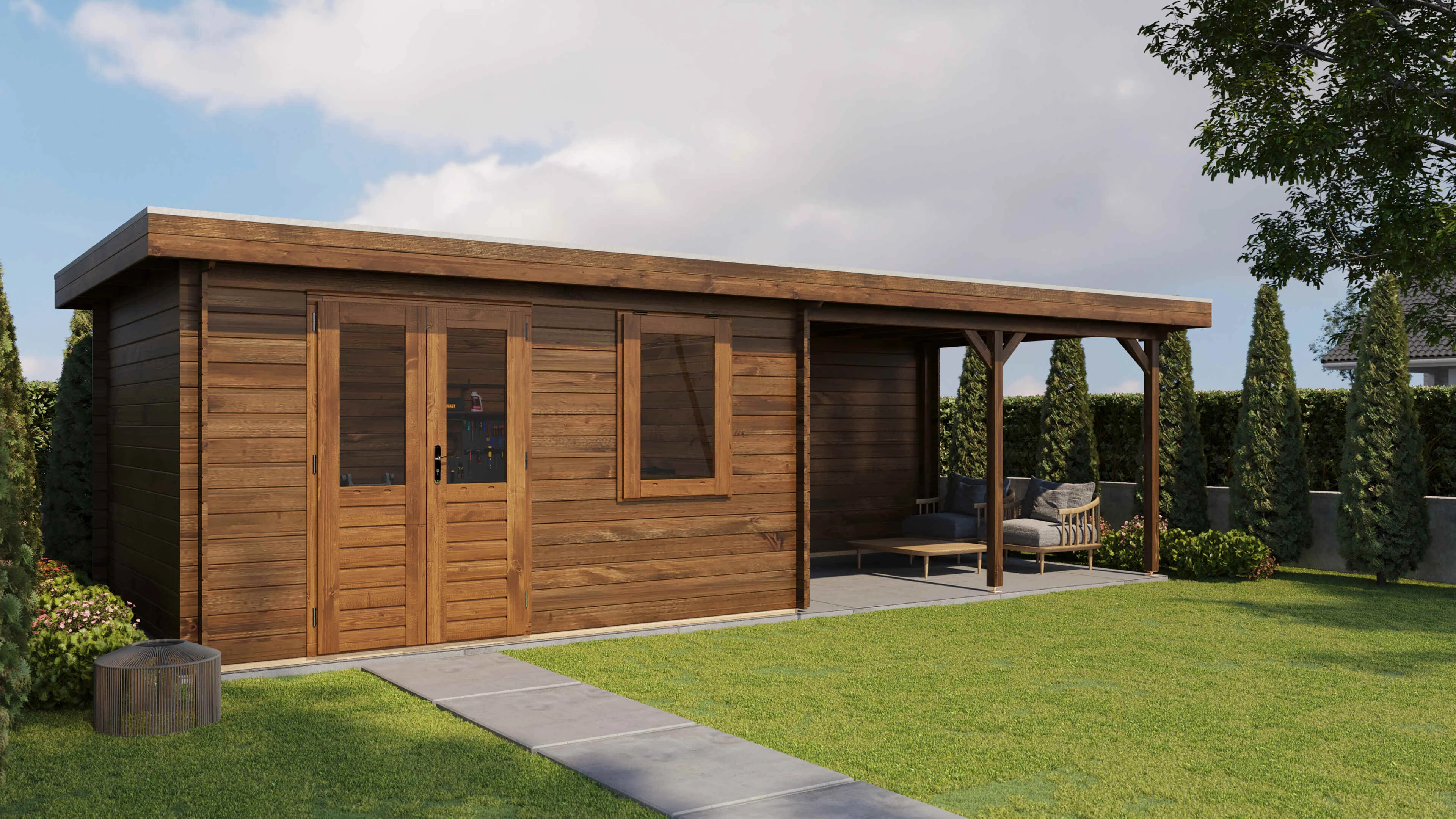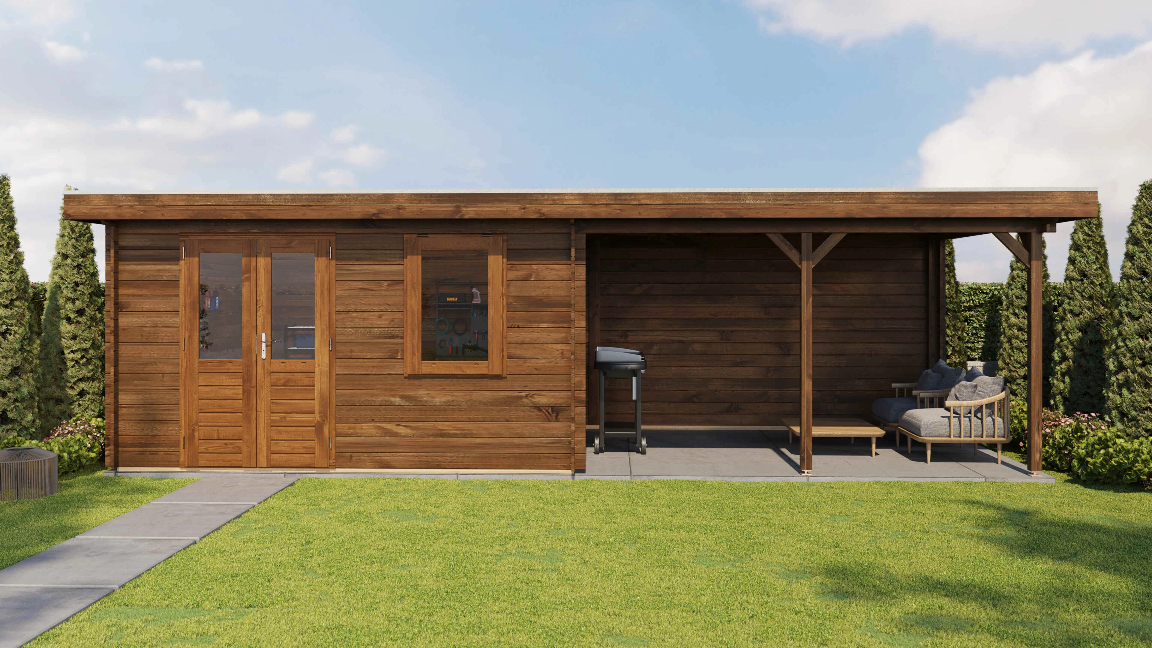 Das Lugarde Select Blockhaus verbindet traditionelle Holzbauweise mit moderner Funktionalität. Mit einer Grundfläche von 400 × 300 cm bietet es vielseitige Nutzungsmöglichkeiten für Ihren Garten.