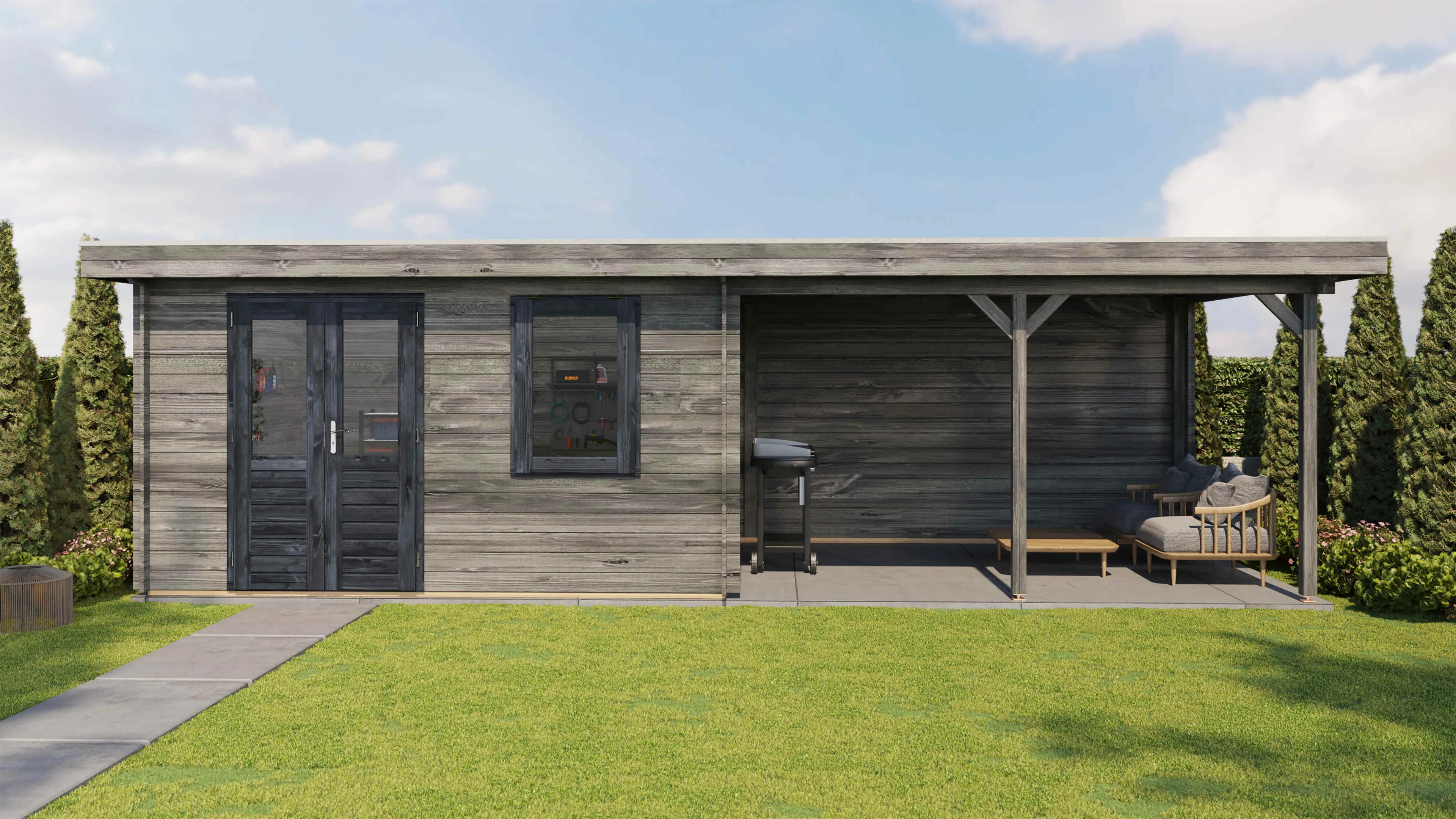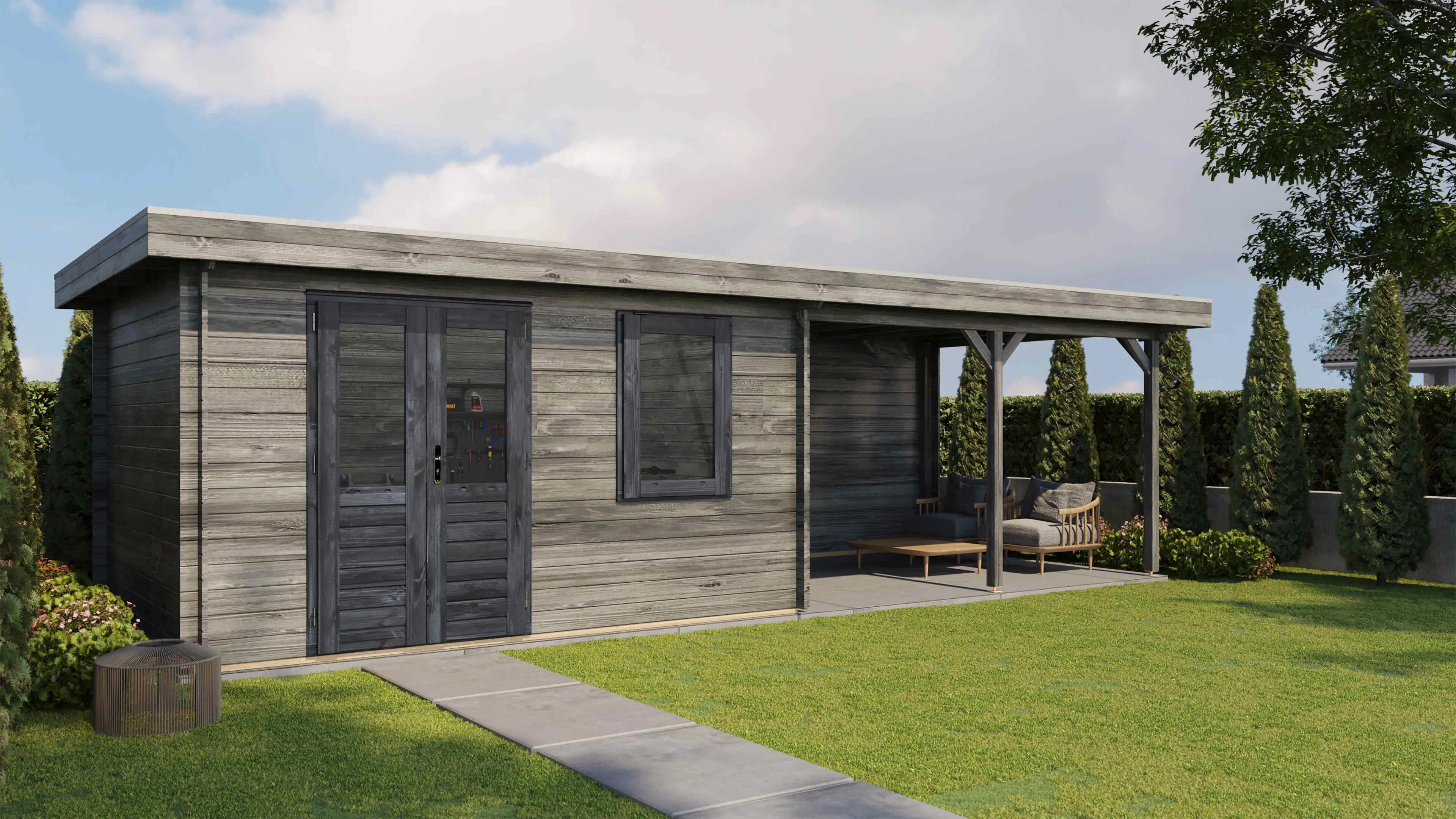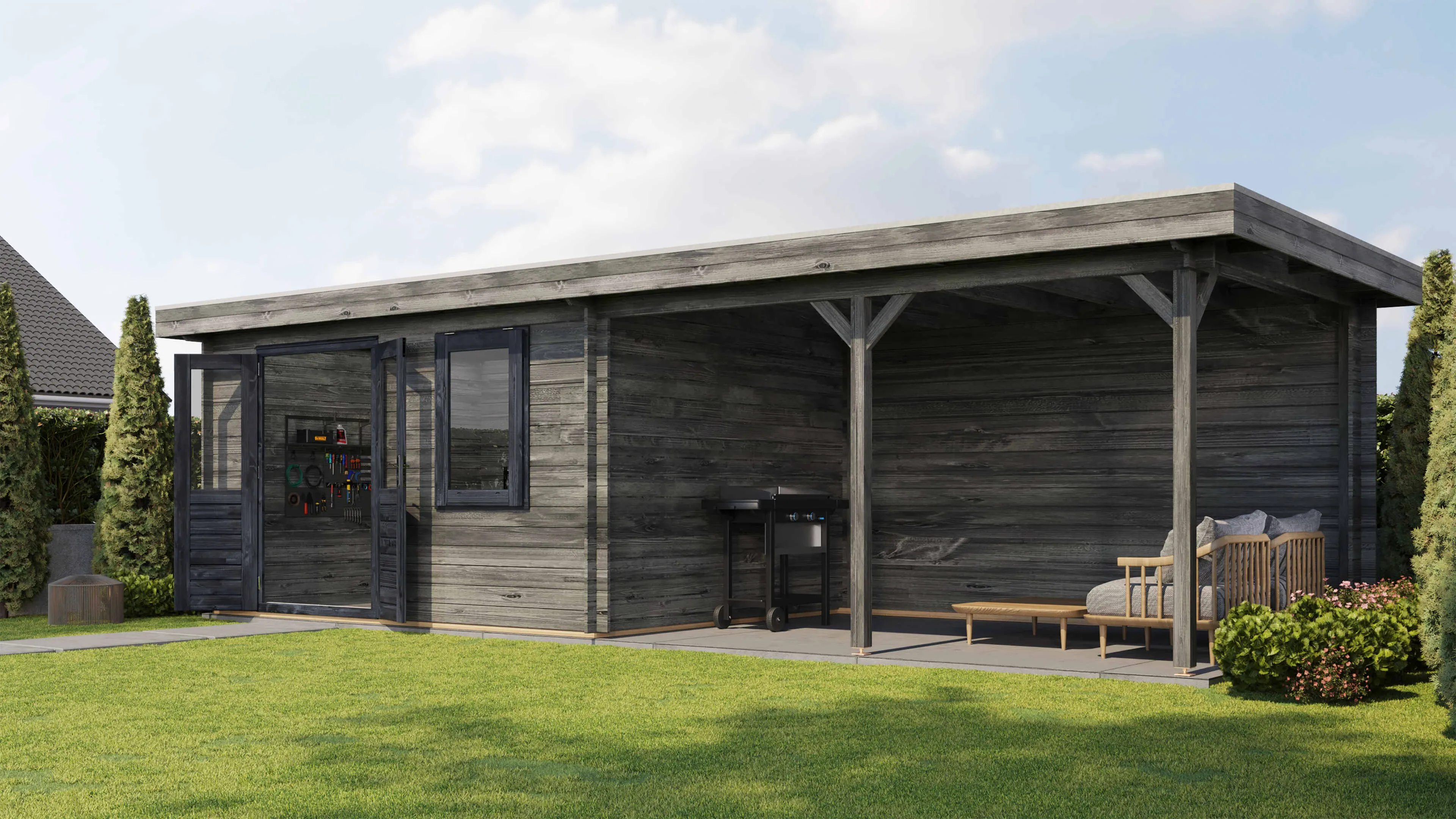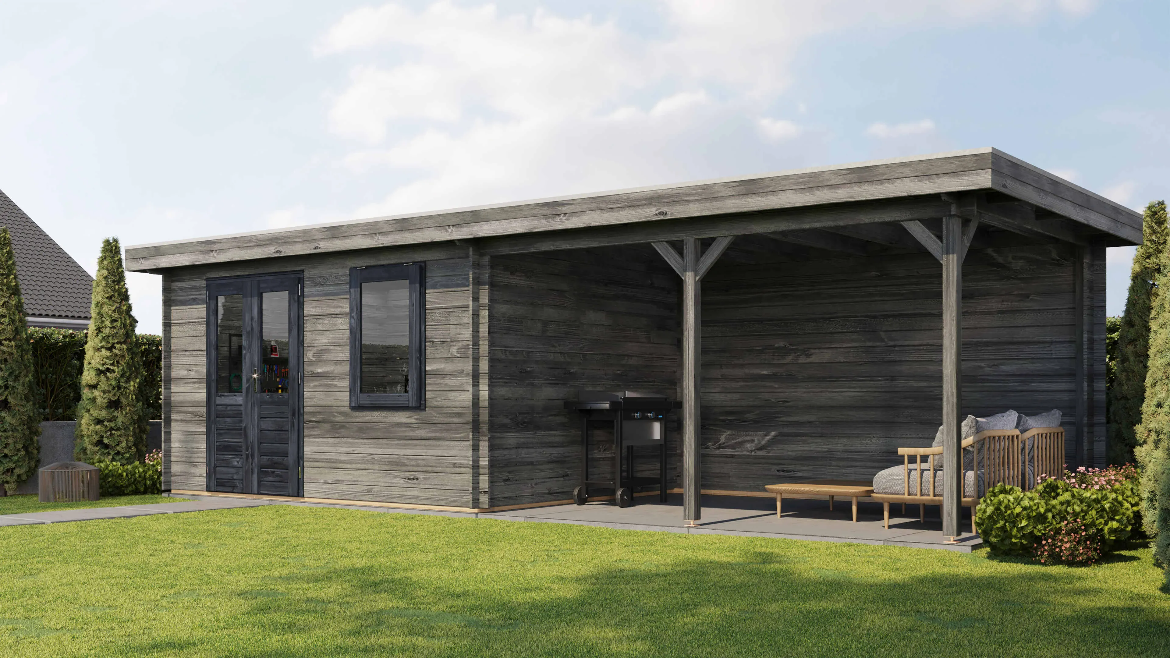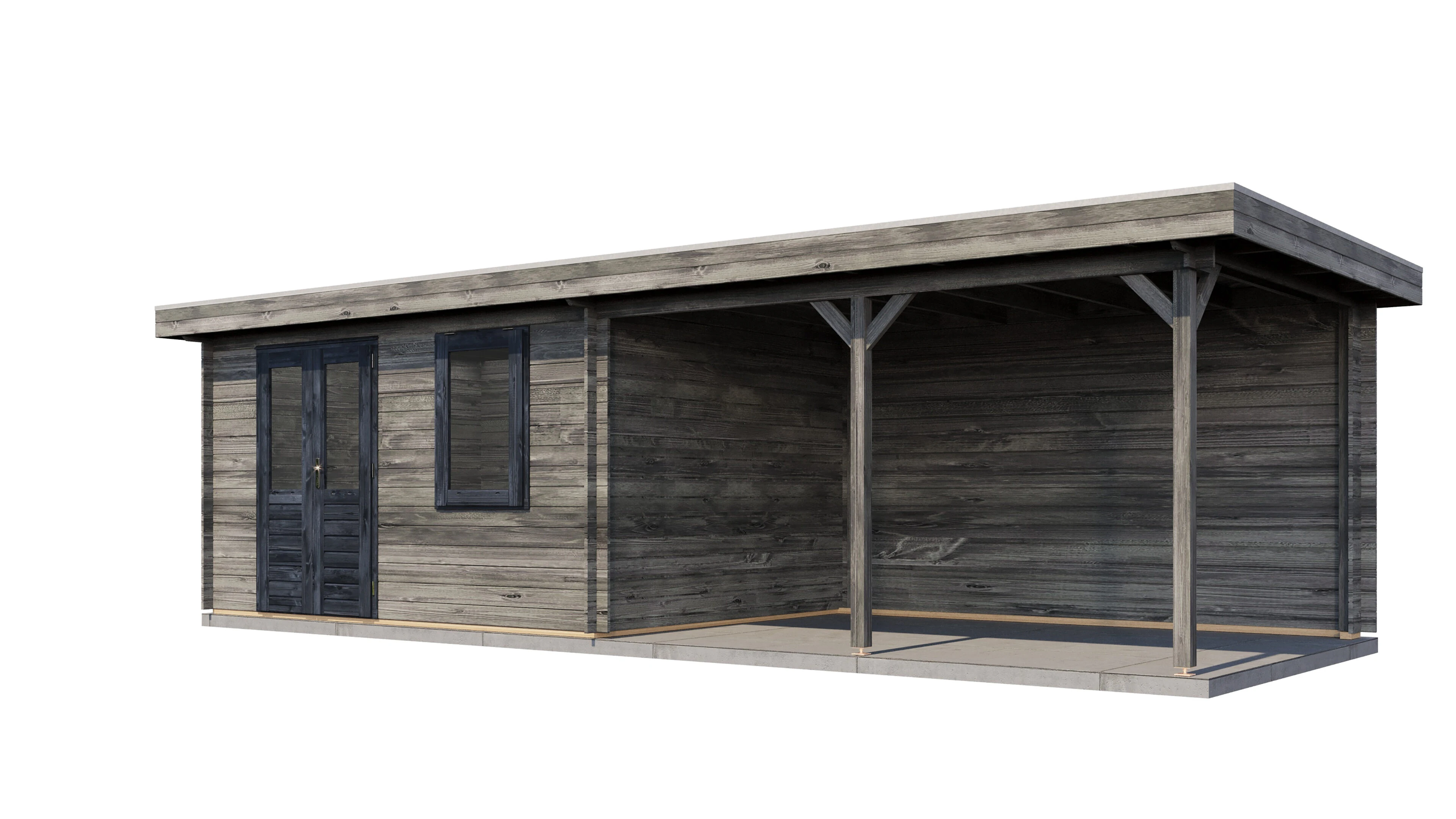 Produktinformationen "Lugarde Select Blockhaus Chemnitz mit Vordach 400x300cm + 400cm - Kesseldruck Grau"