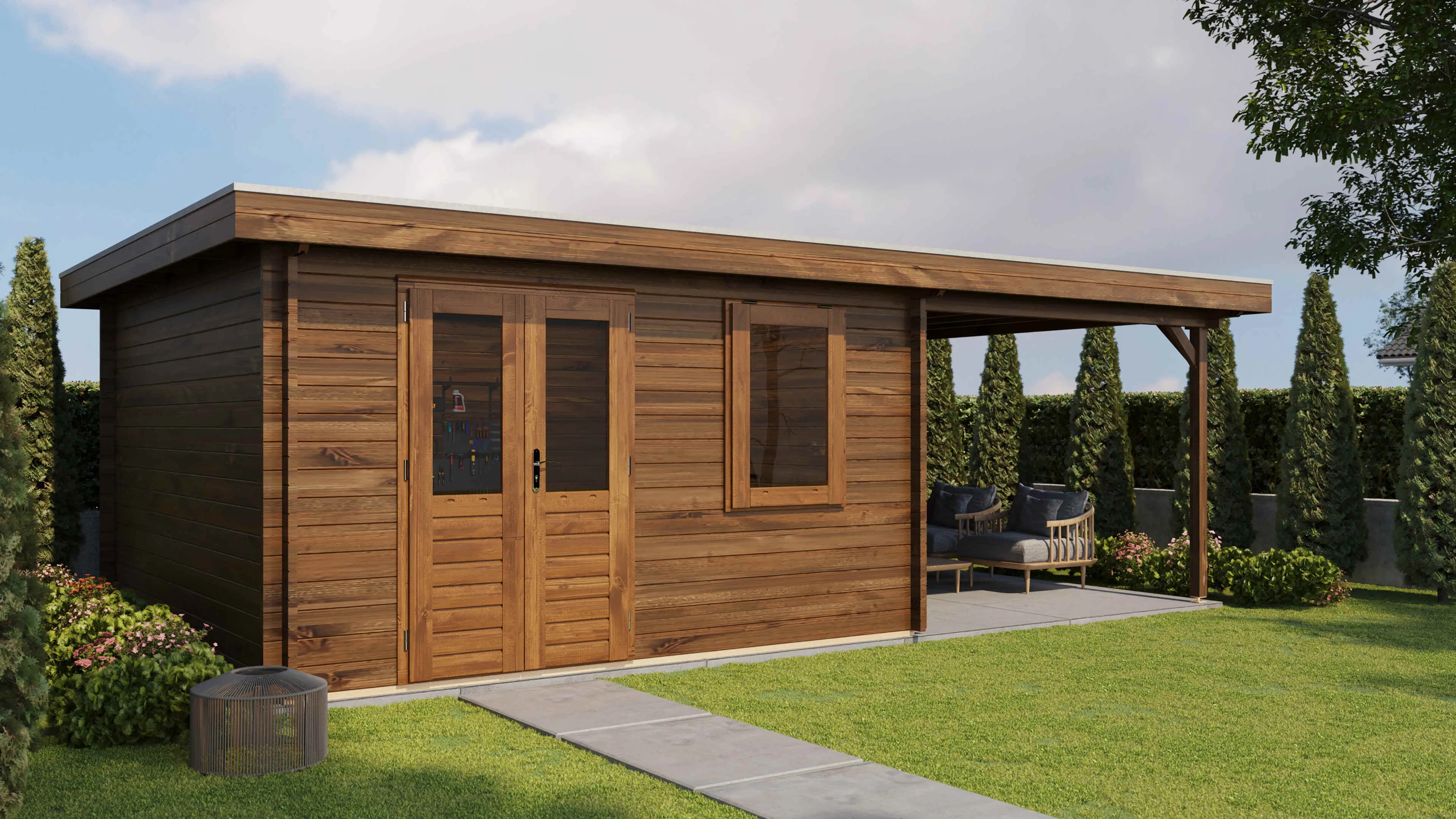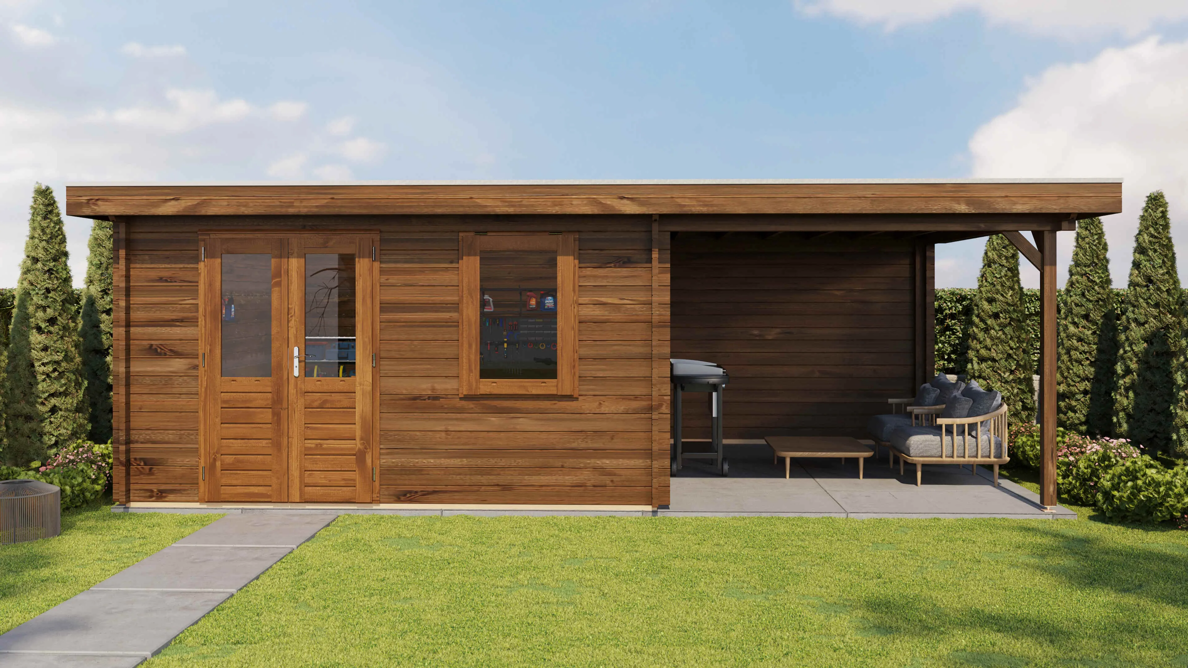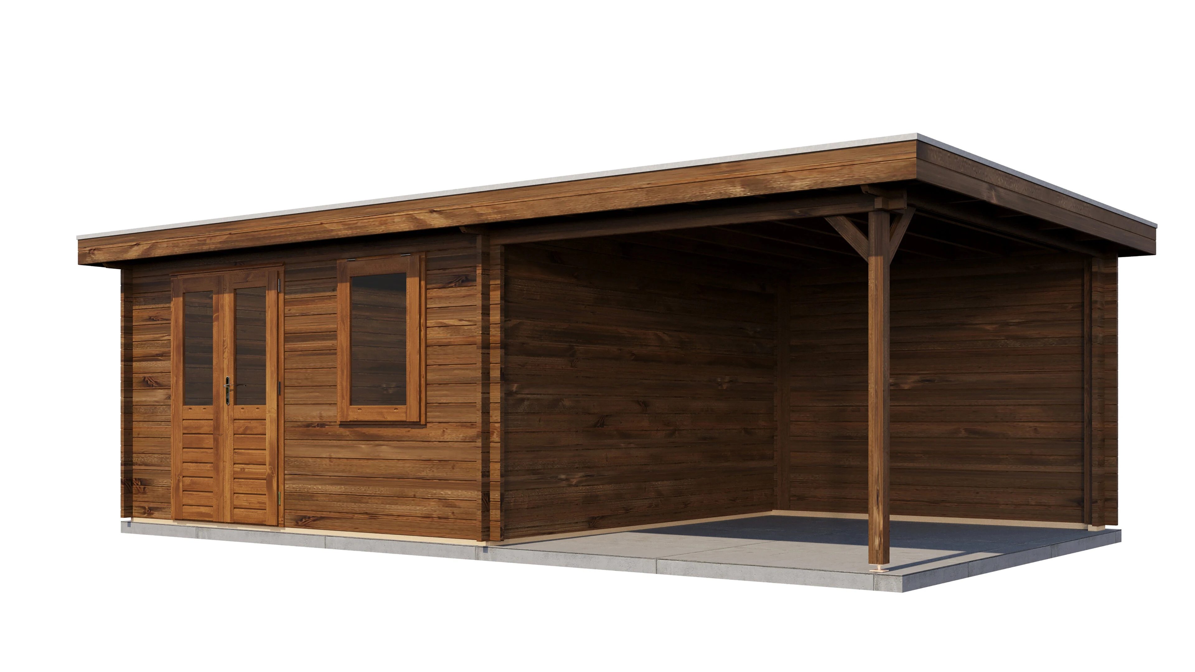 Produktinformationen "Lugarde Select Blockhaus Cuxhaven mit Vordach 400x400cm + 300cm - Kesseldruck Braun"