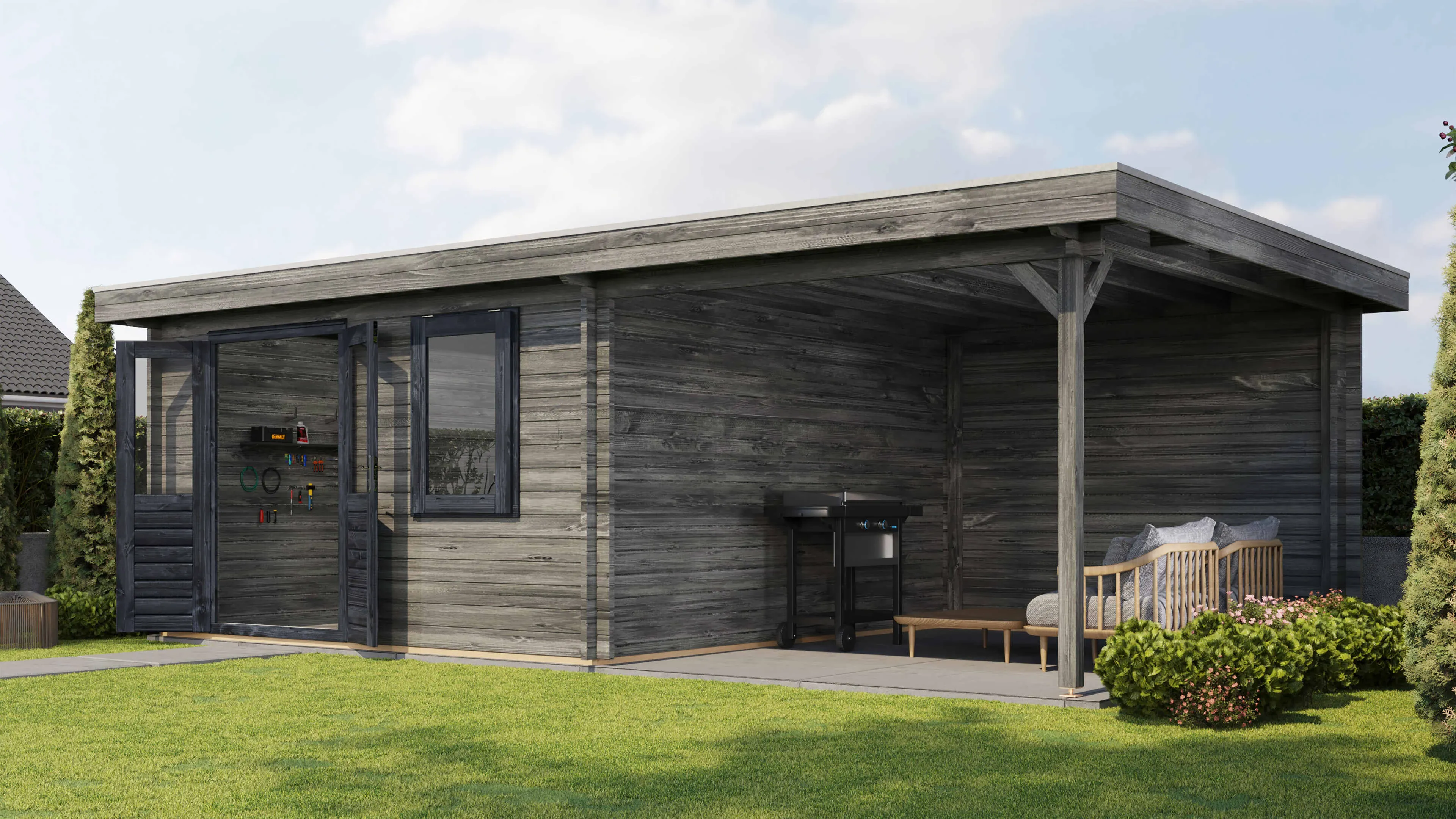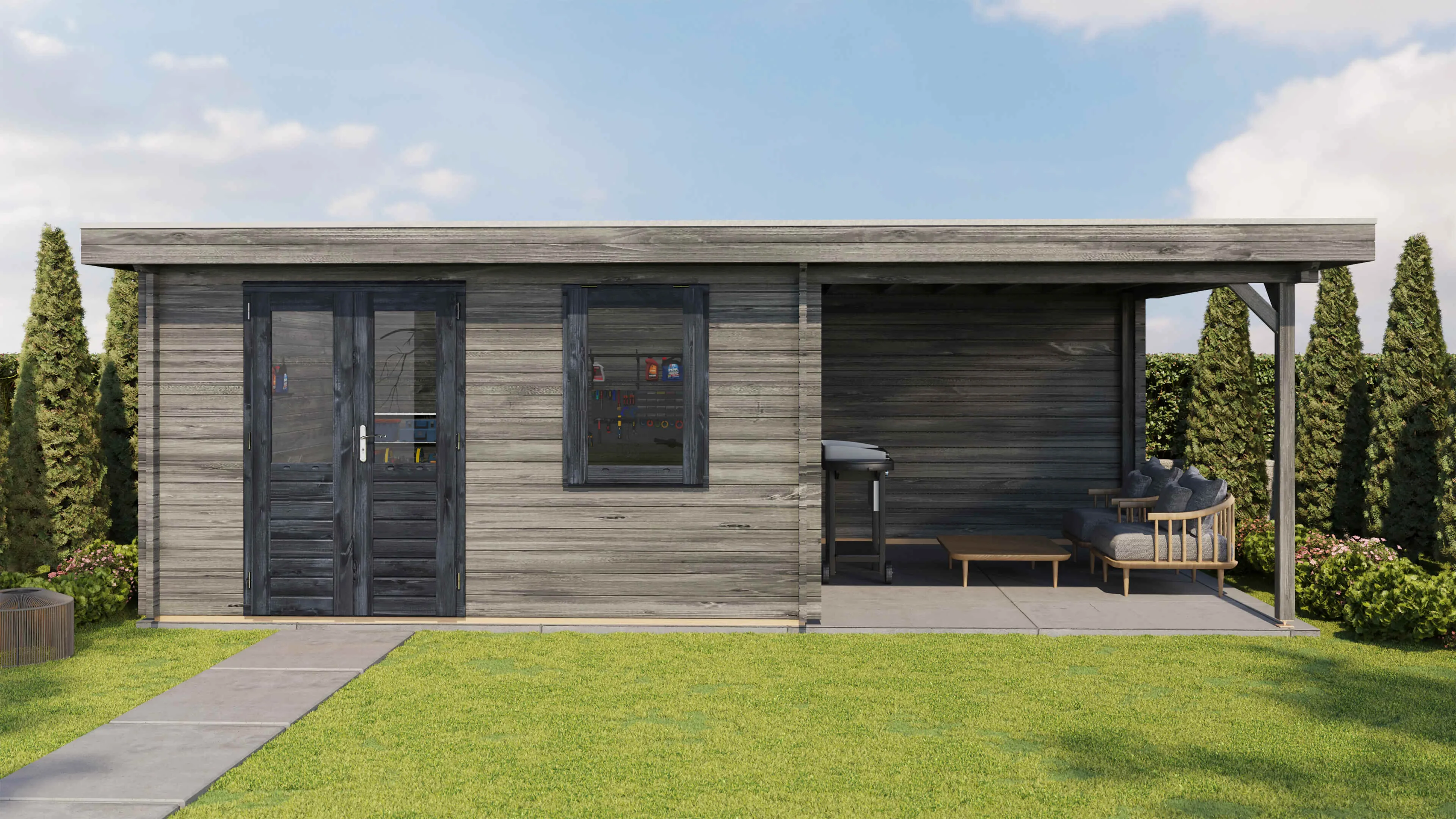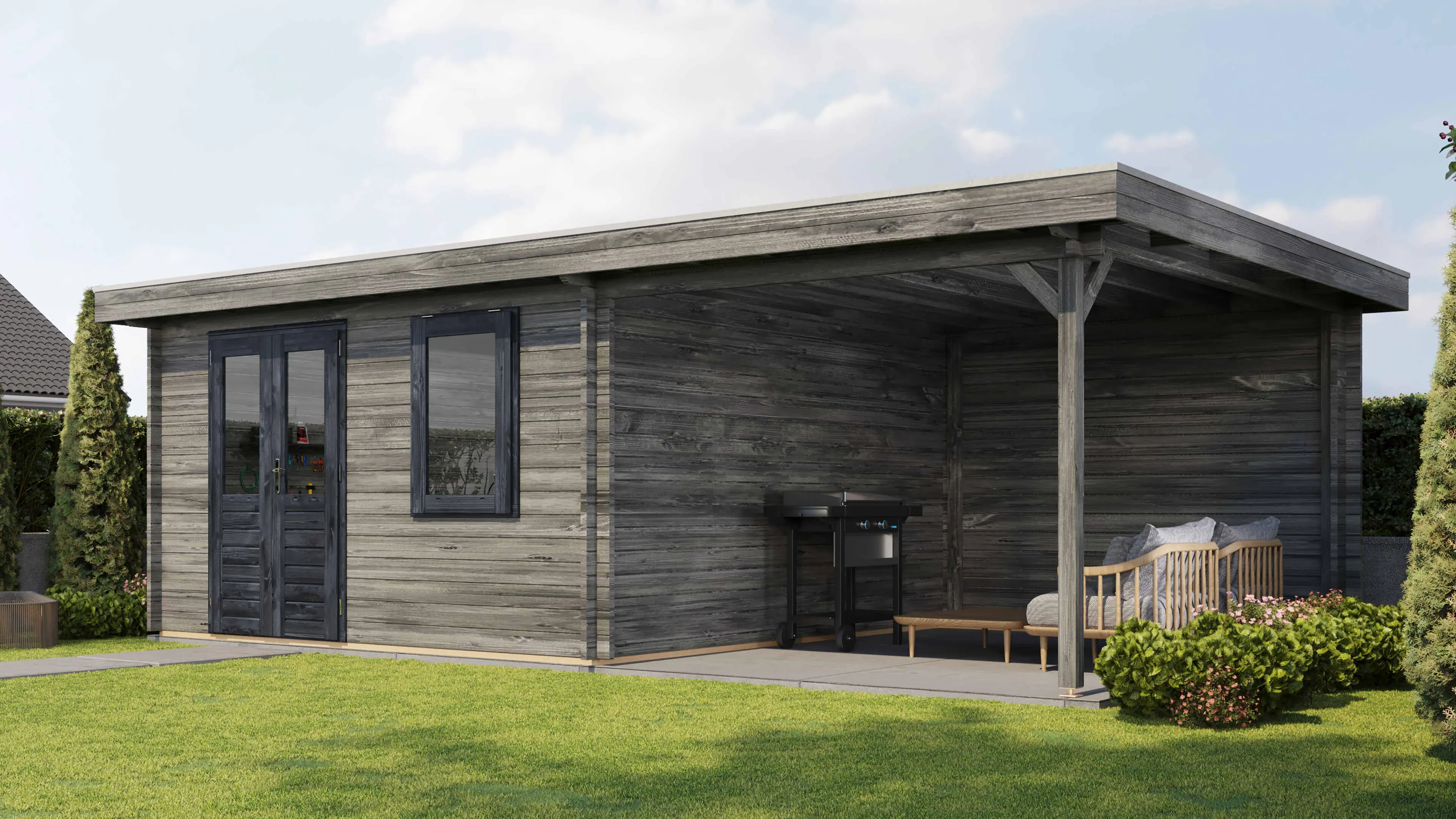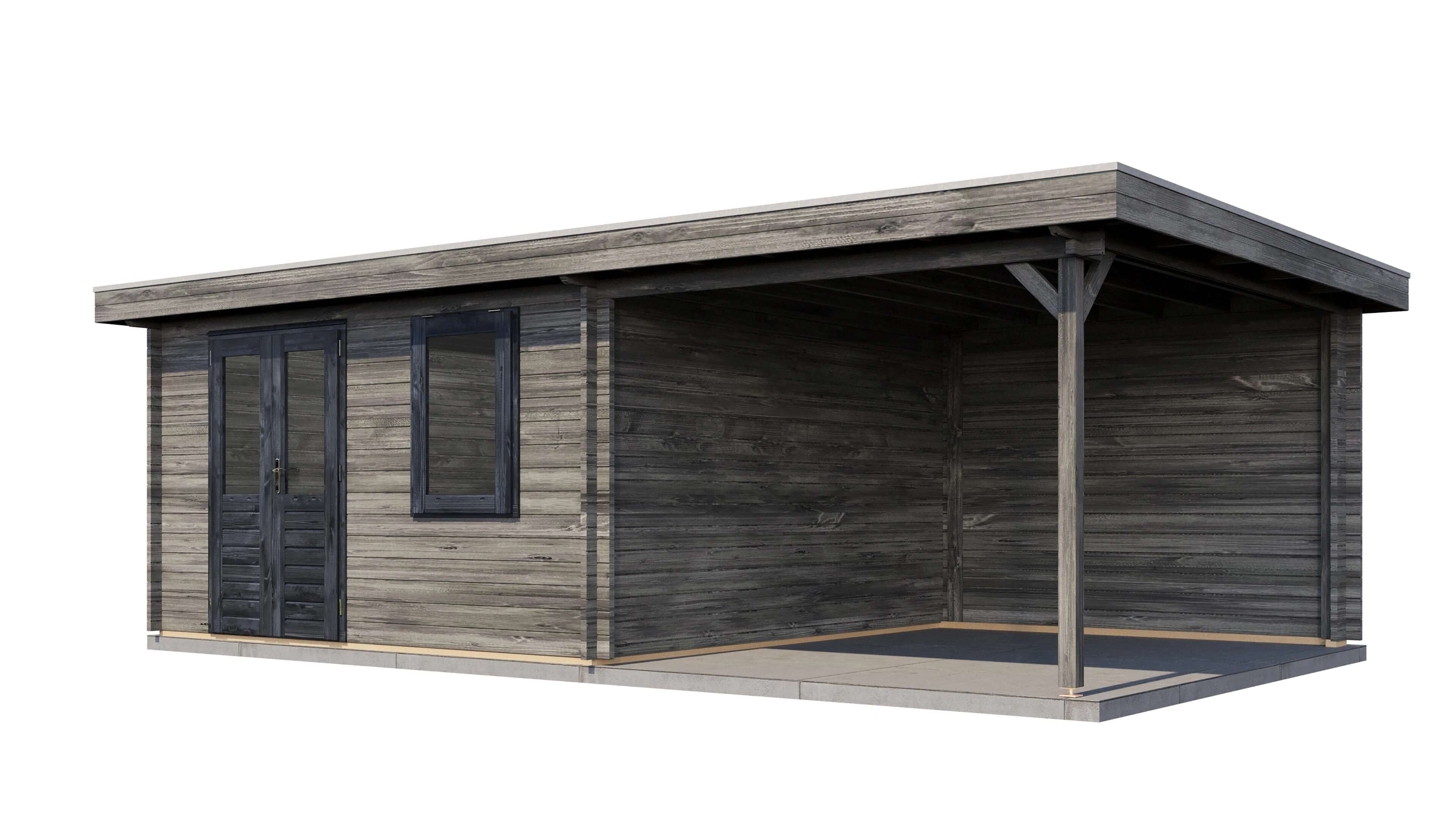 Produktinformationen "Lugarde Select Blockhaus Cuxhaven mit Vordach 400x400cm + 300cm - Kesseldruck Grau"