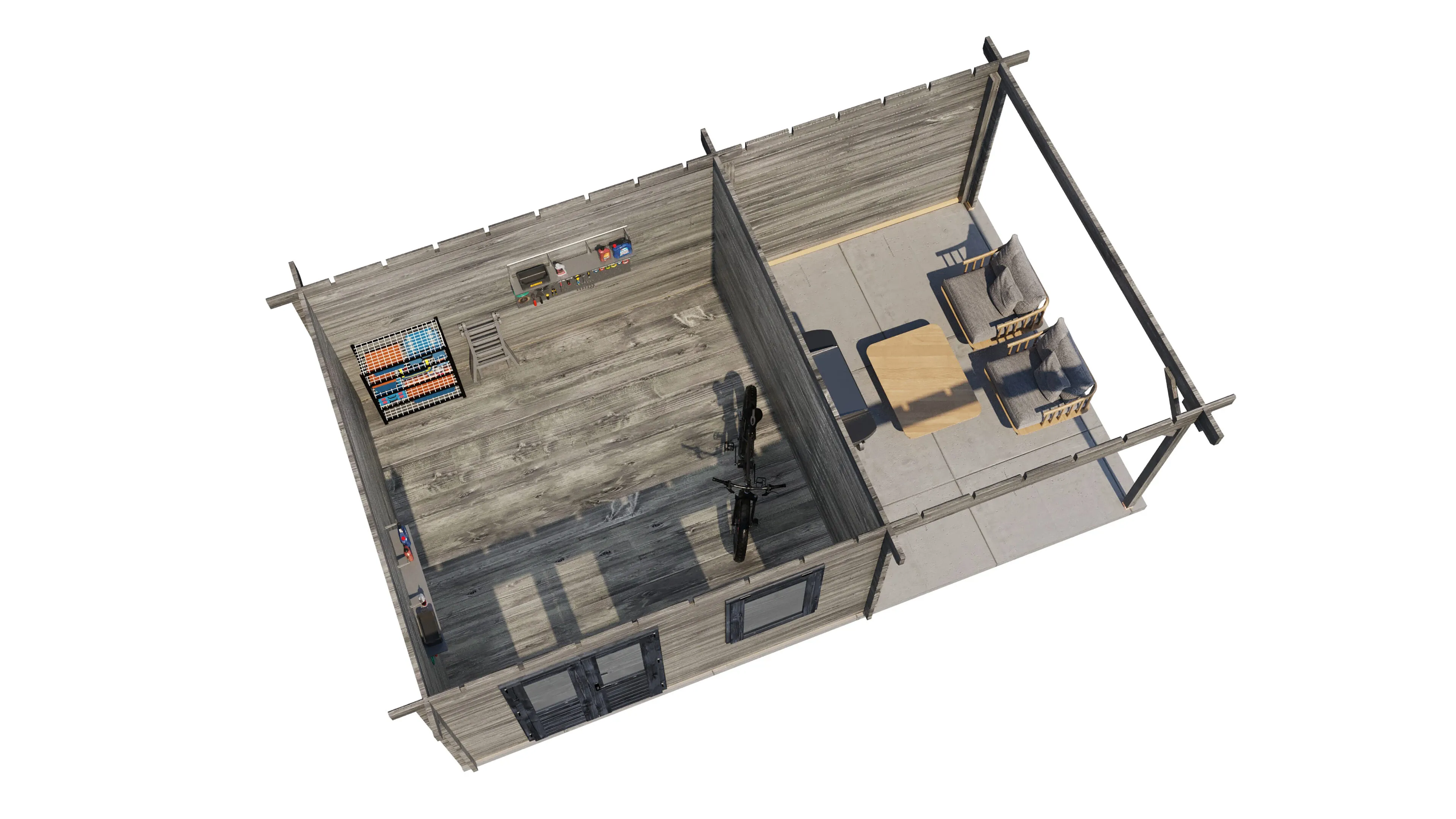 Das Lugarde Select Blockhaus verbindet traditionelle Holzbauweise mit moderner Funktionalität. Mit einer Grundfläche von 400 × 400 cm bietet es vielseitige Nutzungsmöglichkeiten für Ihren Garten.