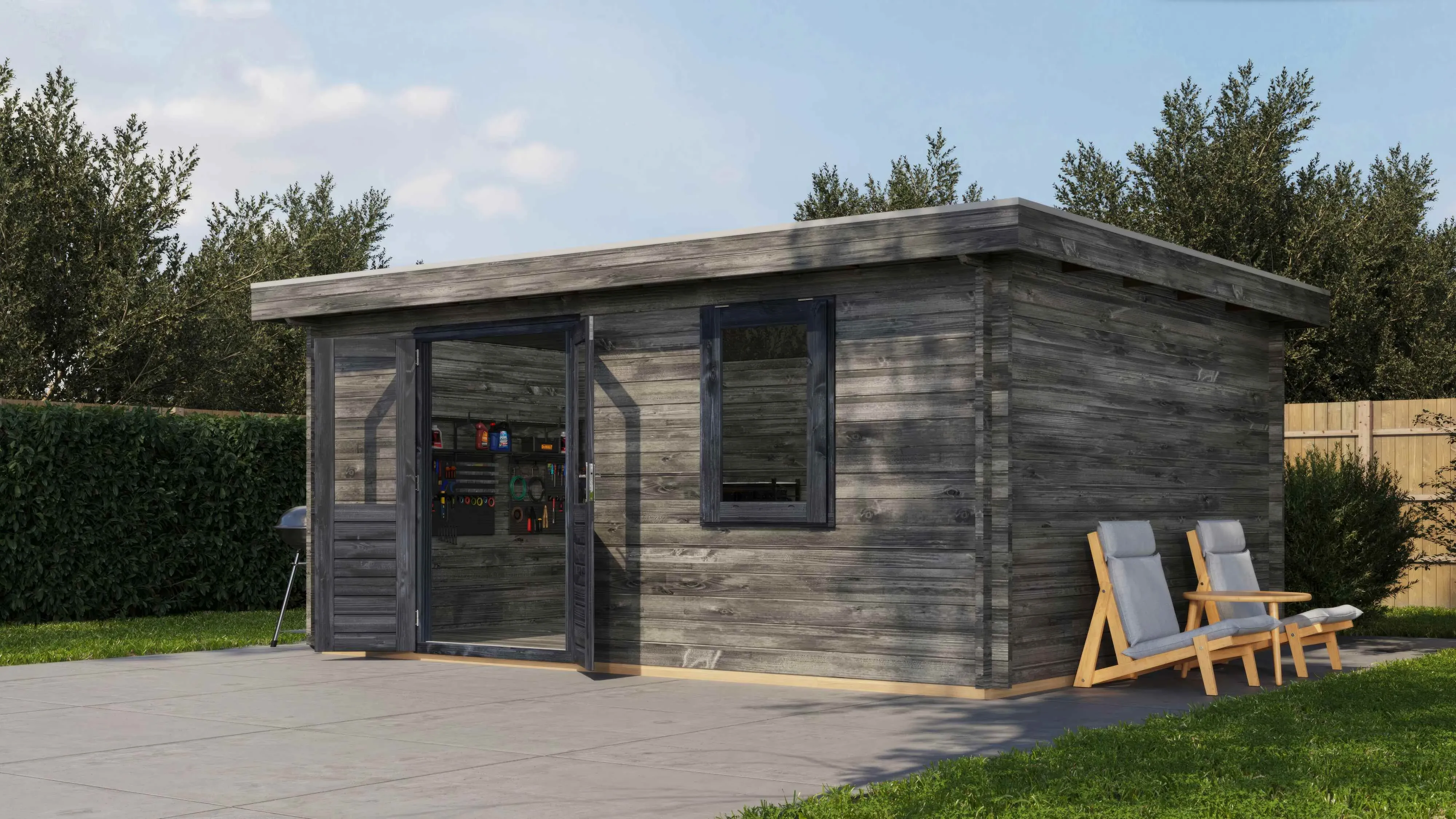 Das Lugarde Select Blockhaus verbindet traditionelle Holzbauweise mit moderner Funktionalität. Mit einer Grundfläche von 500 × 400 cm bietet es vielseitige Nutzungsmöglichkeiten für Ihren Garten.