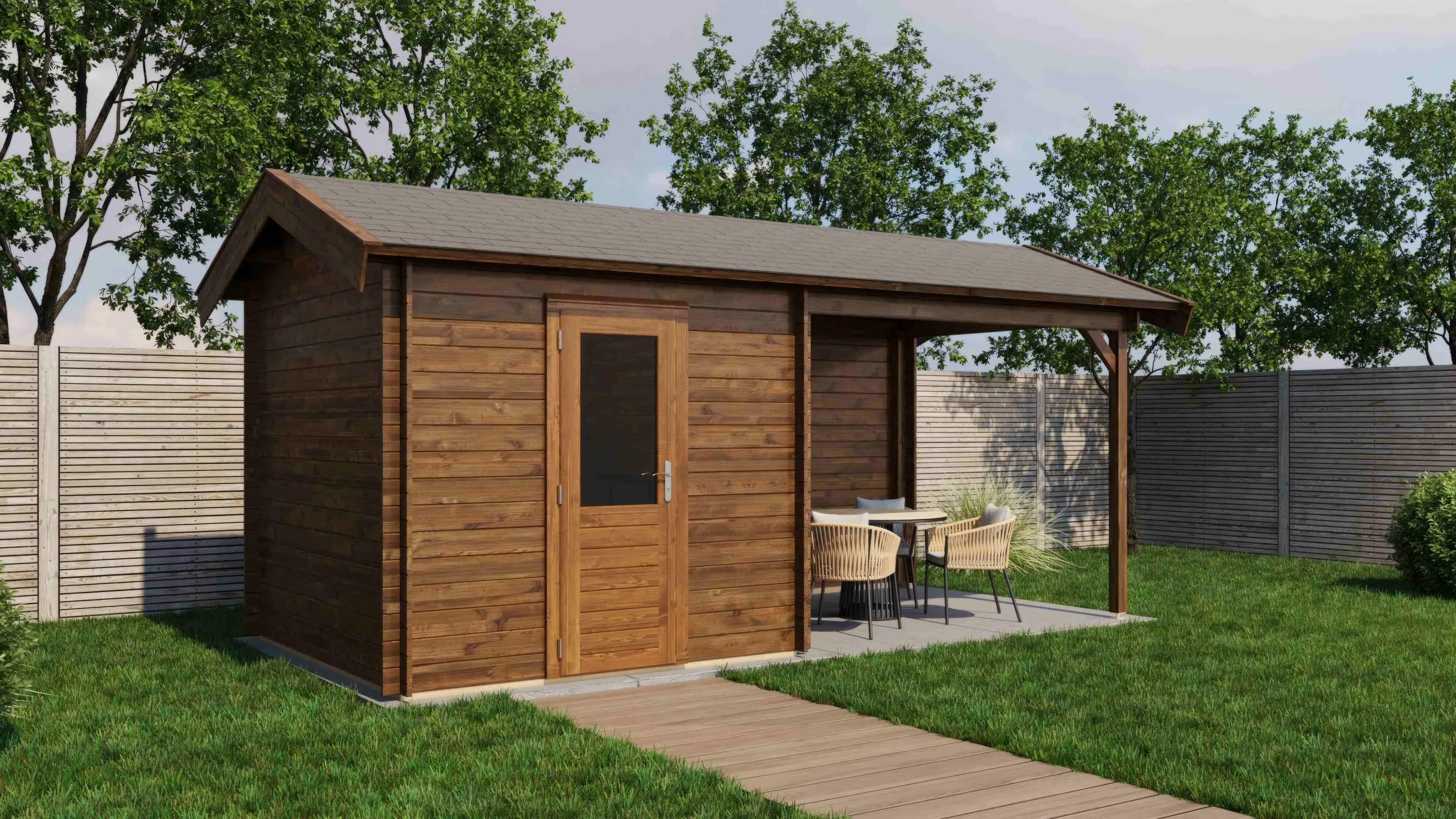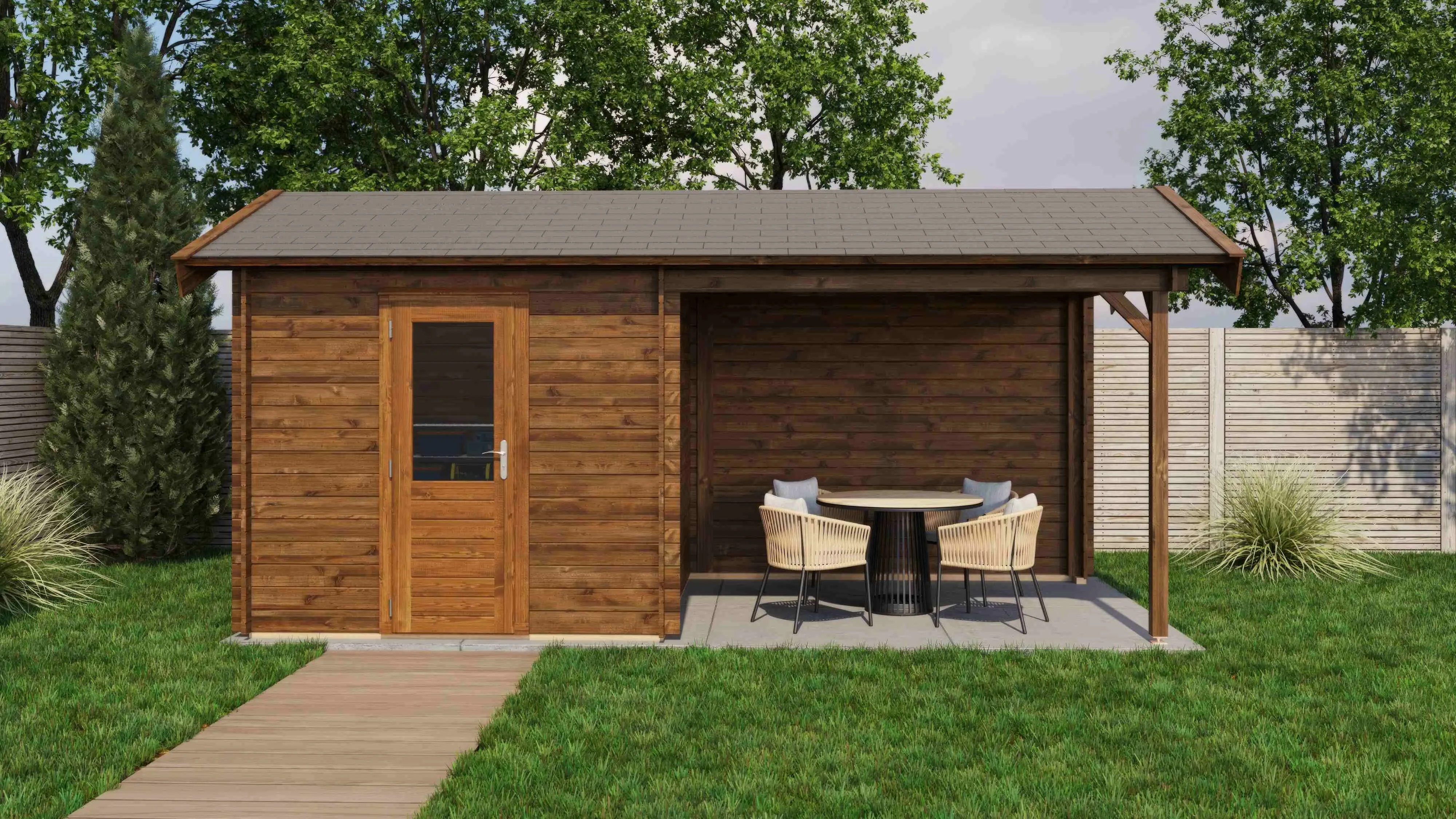 Produktinformationen "Lugarde Select Blockhaus Erfurt mit Vordach 250x250cm + 300cm - Kesseldruck Braun"