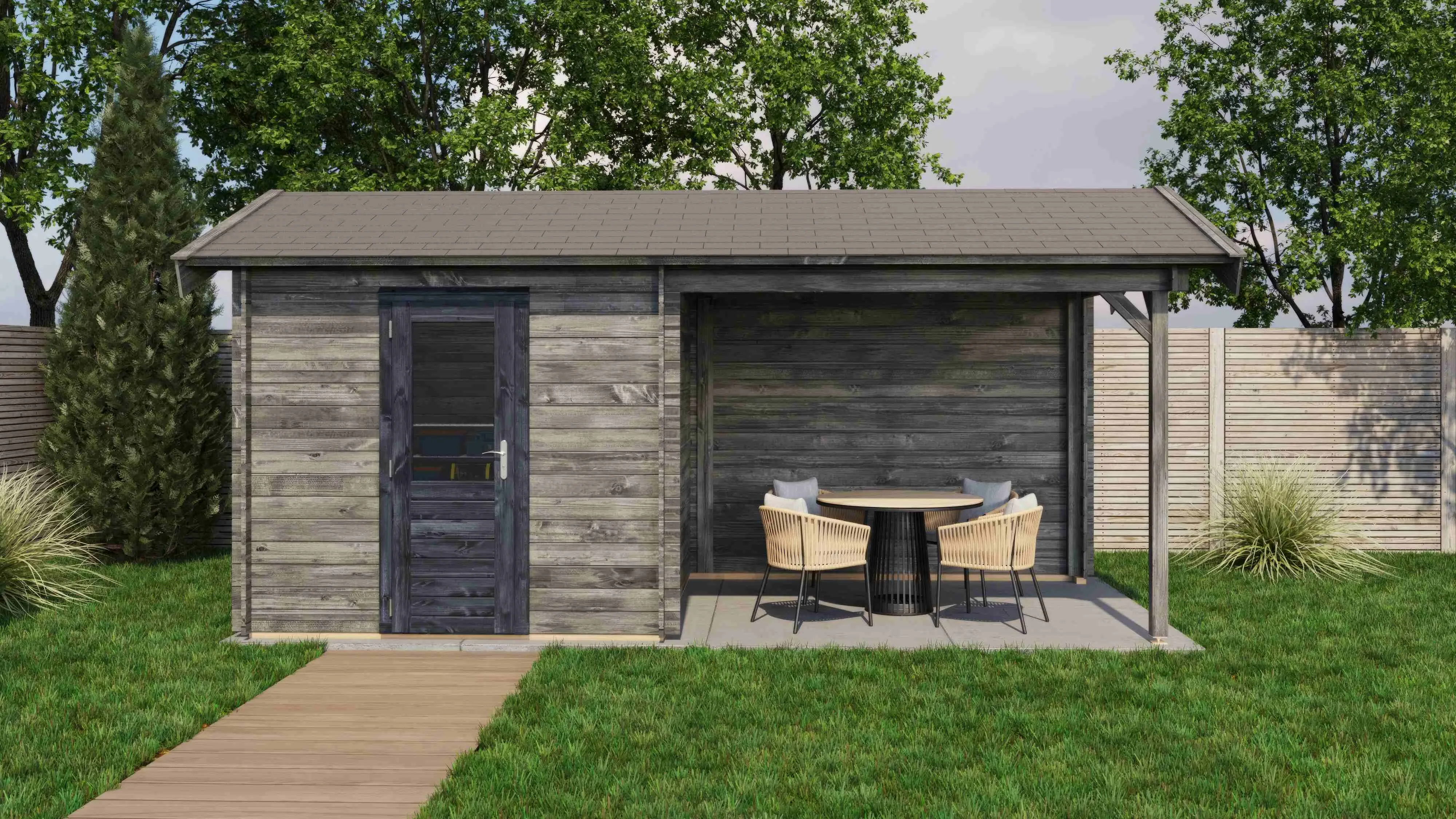 Produktinformationen "Lugarde Select Blockhaus Erfurt mit Vordach 250x250cm + 300cm - Kesseldruck Grau"
