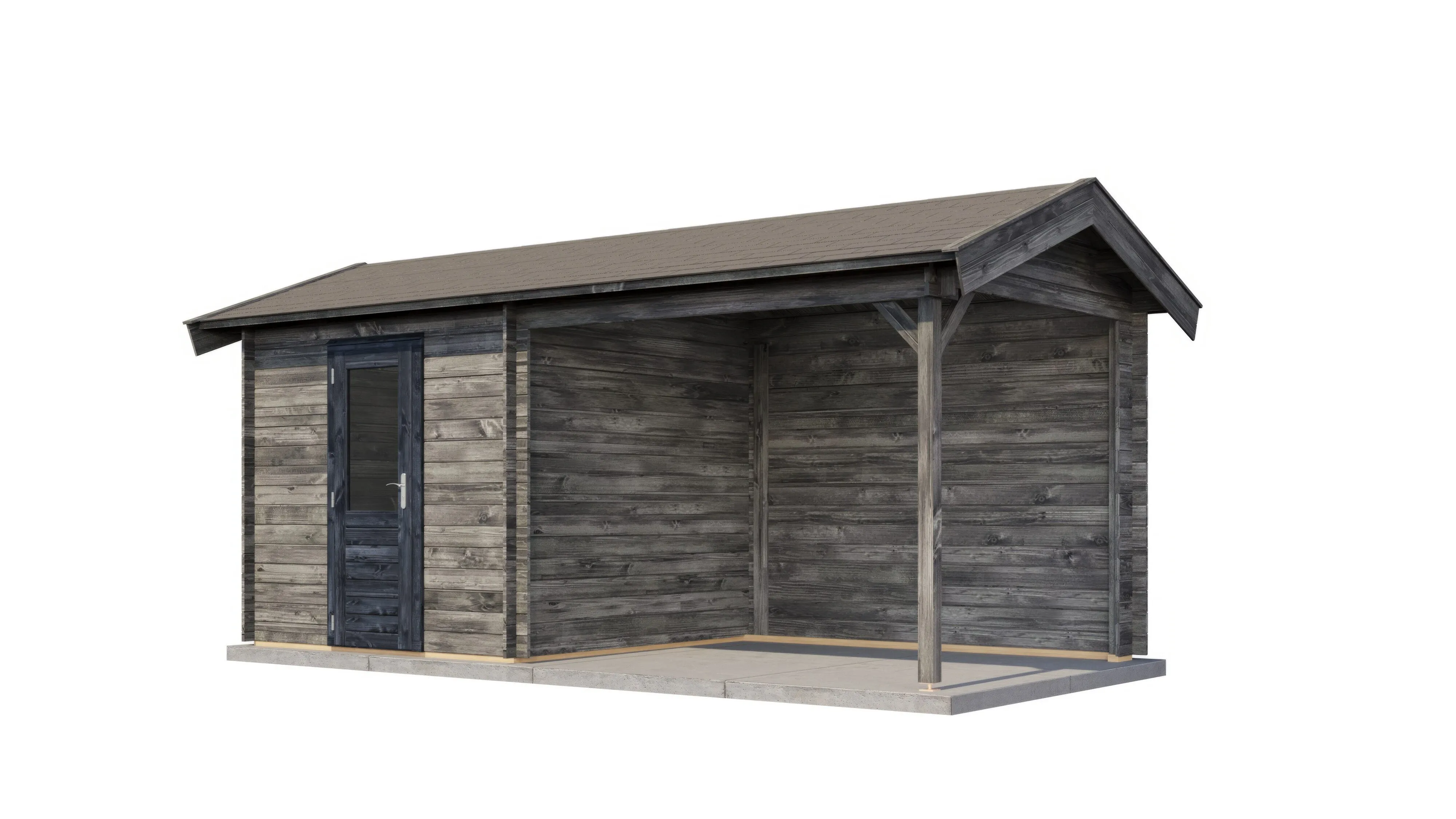 Lugarde Select Blockhaus Erfurt mit Vordach 250x250cm + 300cm - Kesseldruck Grau