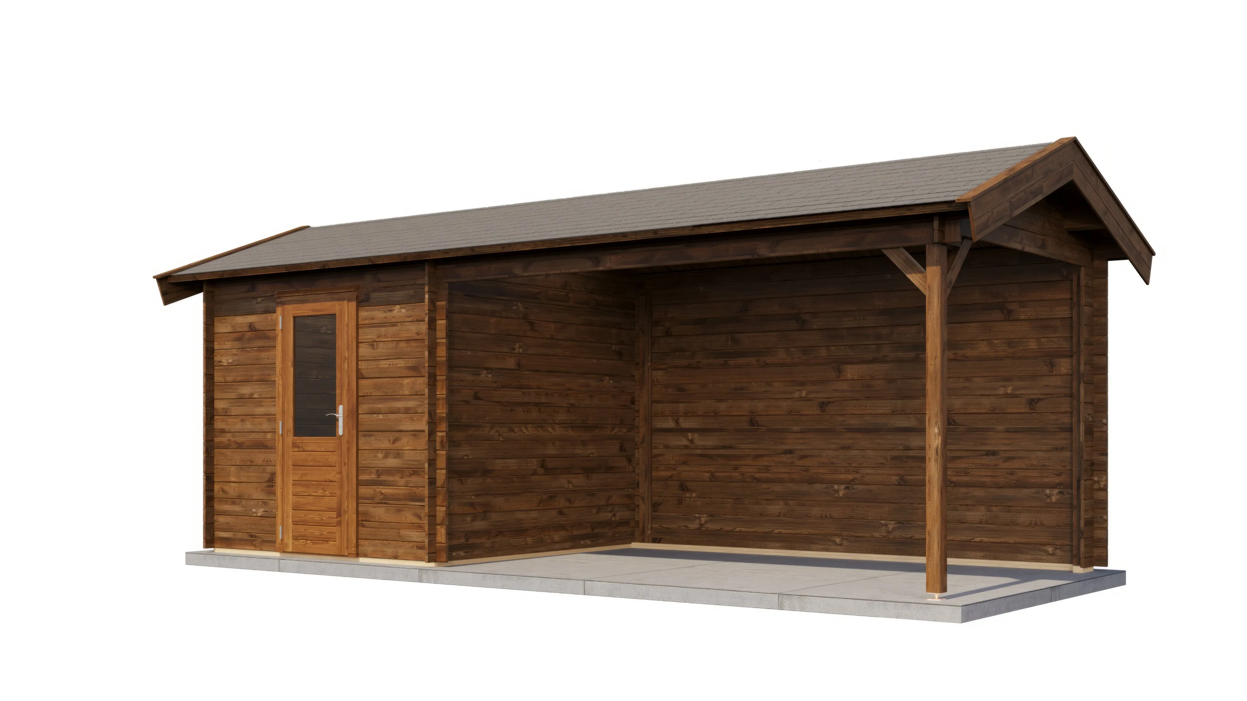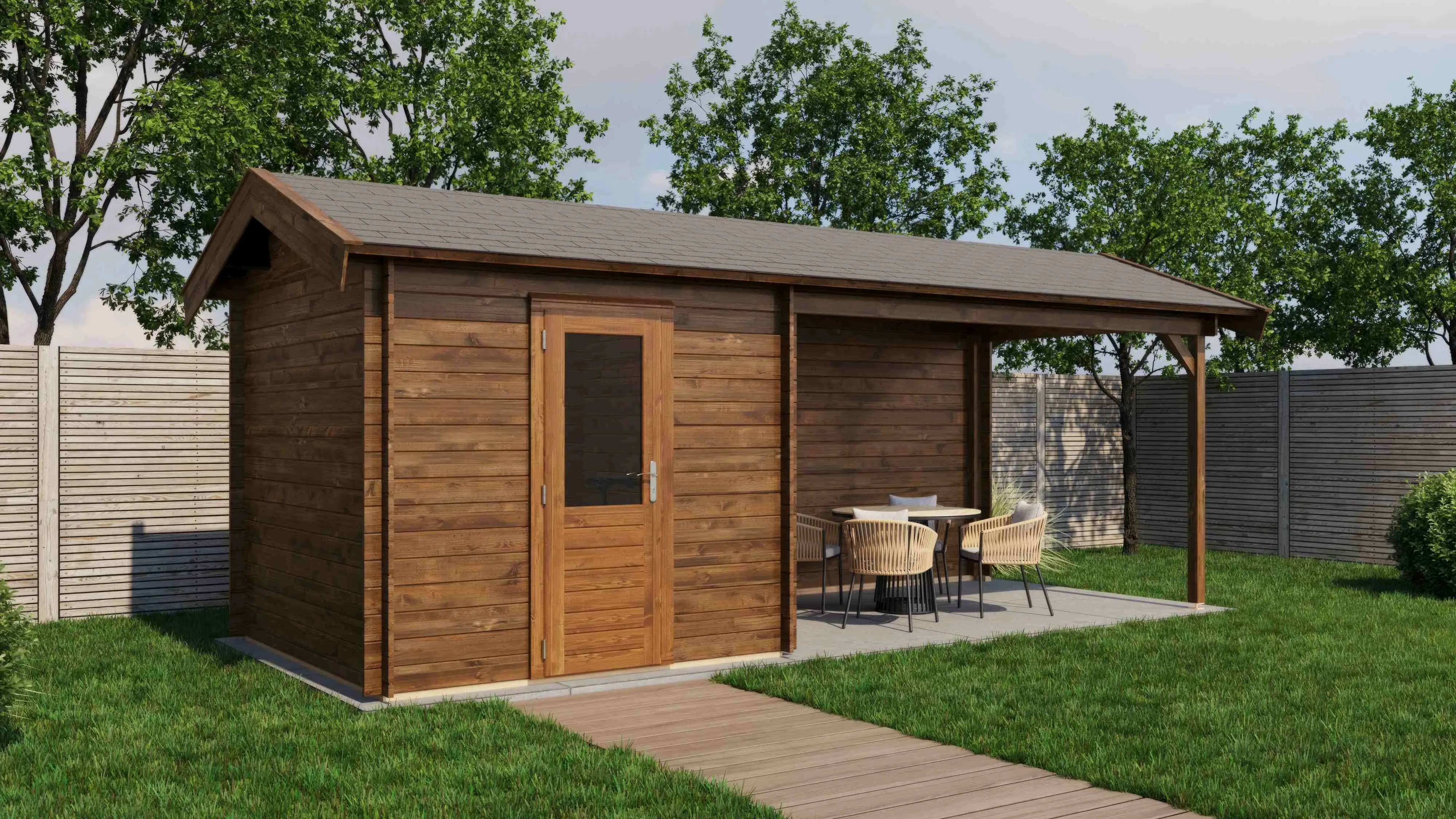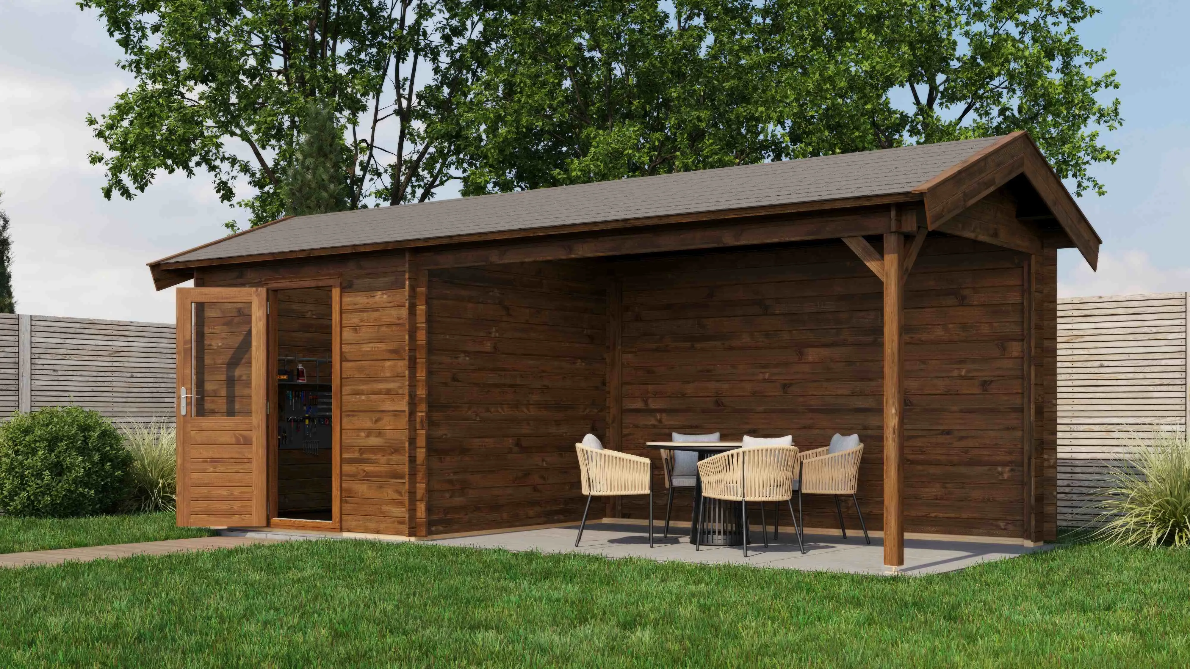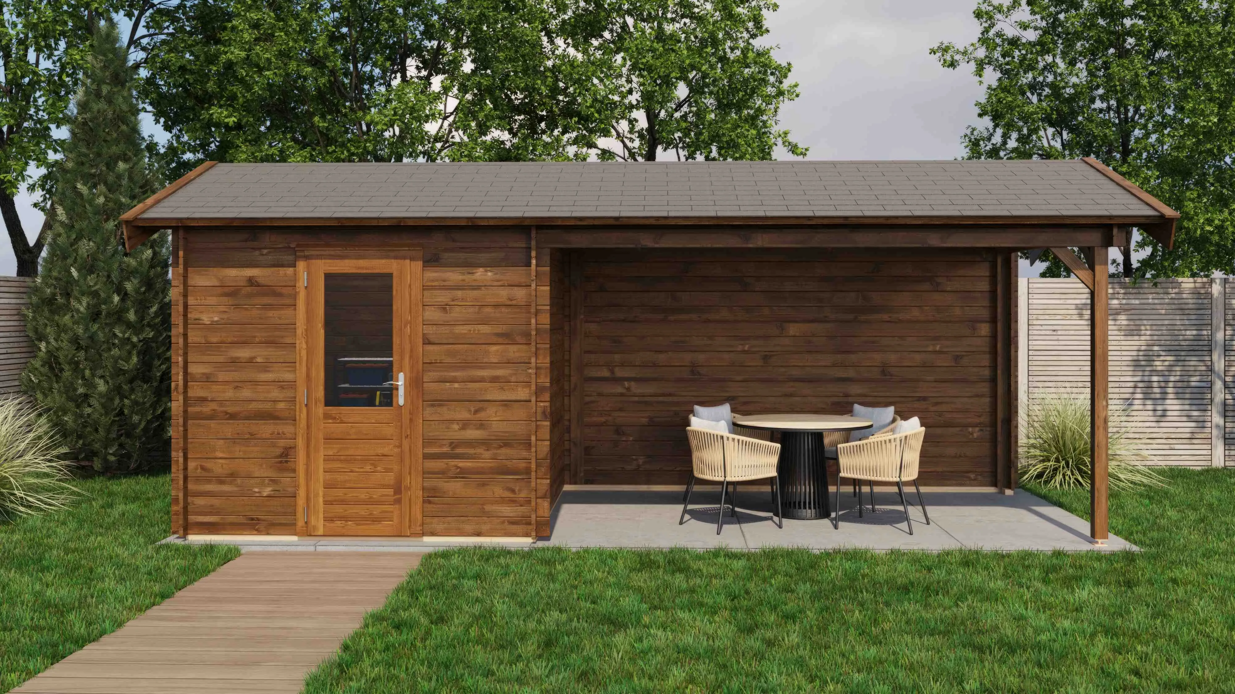 Produktinformationen "Lugarde Select Blockhaus Erlangen mit Vordach 250x250cm + 400cm - Kesseldruck Braun"