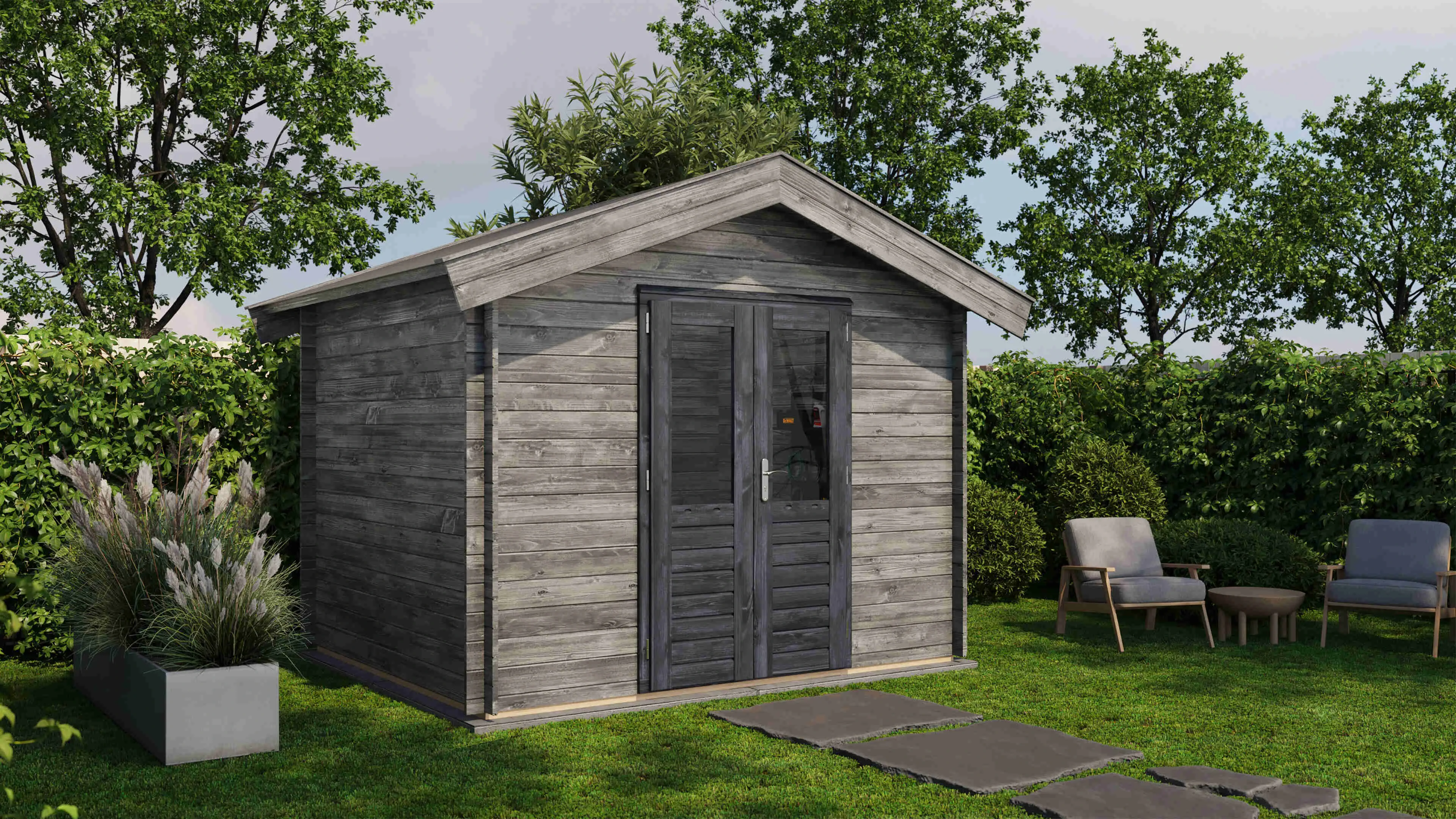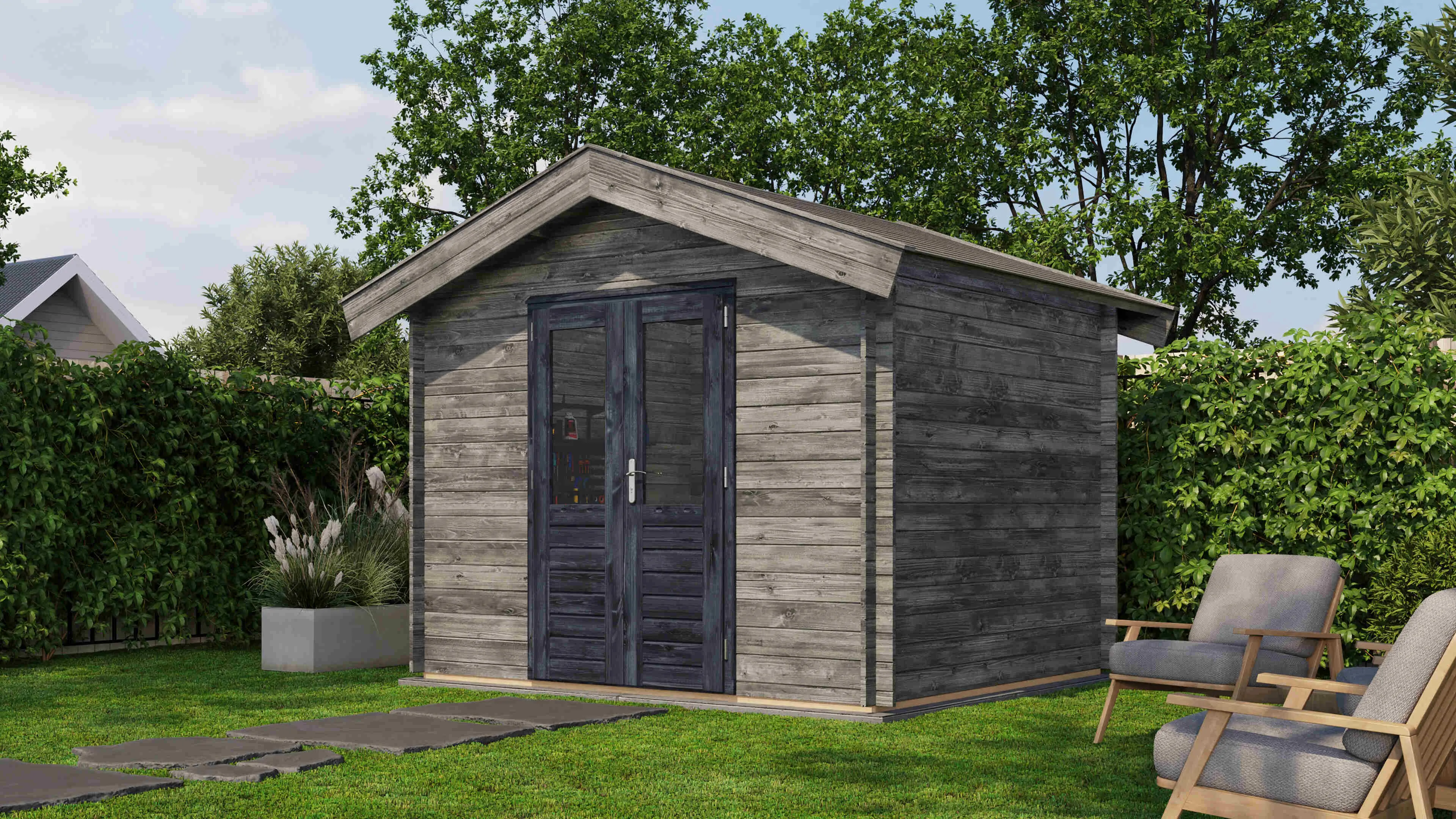 Das Lugarde Select Blockhaus verbindet traditionelle Holzbauweise mit moderner Funktionalität. Mit einer Grundfläche von 300 × 250 cm bietet es vielseitige Nutzungsmöglichkeiten für Ihren Garten.