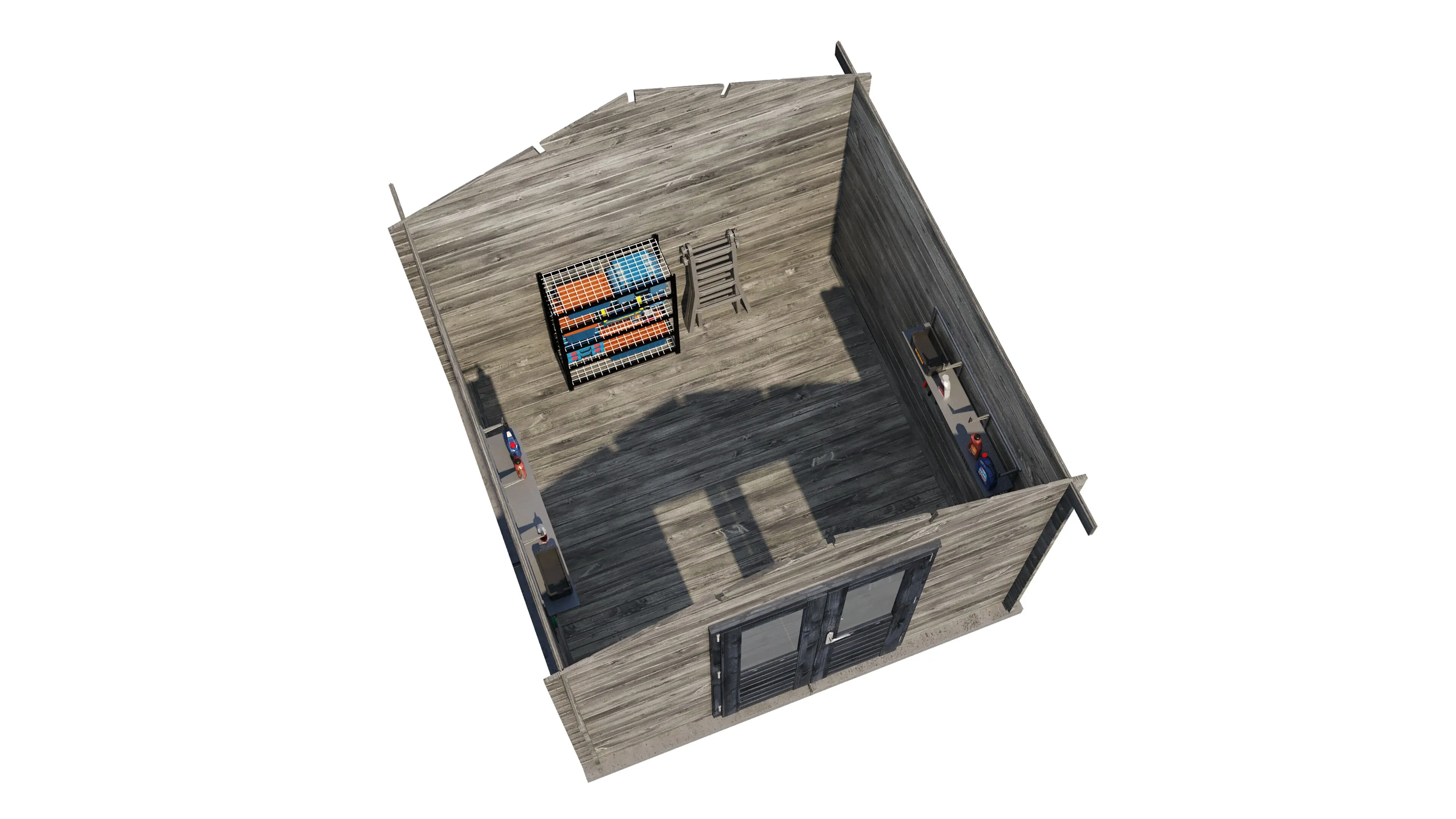 Die Konstruktion basiert auf bewährter Blockbauweise mit präzise gearbeiteten Elementen aus getrocknetem Fichtenholz. Die 28 mm starken Blockbohlen gewährleisten eine robuste und langlebige Konstruktion. Die 18 mm Dachschalung mit Nut-Feder-System sorgt für eine stabile und dichte Dachkonstruktion.
