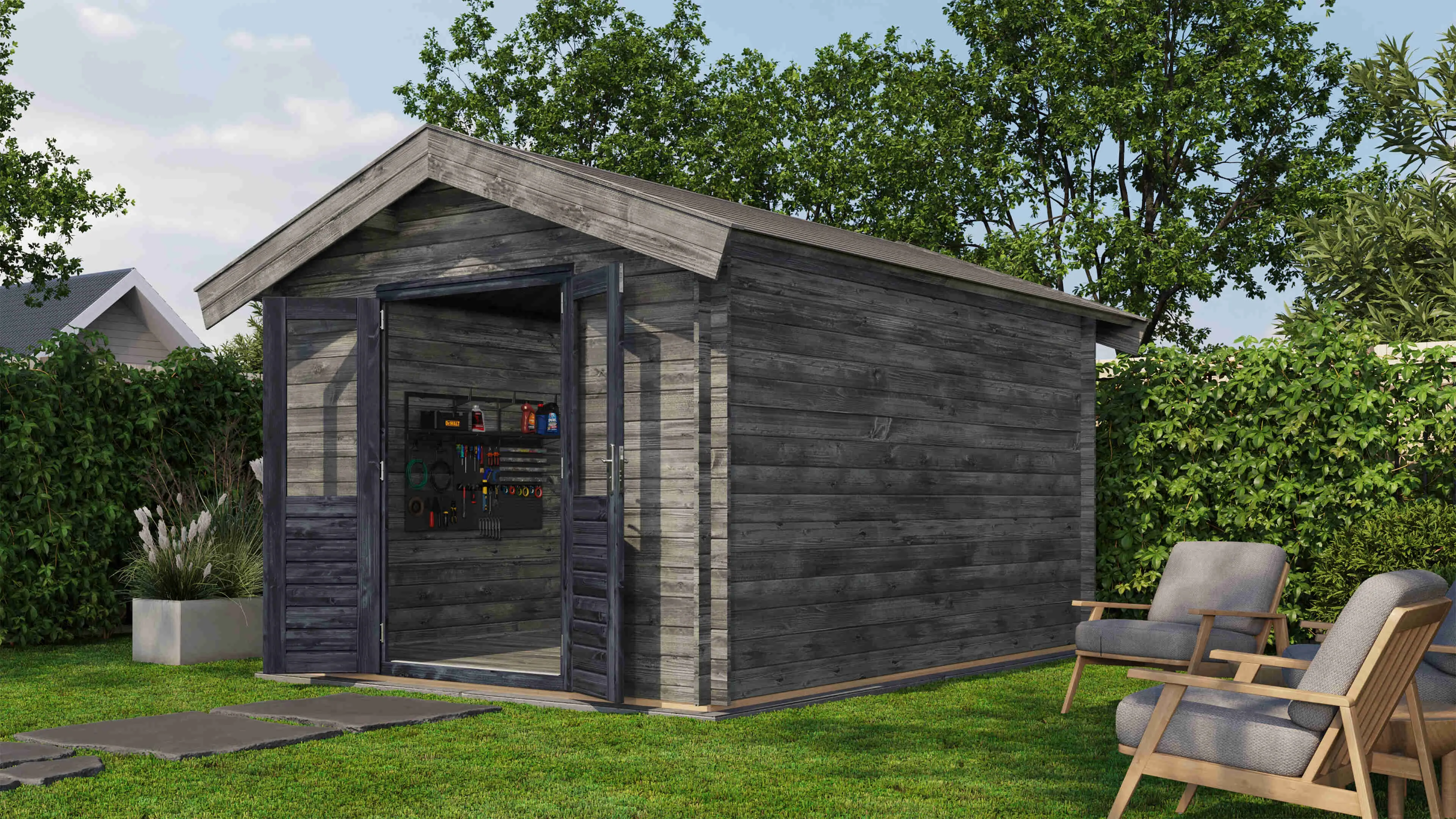 Das Lugarde Select Blockhaus verbindet traditionelle Holzbauweise mit moderner Funktionalität. Mit einer Grundfläche von 300 × 400 cm bietet es vielseitige Nutzungsmöglichkeiten für Ihren Garten.
