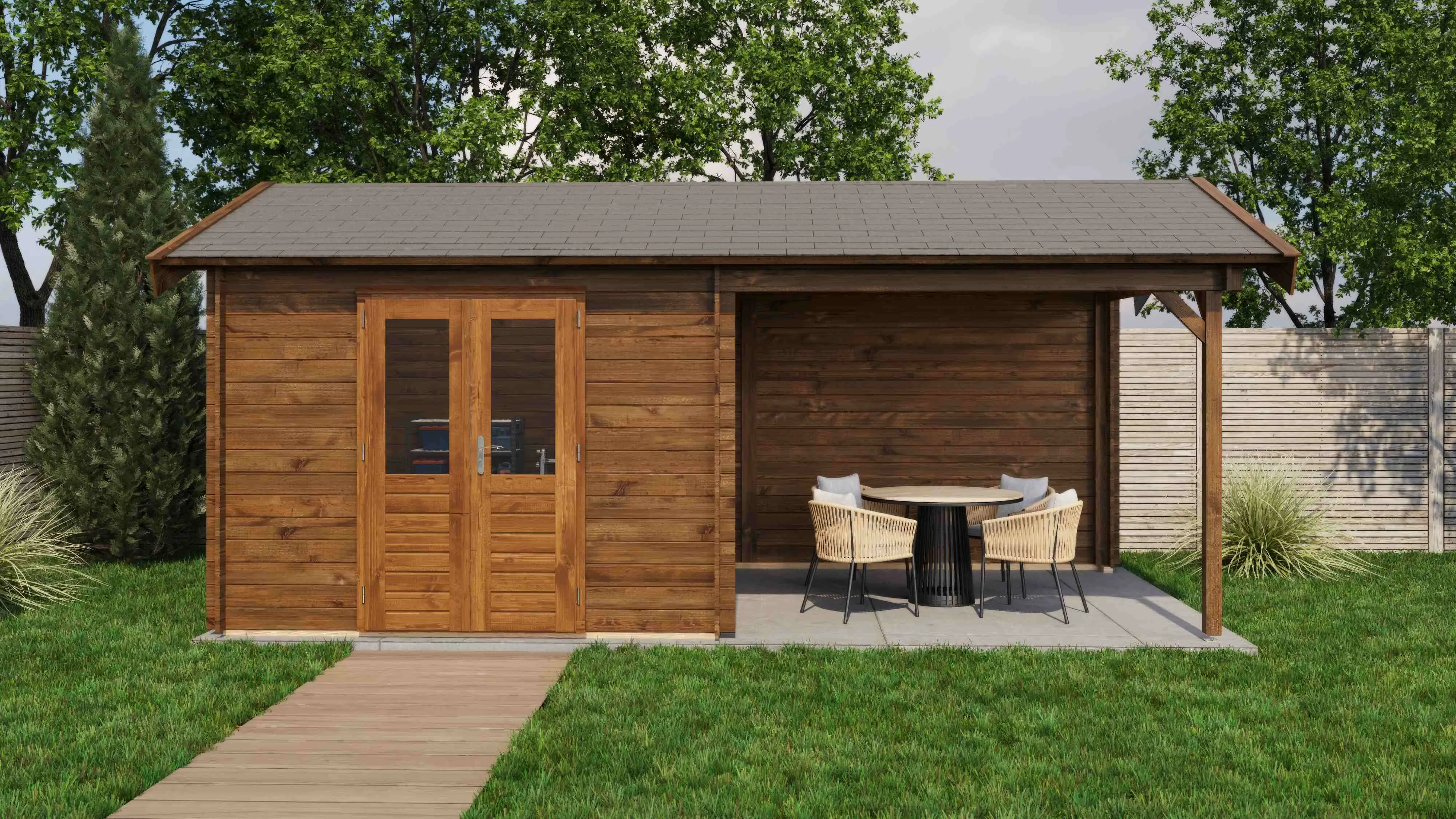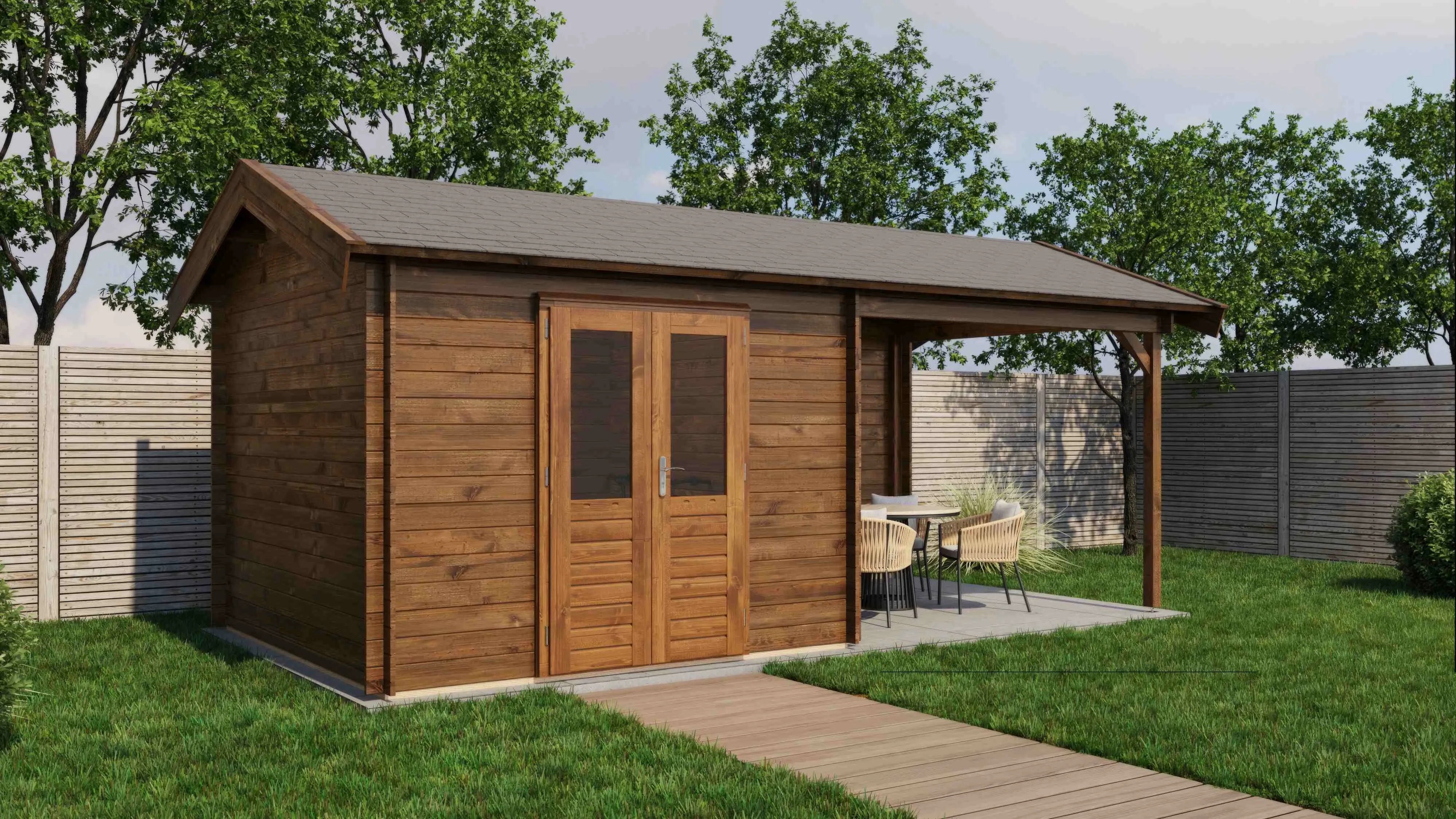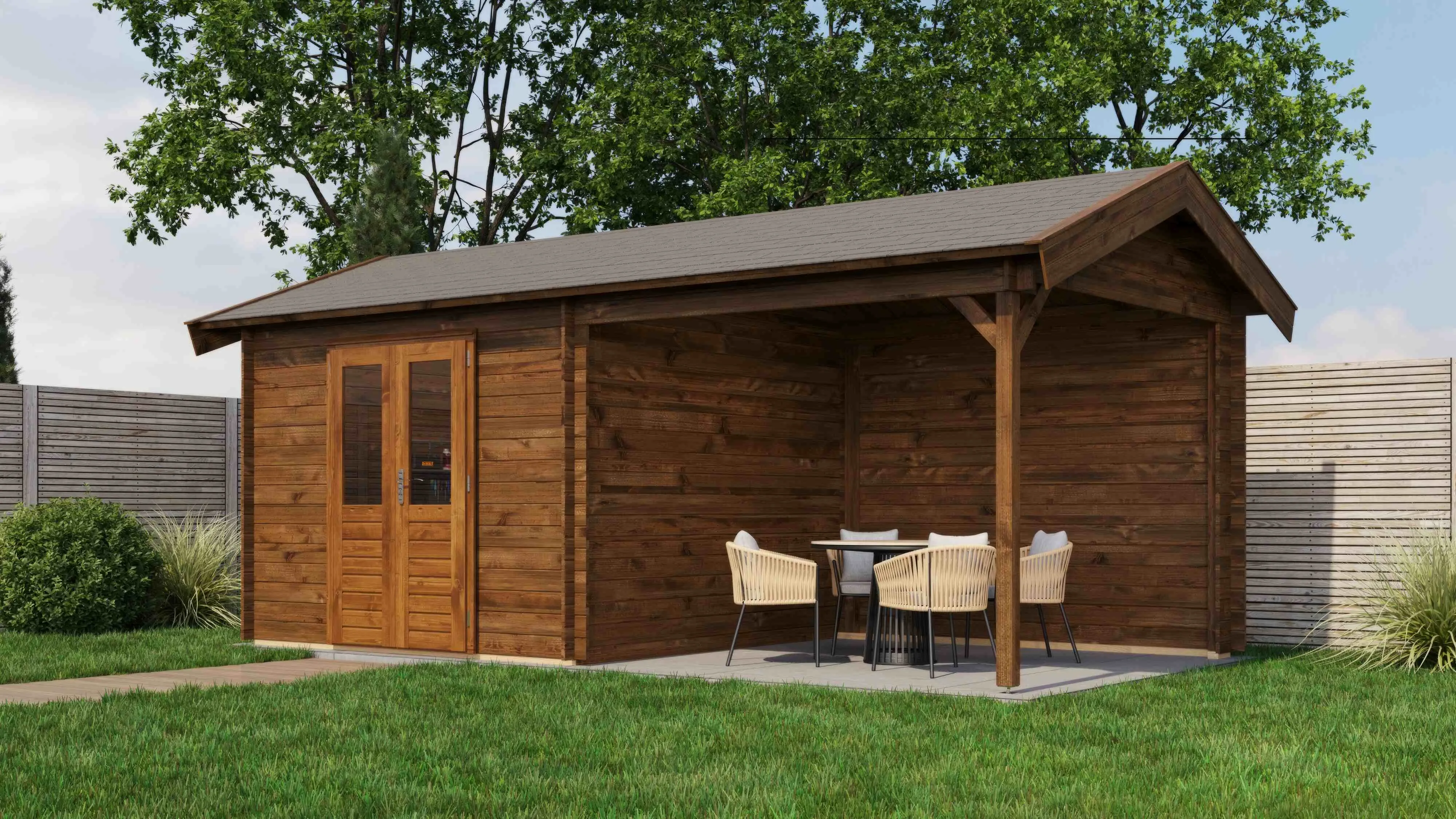 Das Lugarde Select Blockhaus verbindet traditionelle Holzbauweise mit moderner Funktionalität. Mit einer Grundfläche von 300 × 300 cm bietet es vielseitige Nutzungsmöglichkeiten für Ihren Garten.