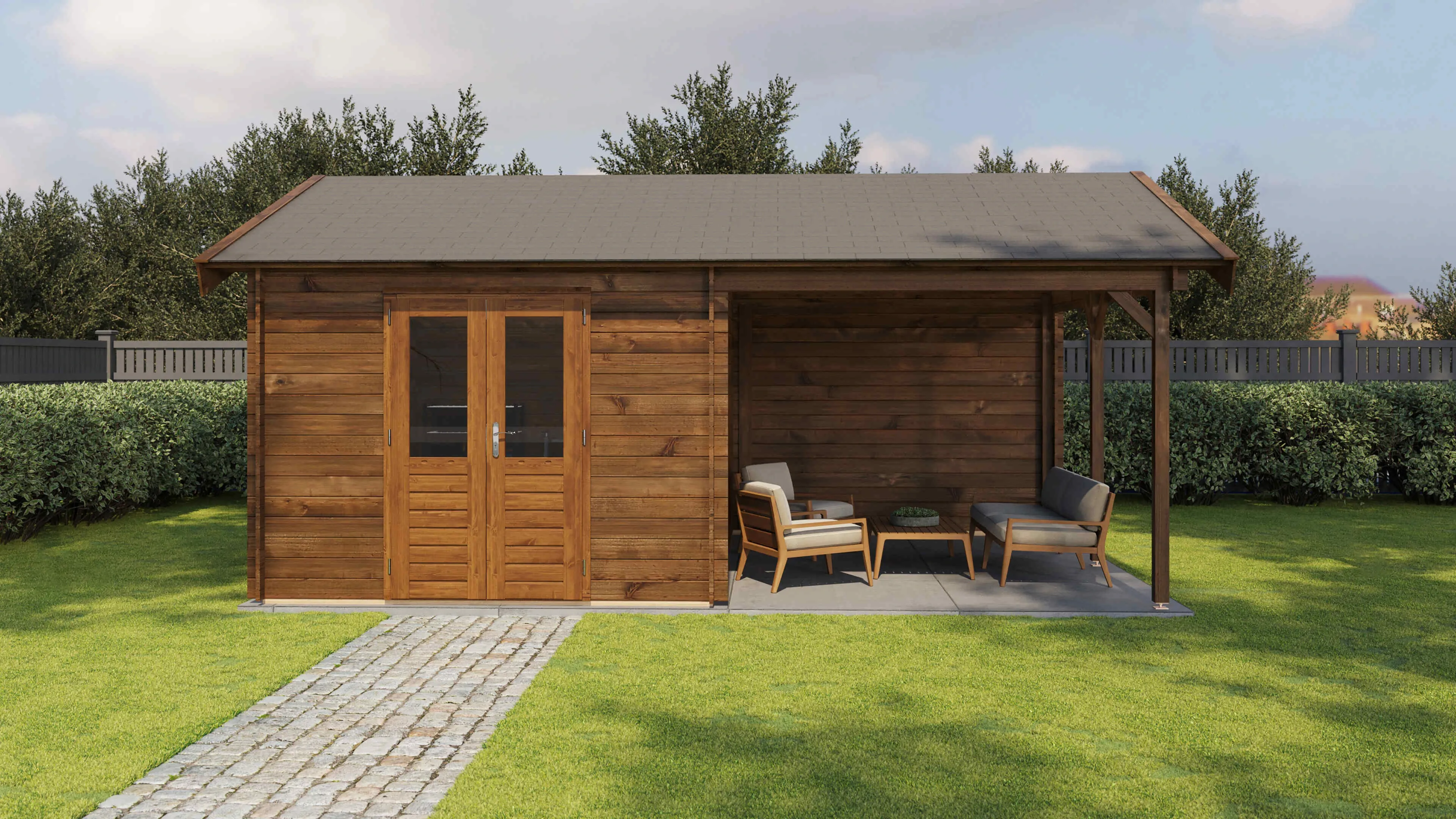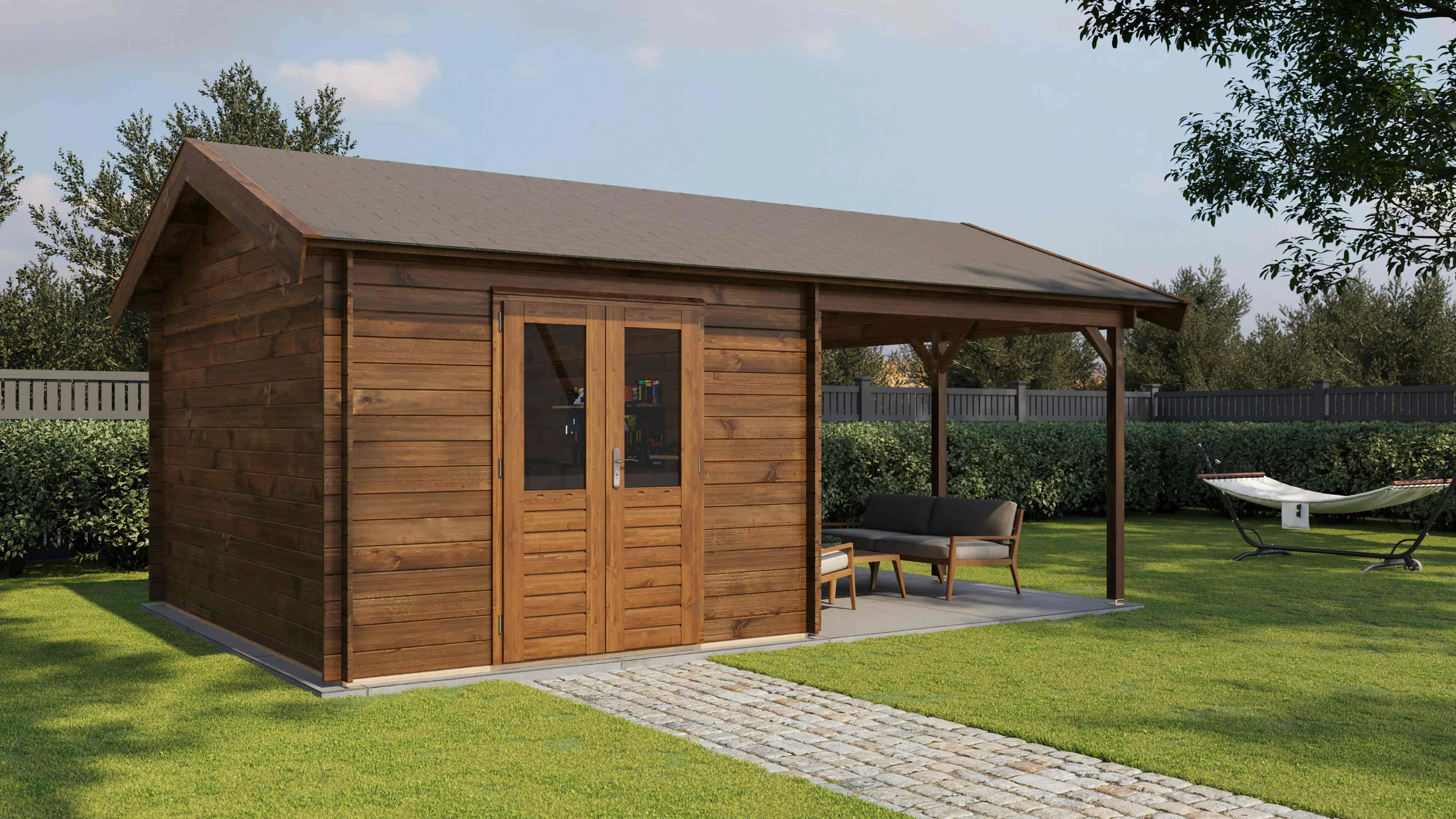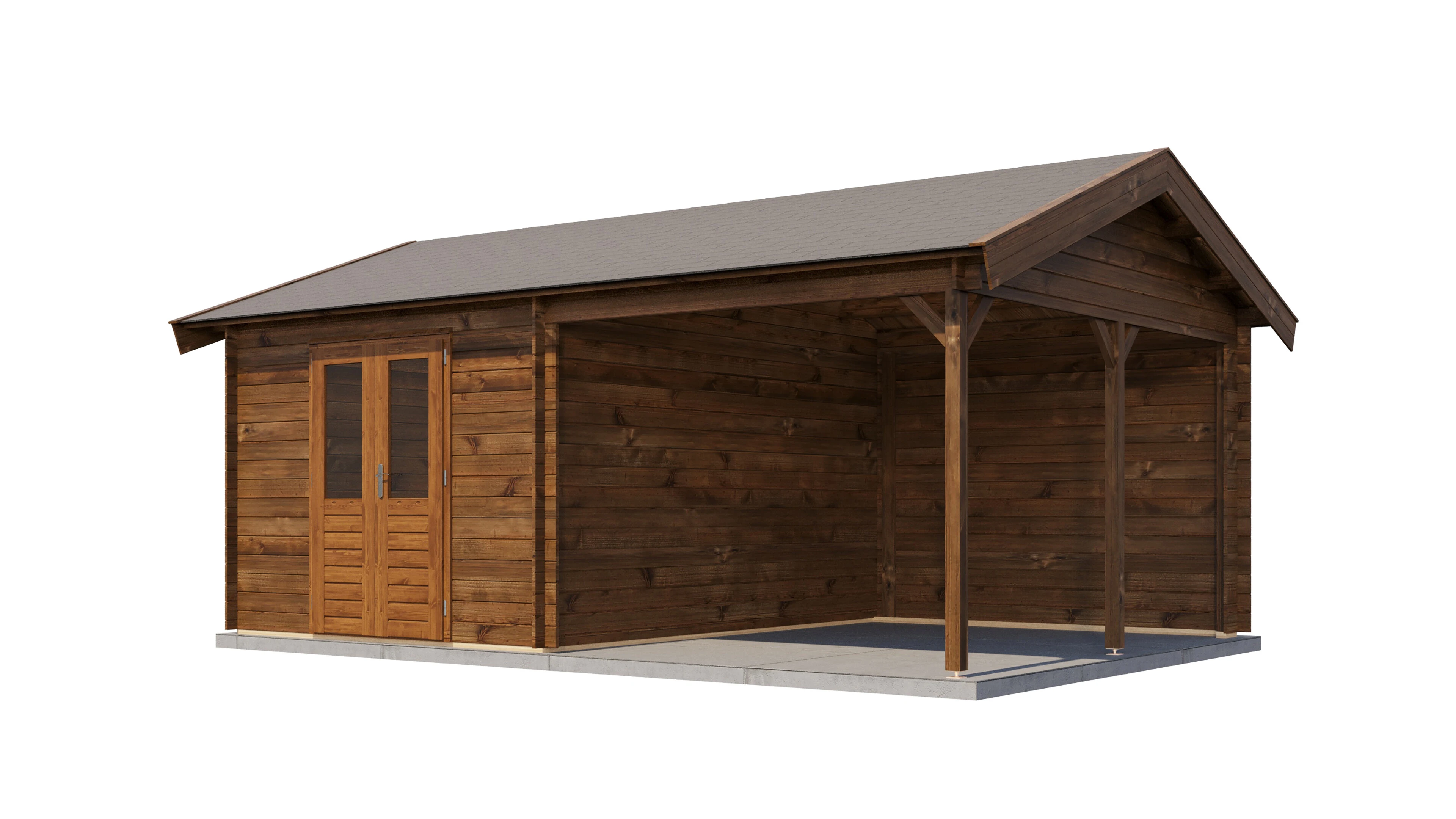 Produktinformationen "Lugarde Select Blockhaus Garmisch-Partenkirchen mit Vordach 300x400cm + 300cm - Kesseldruck Braun"