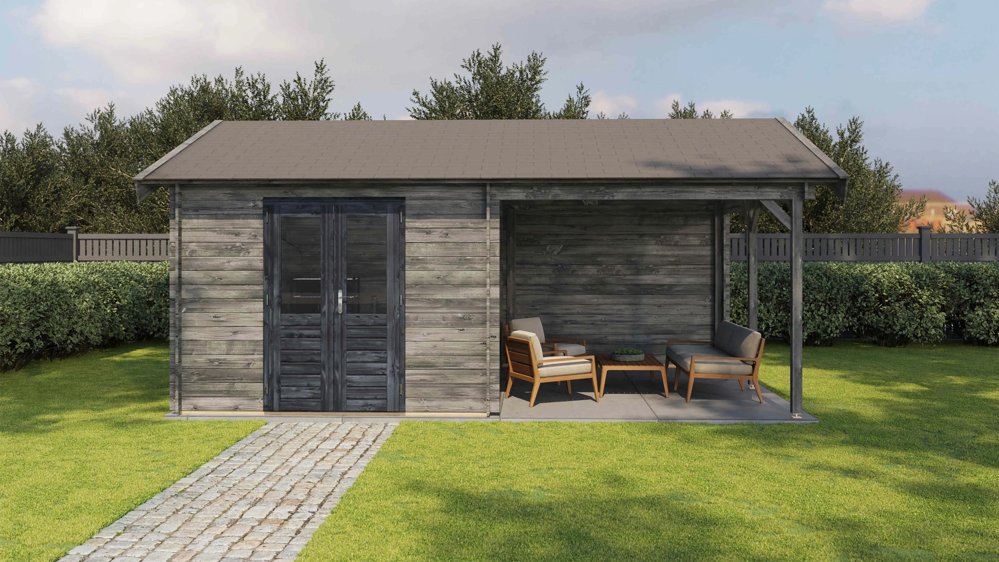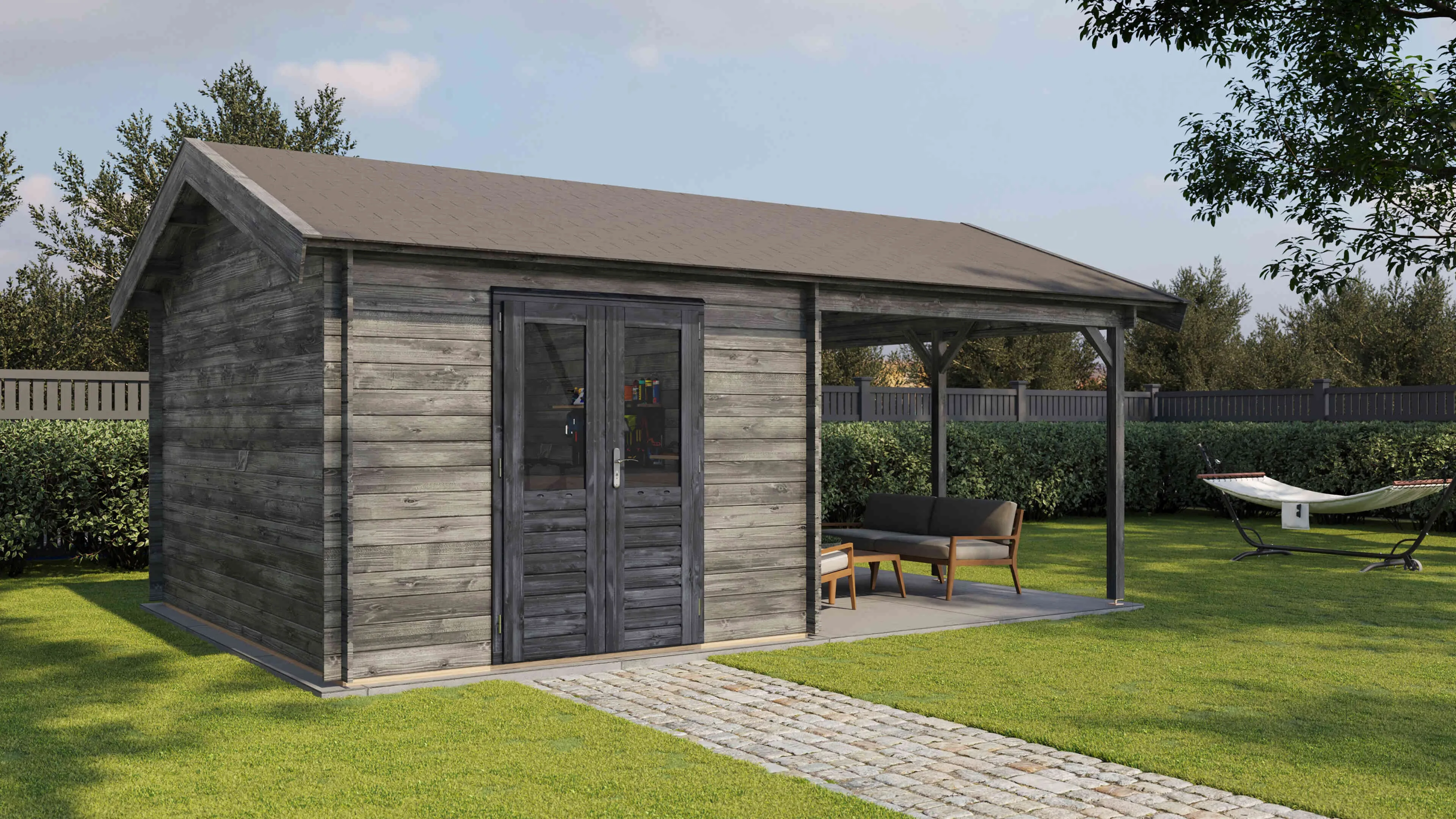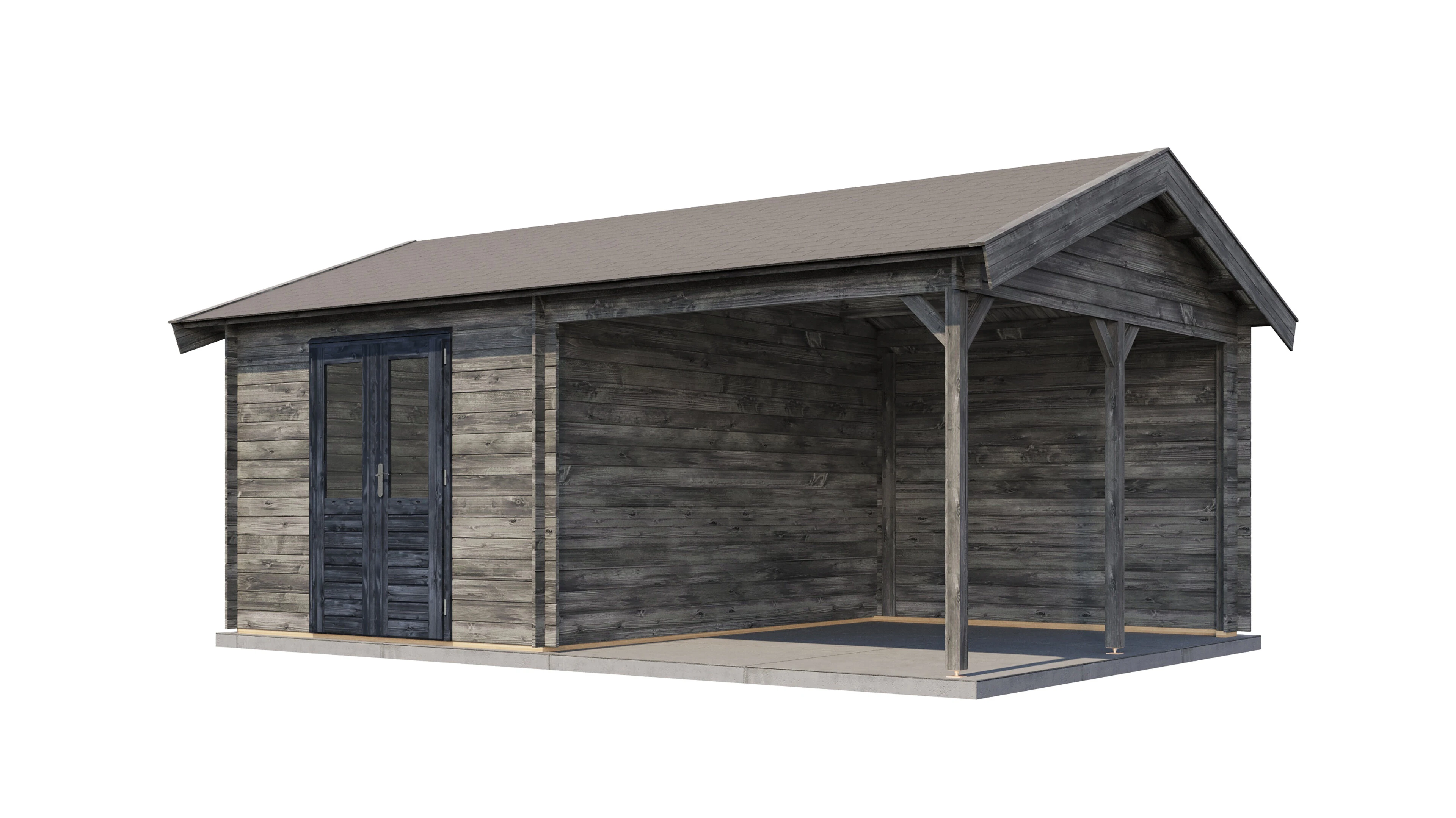 Produktinformationen "Lugarde Select Blockhaus Garmisch-Partenkirchen mit Vordach 300x400cm + 300cm - Kesseldruck Grau"