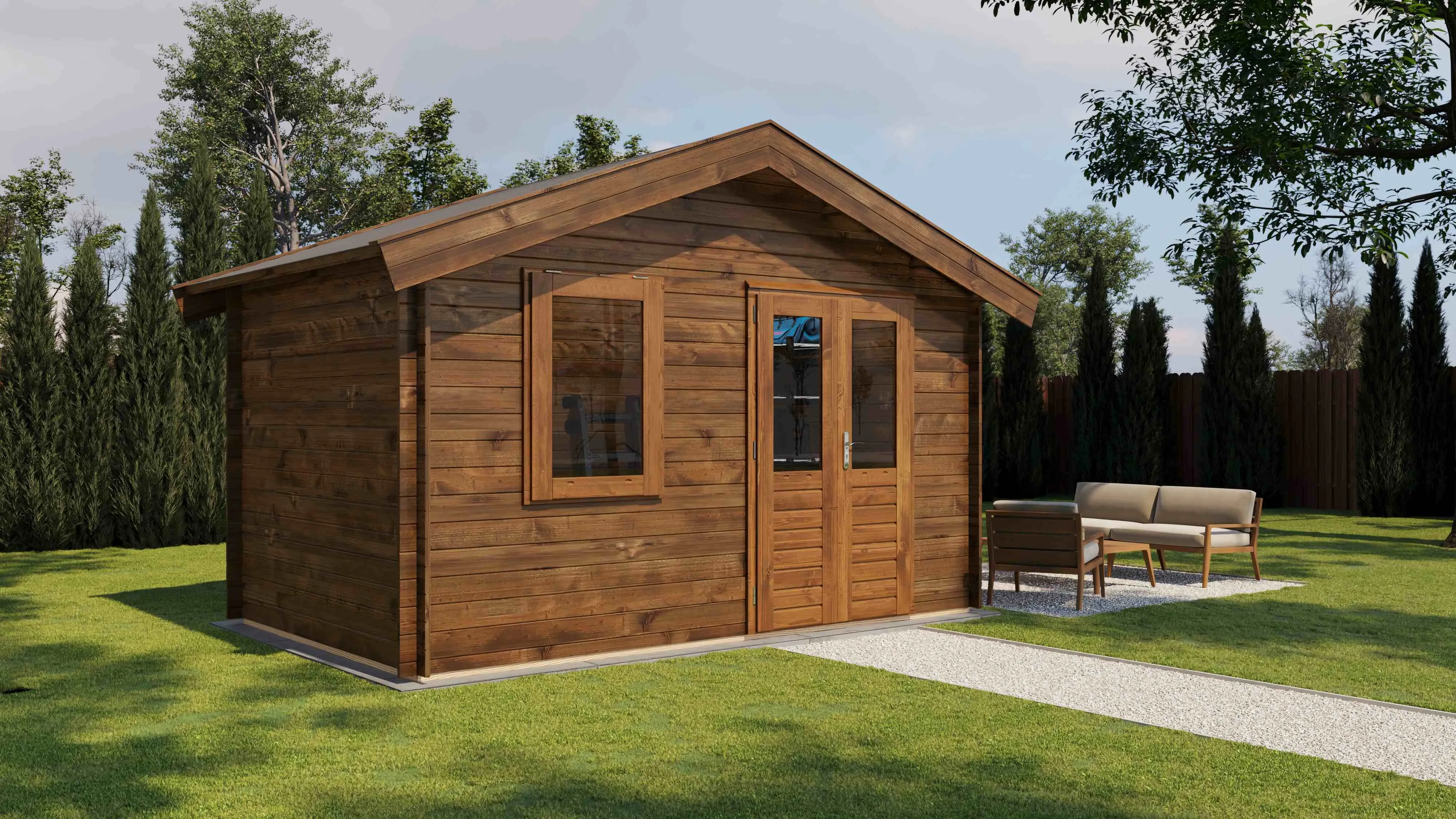 Das Lugarde Select Blockhaus verbindet traditionelle Holzbauweise mit moderner Funktionalität. Mit einer Grundfläche von 400 × 250 cm bietet es vielseitige Nutzungsmöglichkeiten für Ihren Garten.