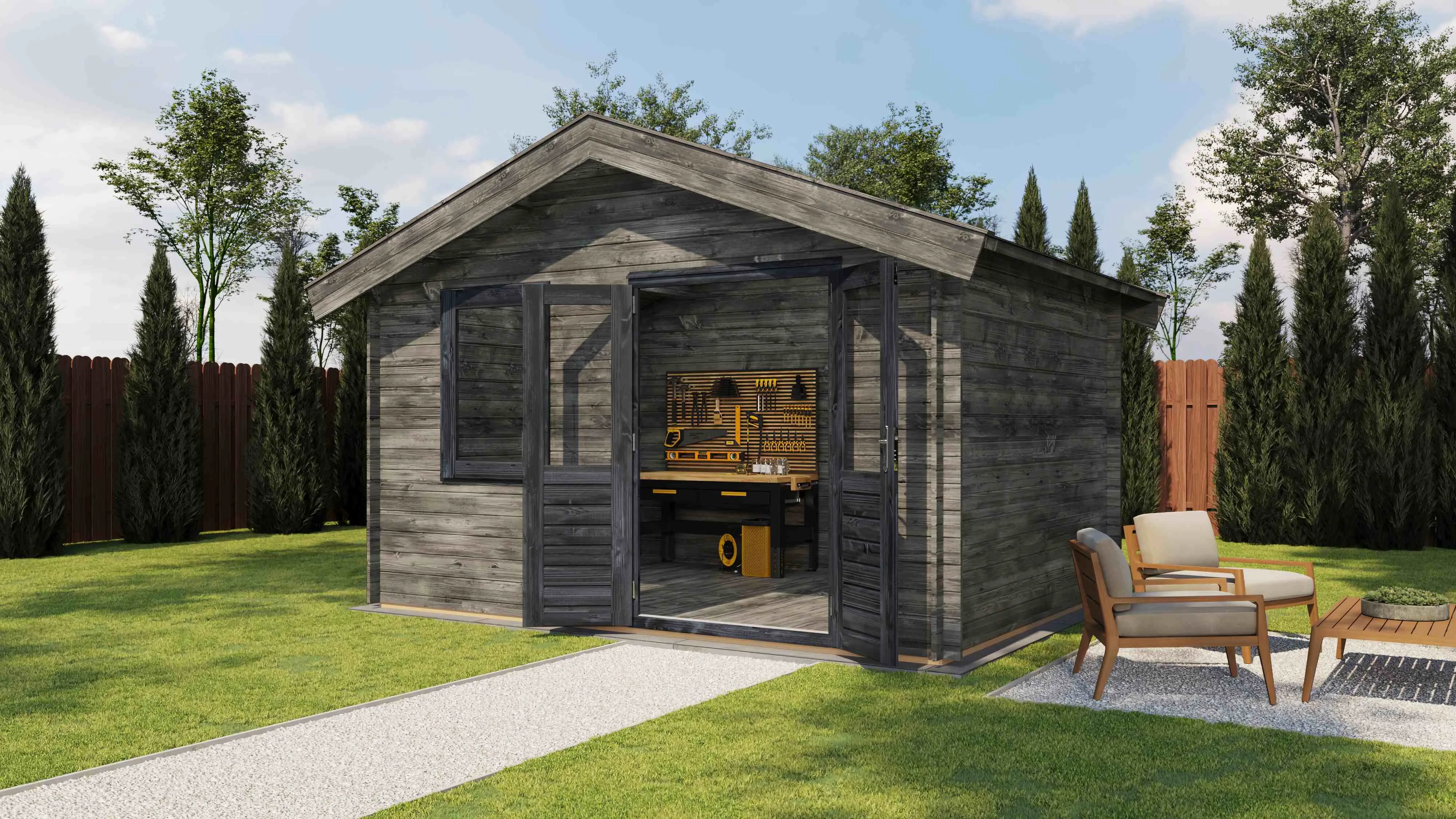 Das Lugarde Select Blockhaus verbindet traditionelle Holzbauweise mit moderner Funktionalität. Mit einer Grundfläche von 400 × 300 cm bietet es vielseitige Nutzungsmöglichkeiten für Ihren Garten.