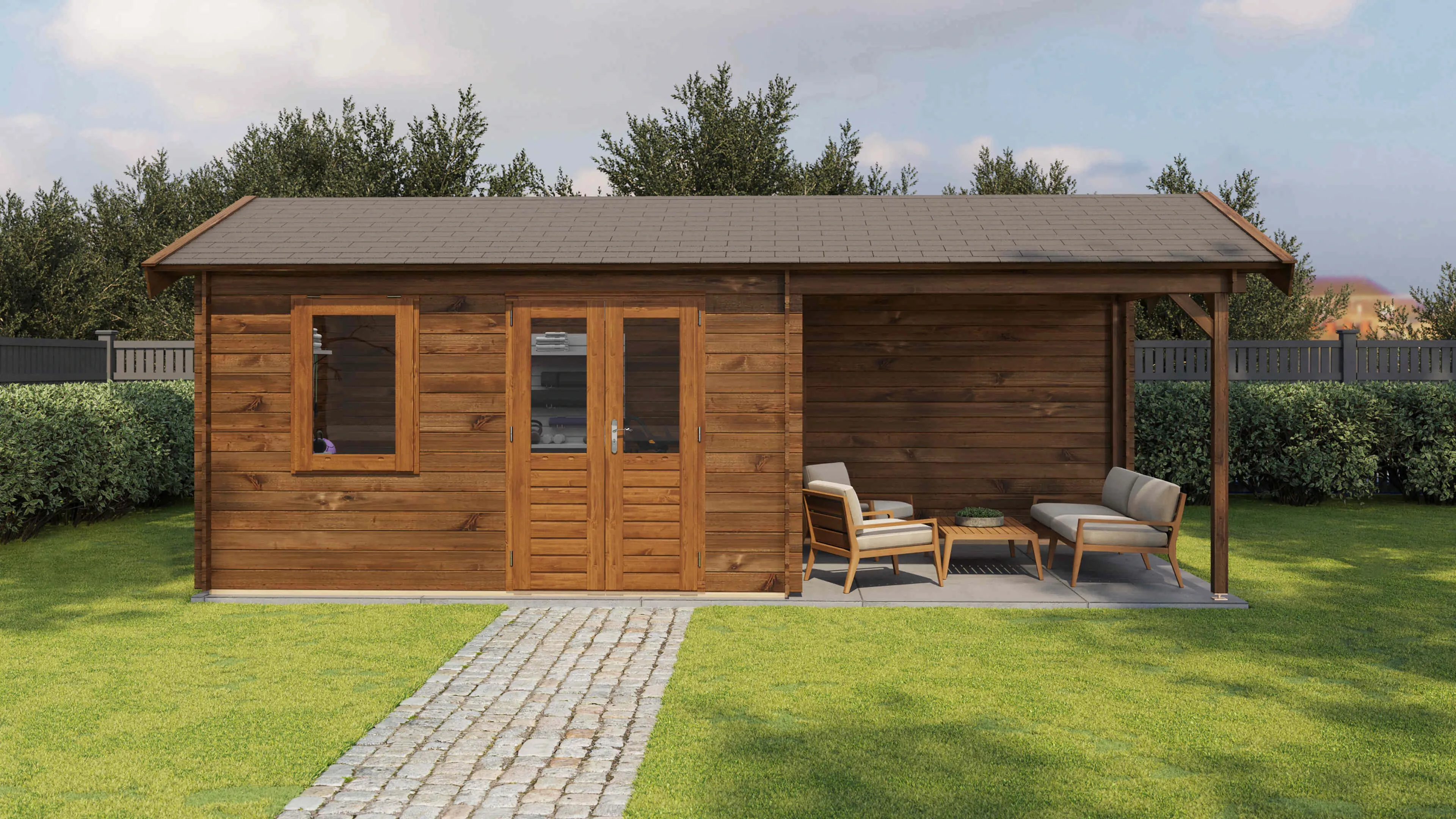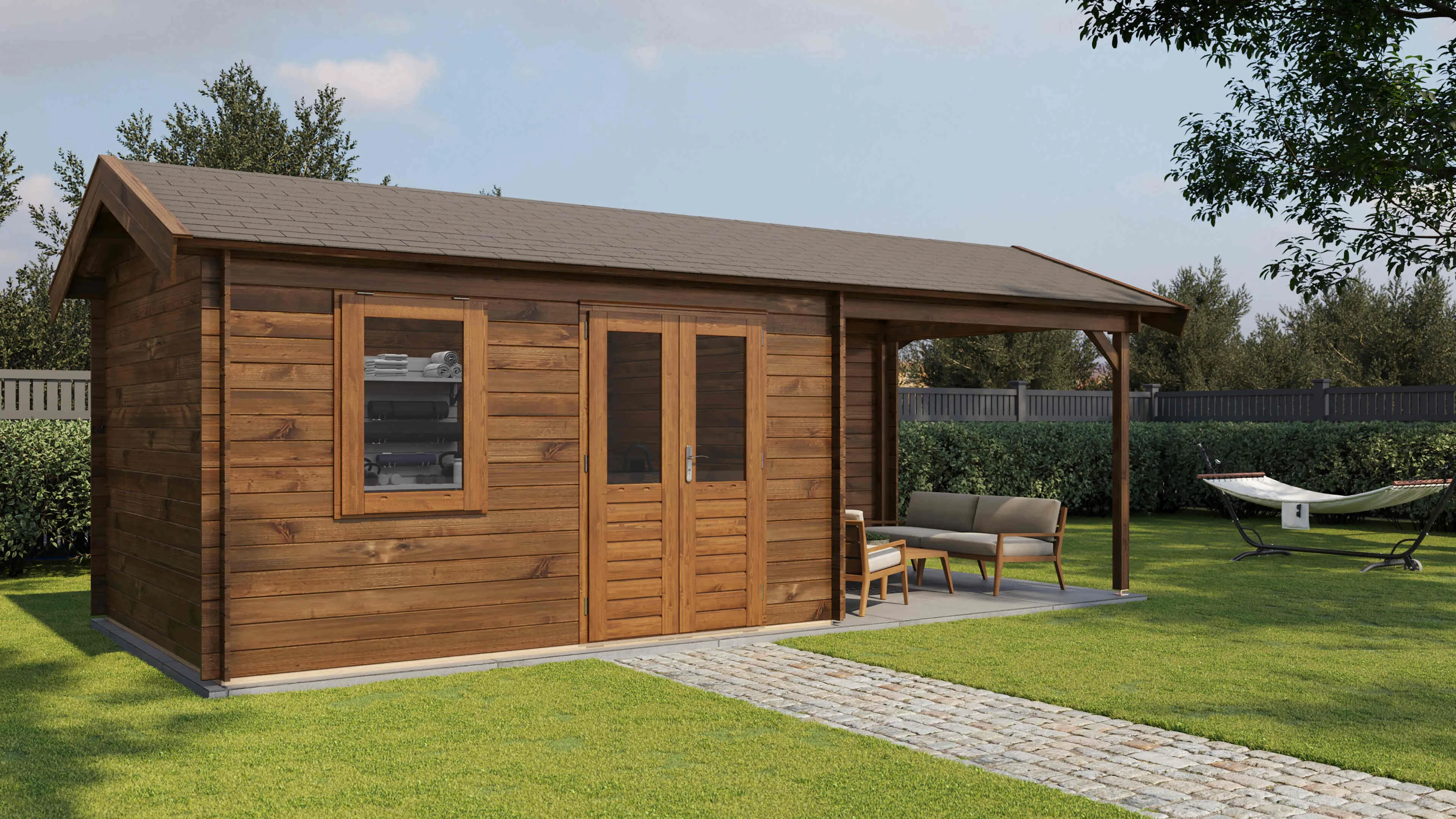 Produktinformationen "Lugarde Select Blockhaus Gotha mit Vordach 400x300cm + 300cm - Kesseldruck Braun"