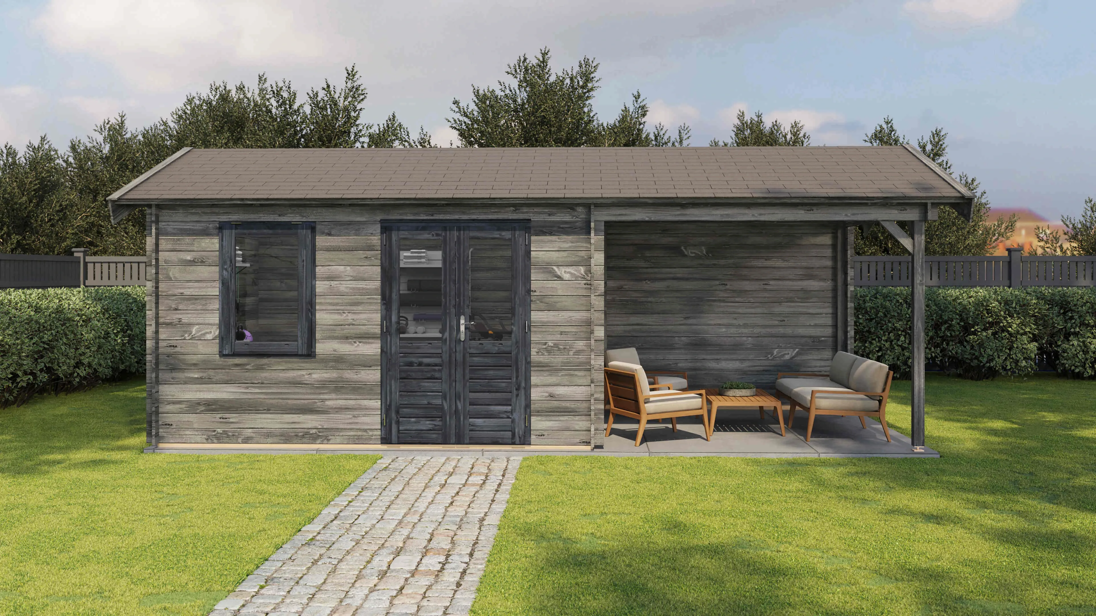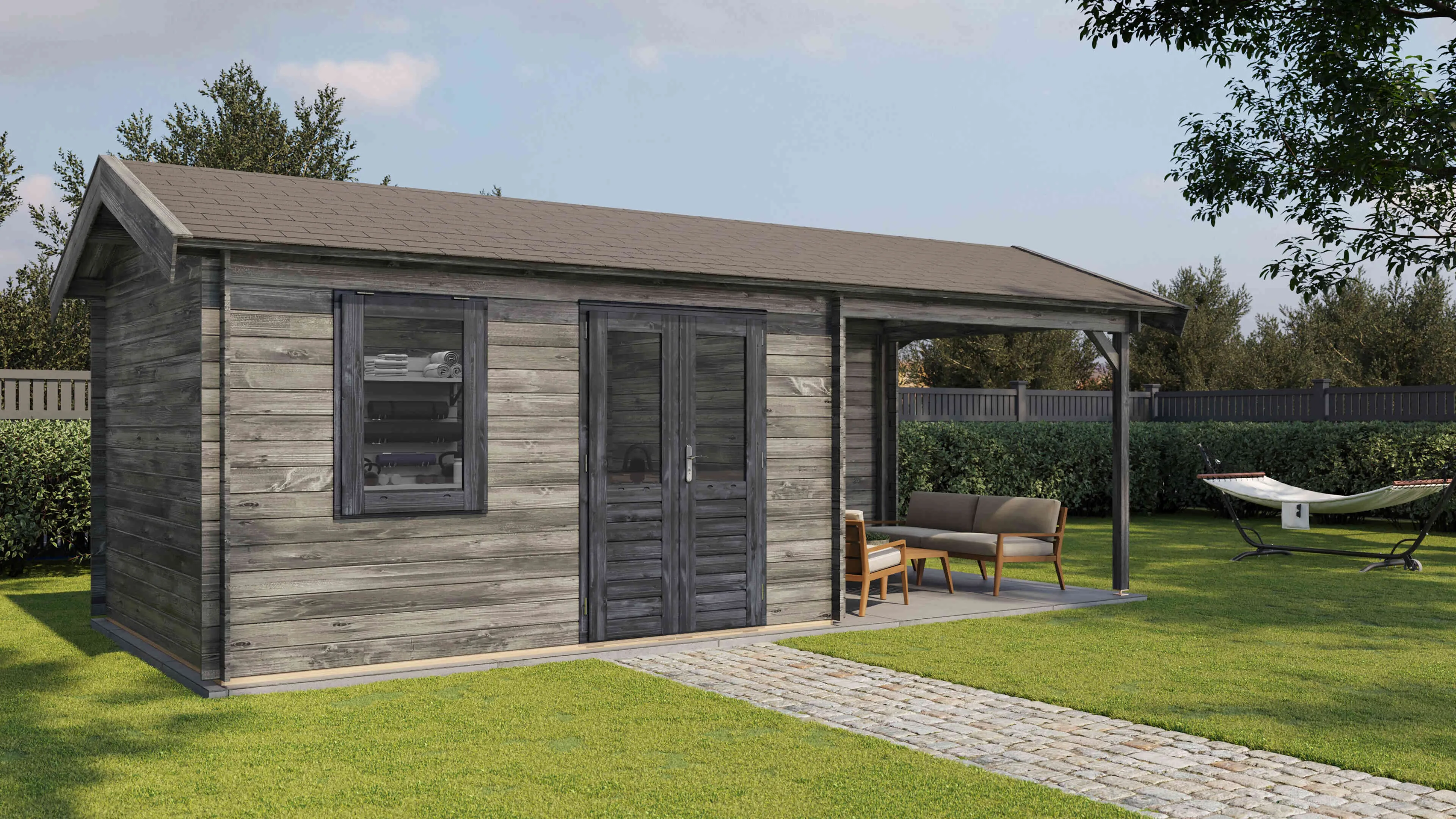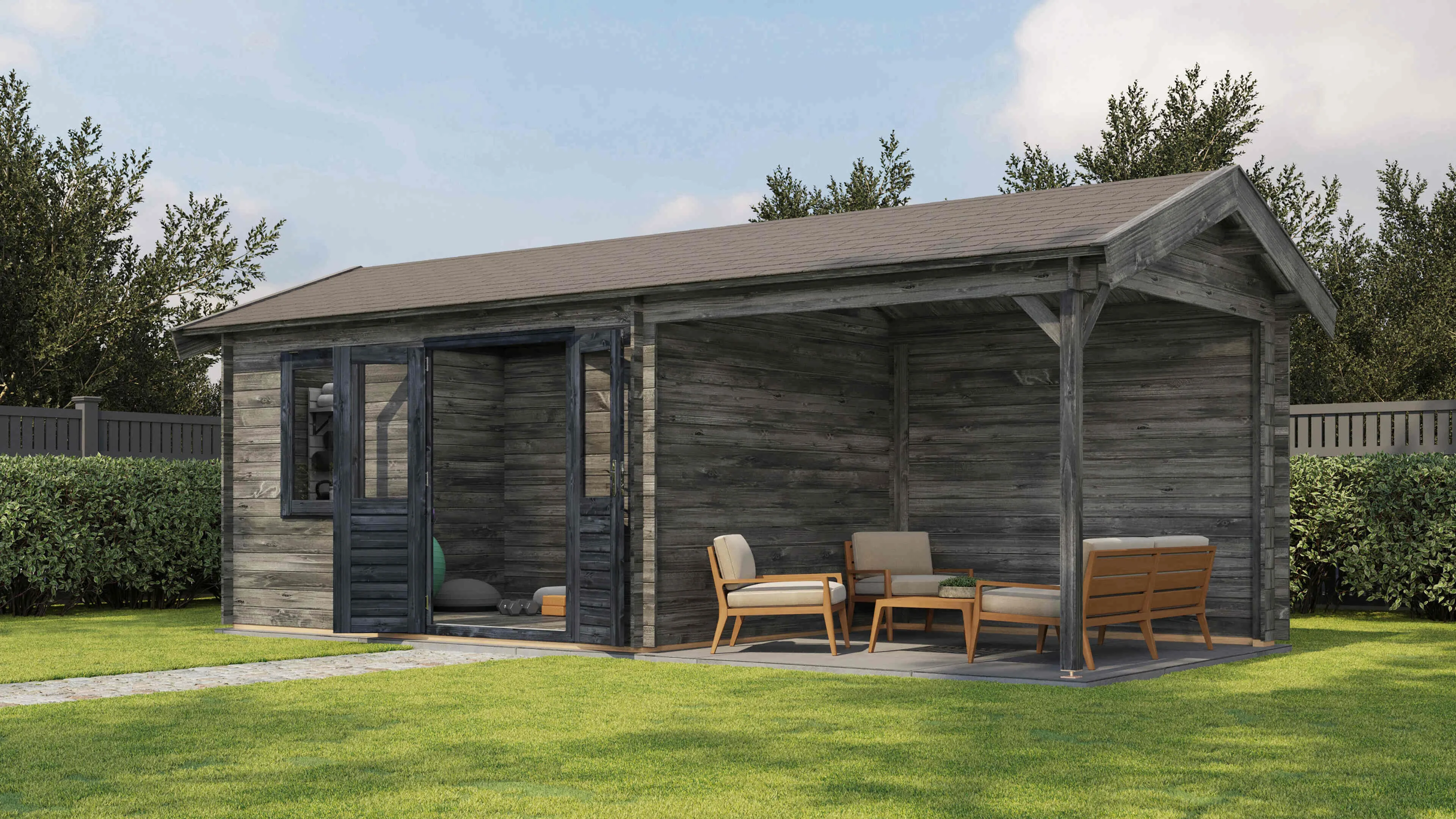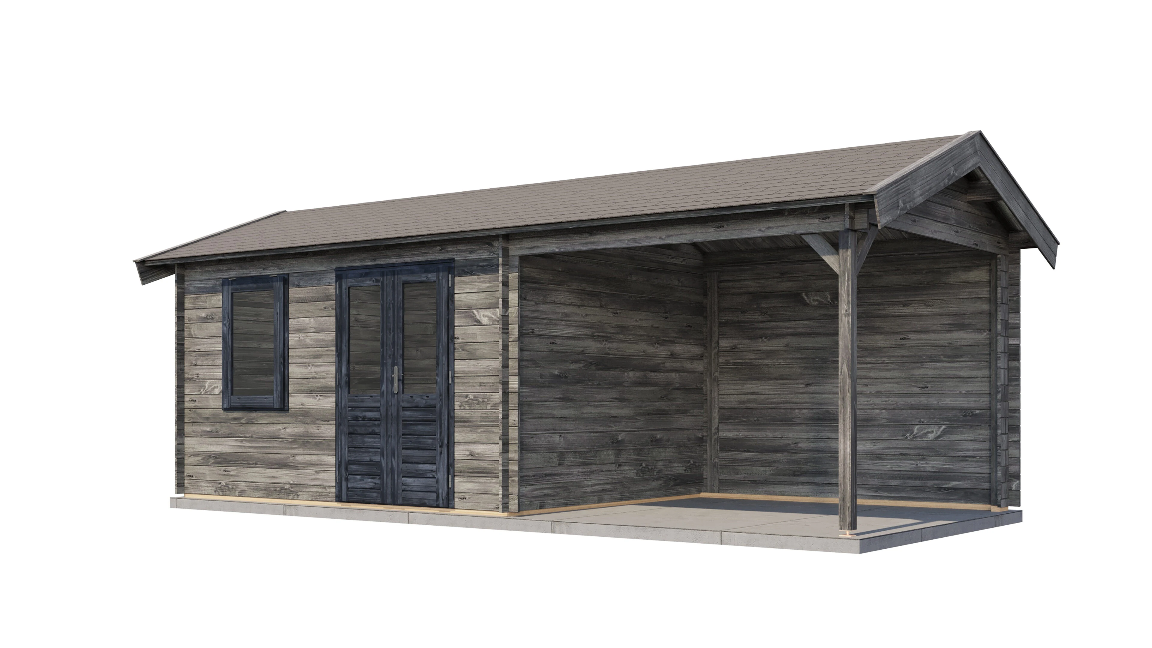 Produktinformationen "Lugarde Select Blockhaus Gotha mit Vordach 400x300cm + 300cm - Kesseldruck Grau"