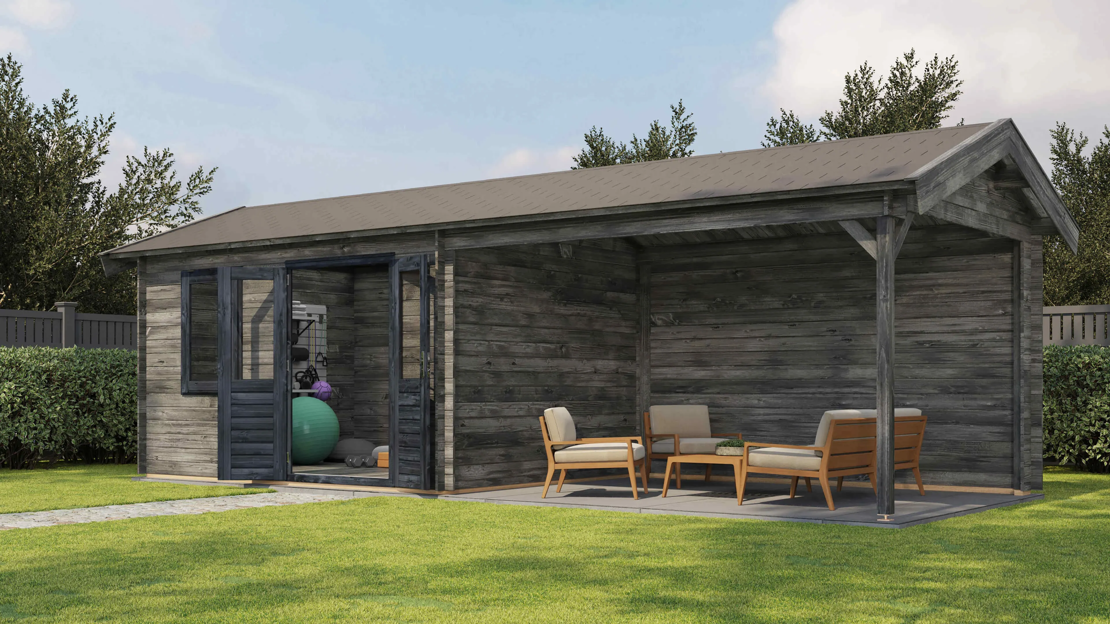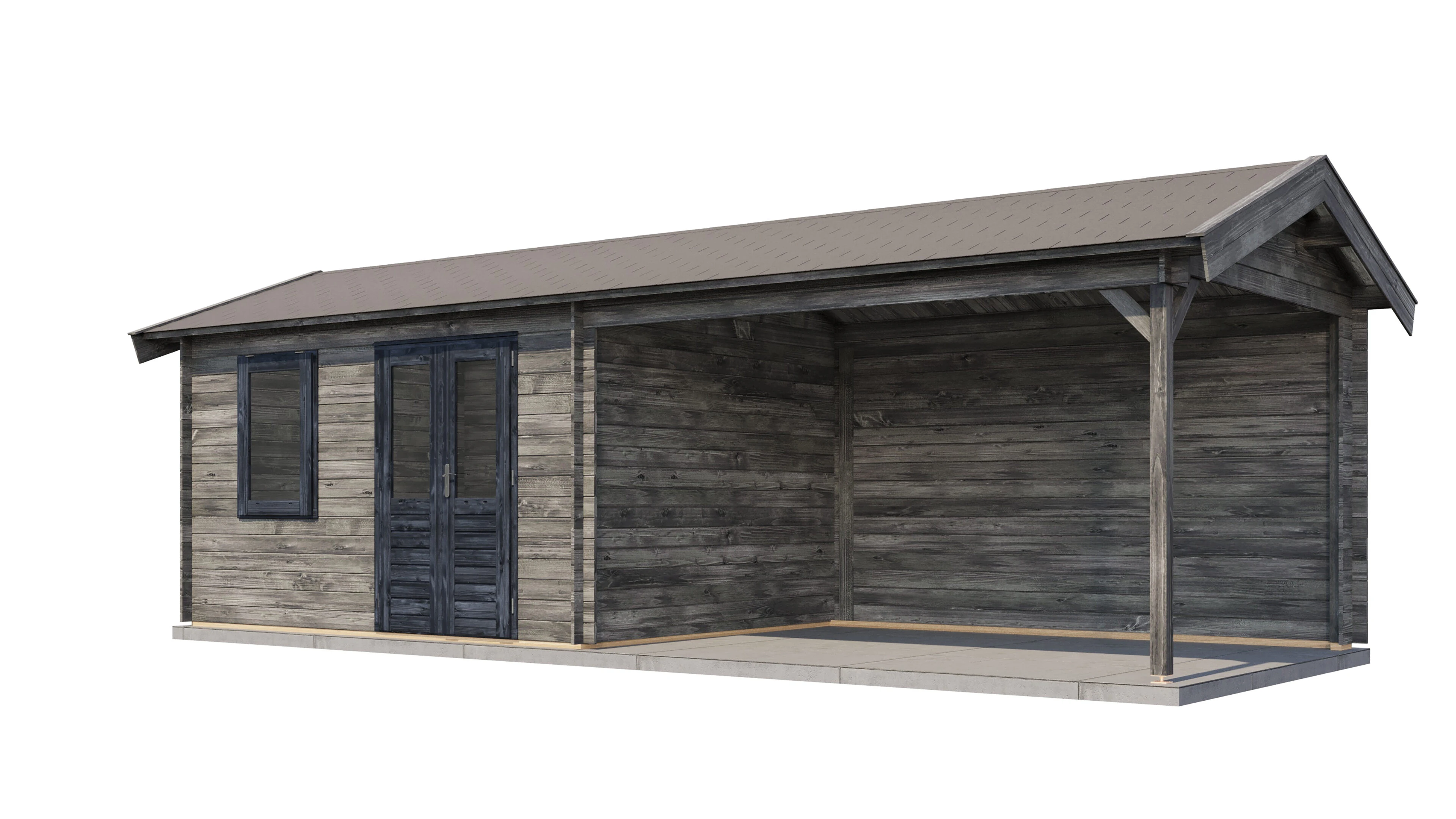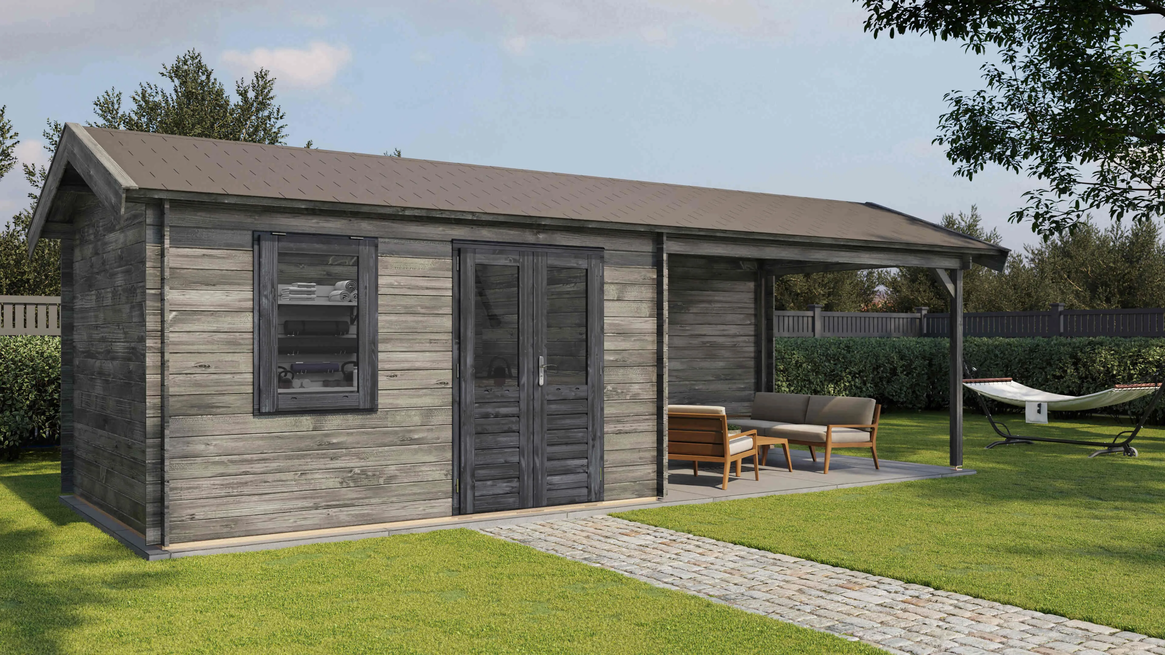 Produktinformationen "Lugarde Select Blockhaus Greifswald mit Vordach 400x300cm + 400cm - Kesseldruck Grau"