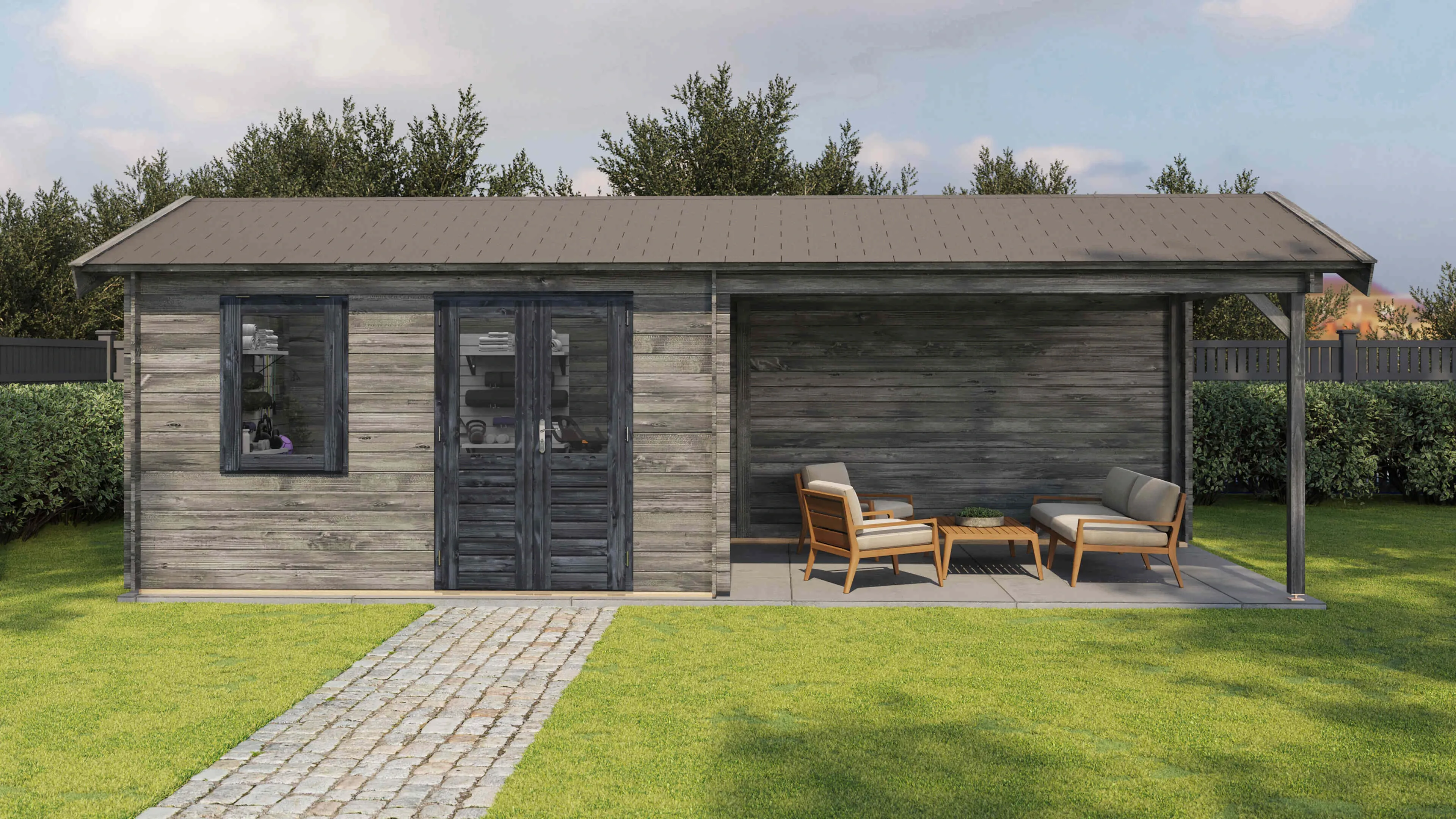 Lugarde Select Blockhaus Greifswald mit Vordach 400x300cm + 400cm - Kesseldruck Grau