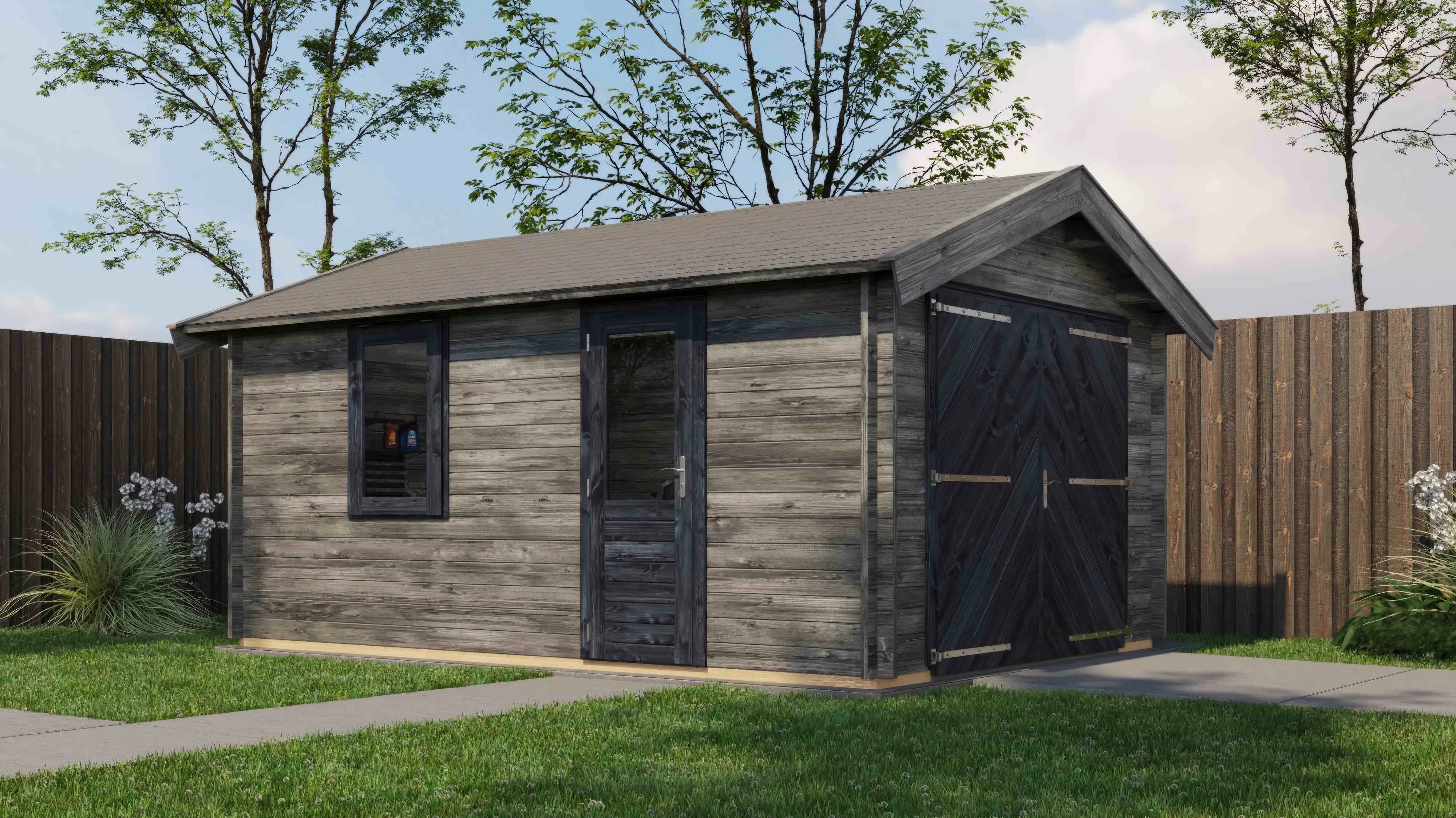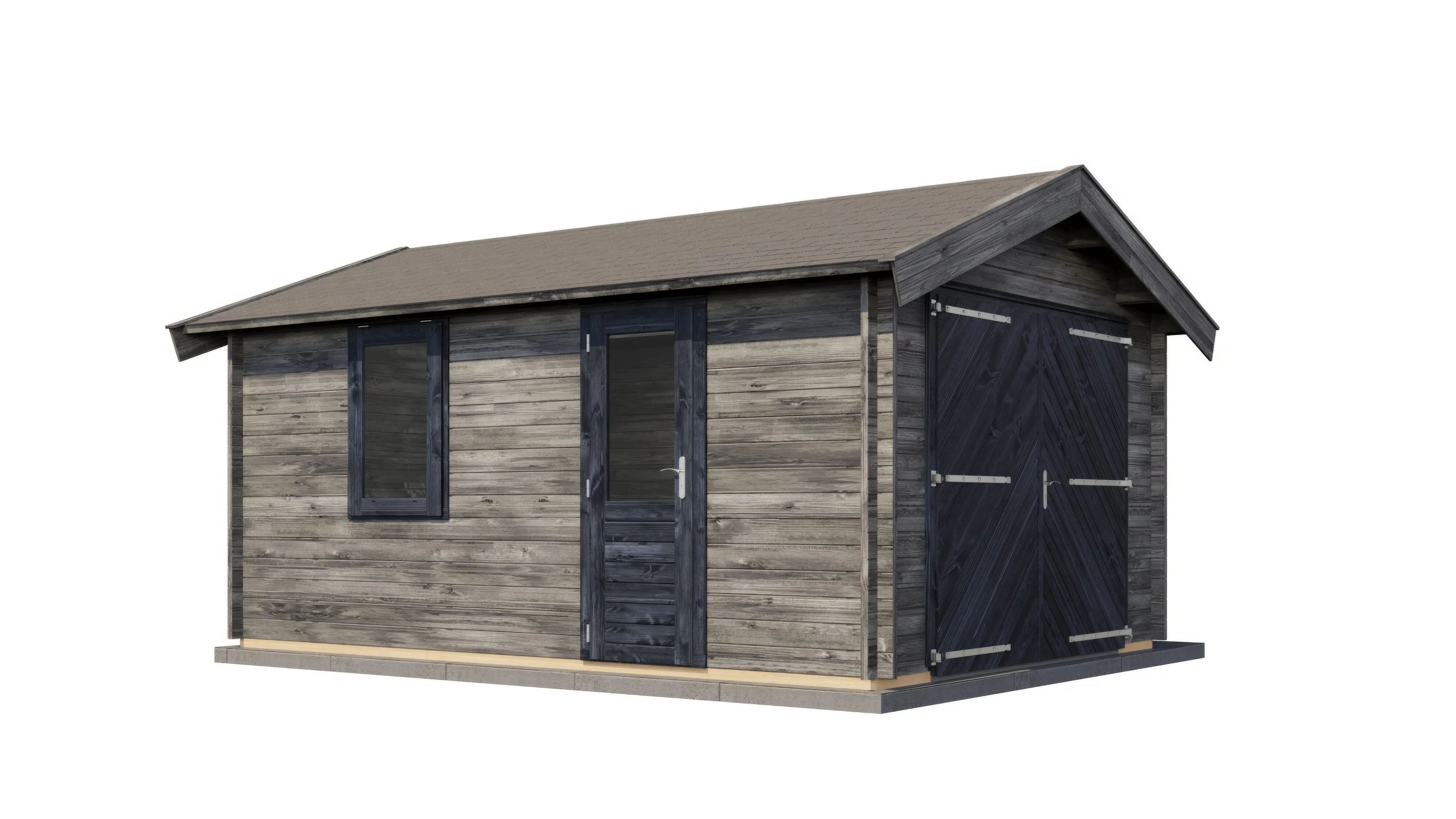 Produktinformationen "Lugarde Select Blockhaus Hamminkeln mit Garagentor 350x500cm - Kesseldruck Grau"