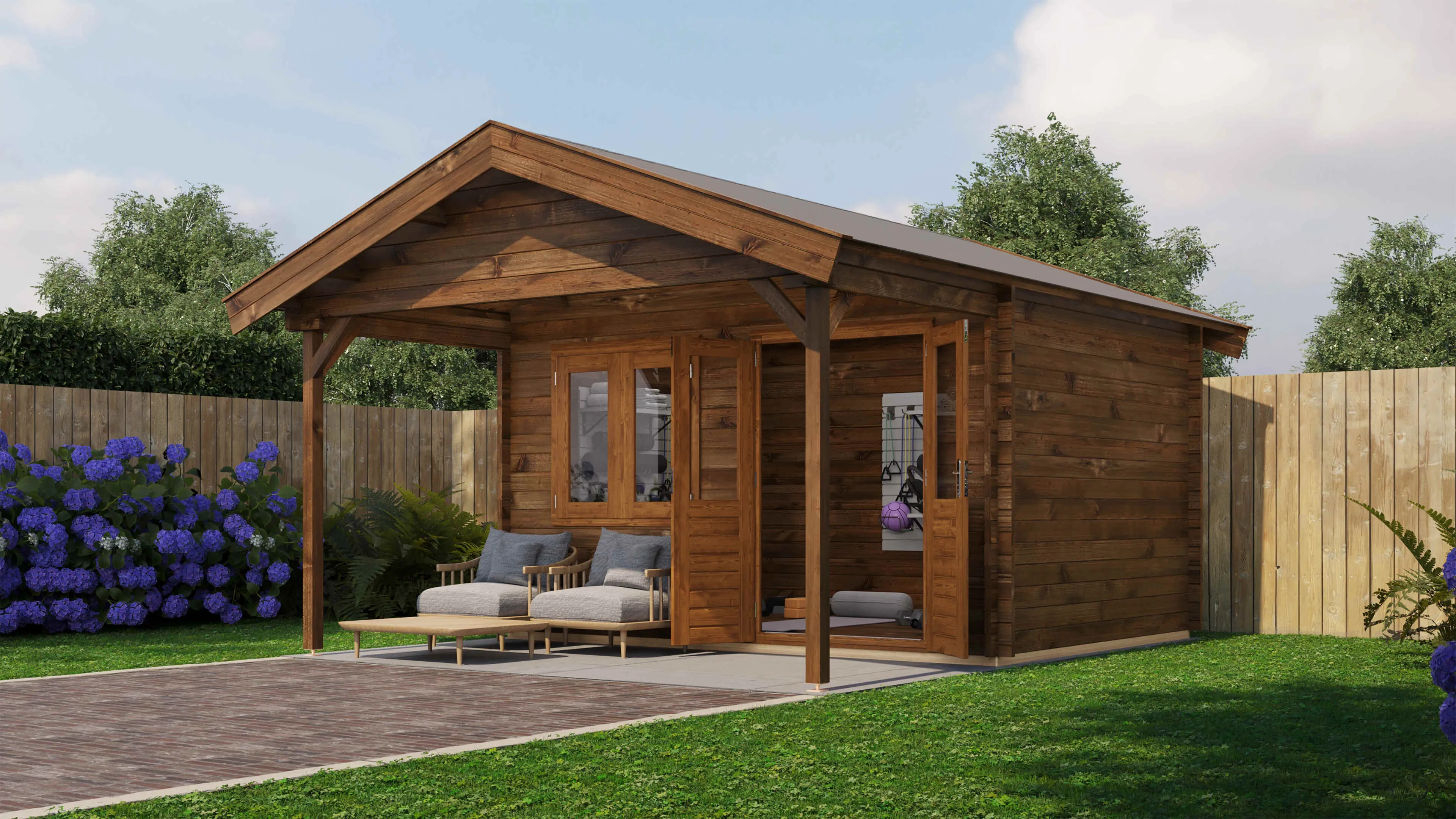 Das Lugarde Select Blockhaus verbindet traditionelle Holzbauweise mit moderner Funktionalität. Mit einer Grundfläche von 400 × 300 cm bietet es vielseitige Nutzungsmöglichkeiten für Ihren Garten.