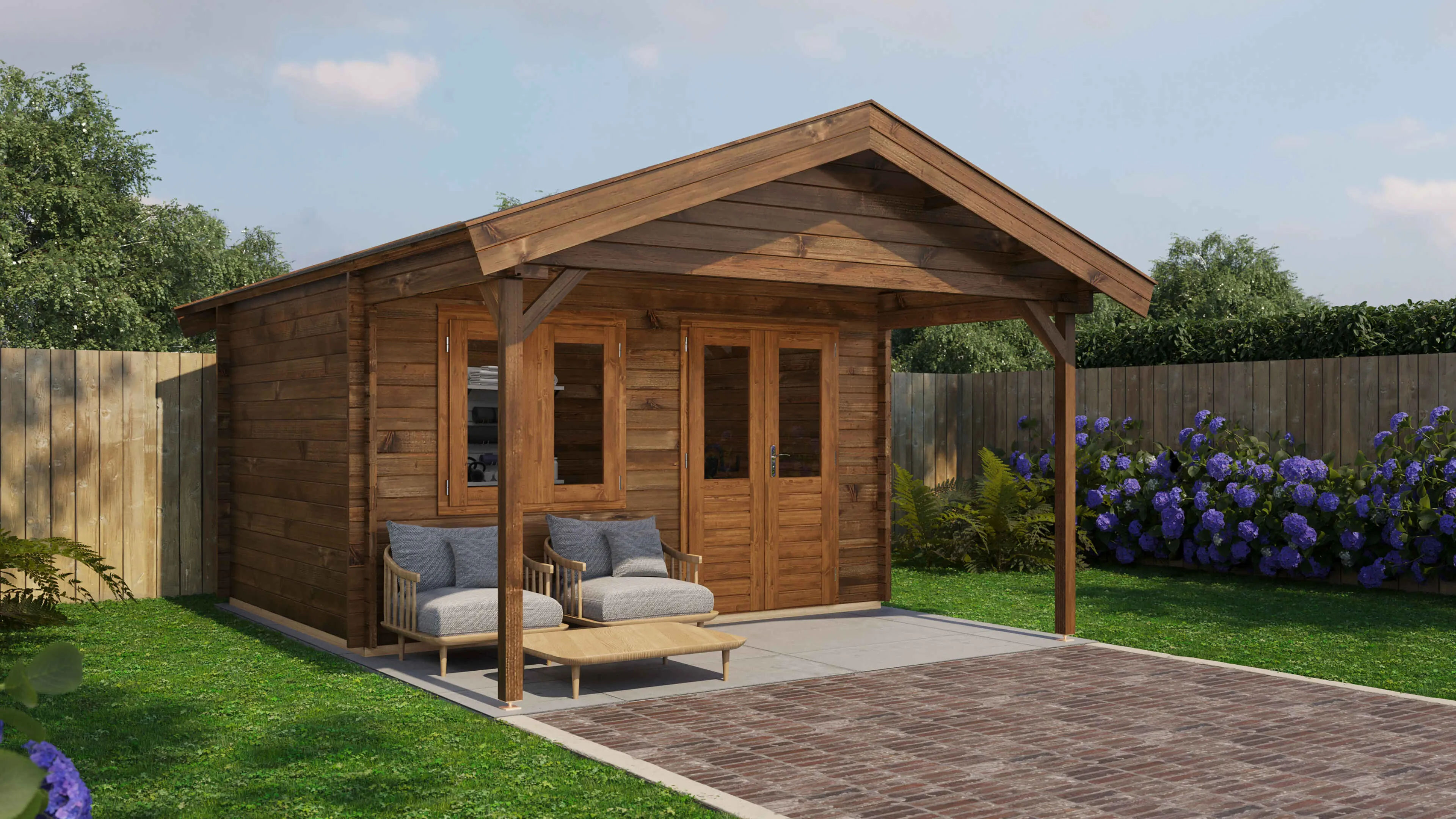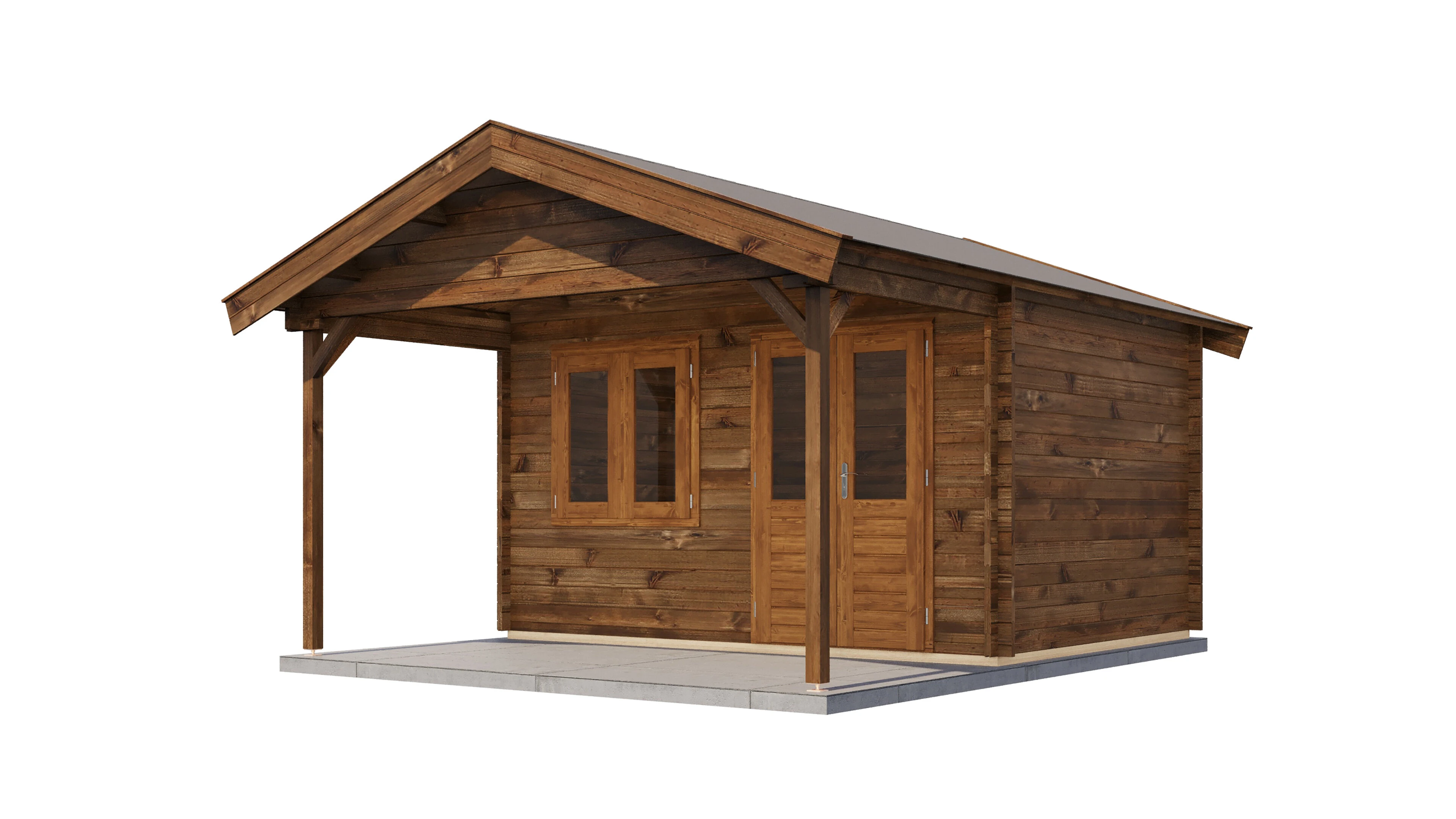 Produktinformationen "Lugarde Select Blockhaus Heilbronn mit Vordach 400x300cm + 200cm - Kesseldruck Braun"
