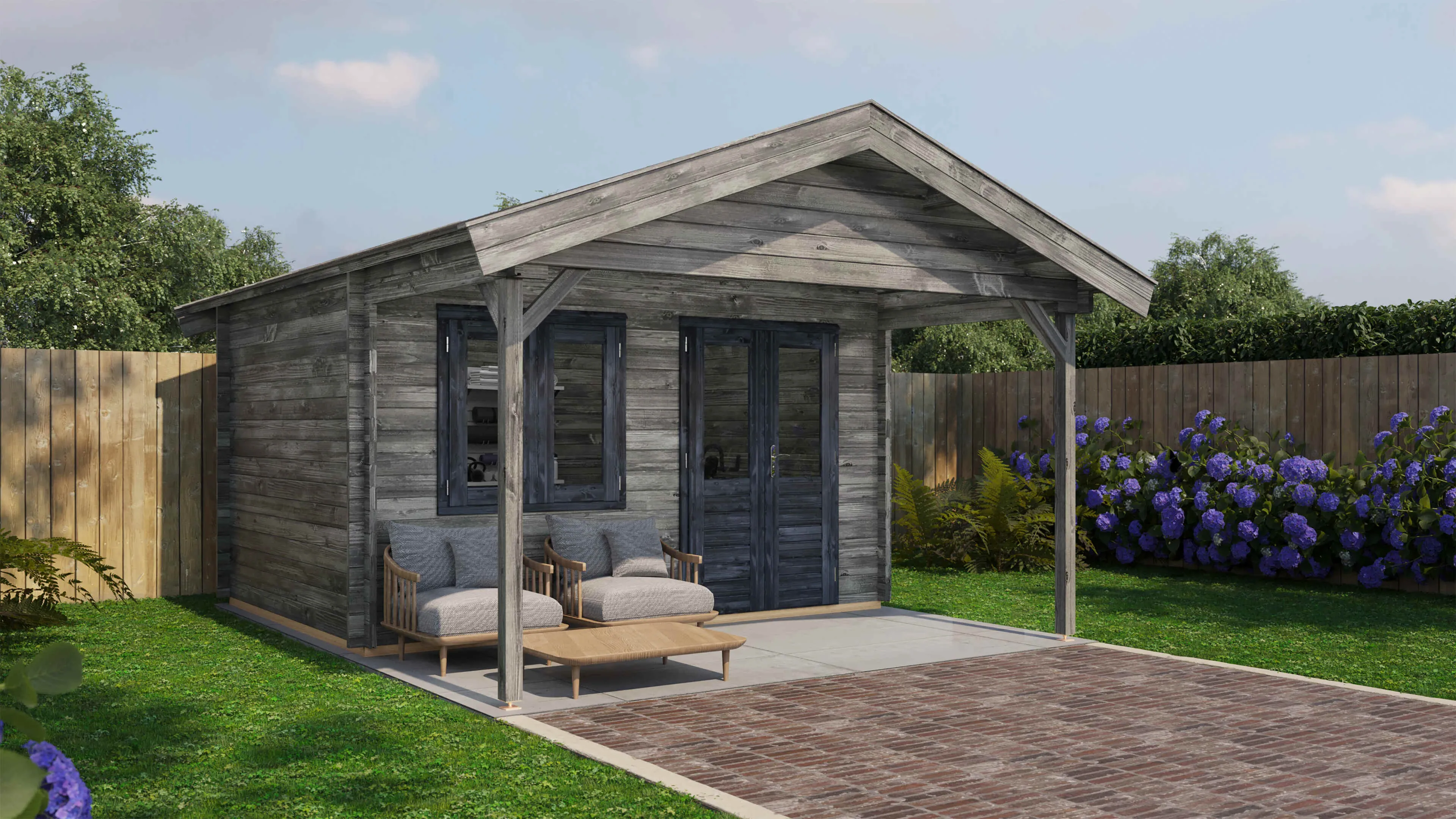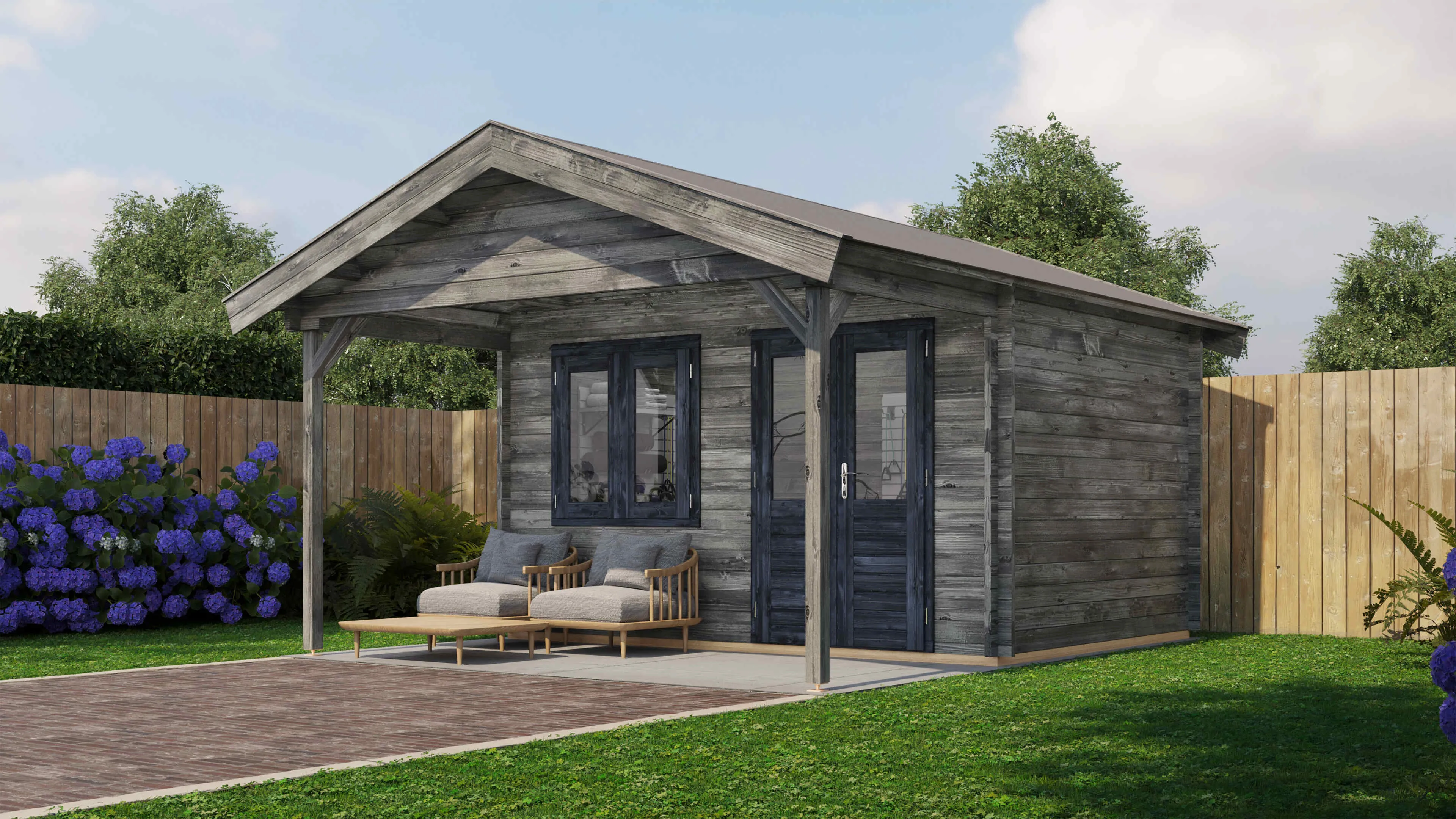 Produktinformationen "Lugarde Select Blockhaus Heilbronn mit Vordach 400x300cm + 200cm - Kesseldruck Grau"