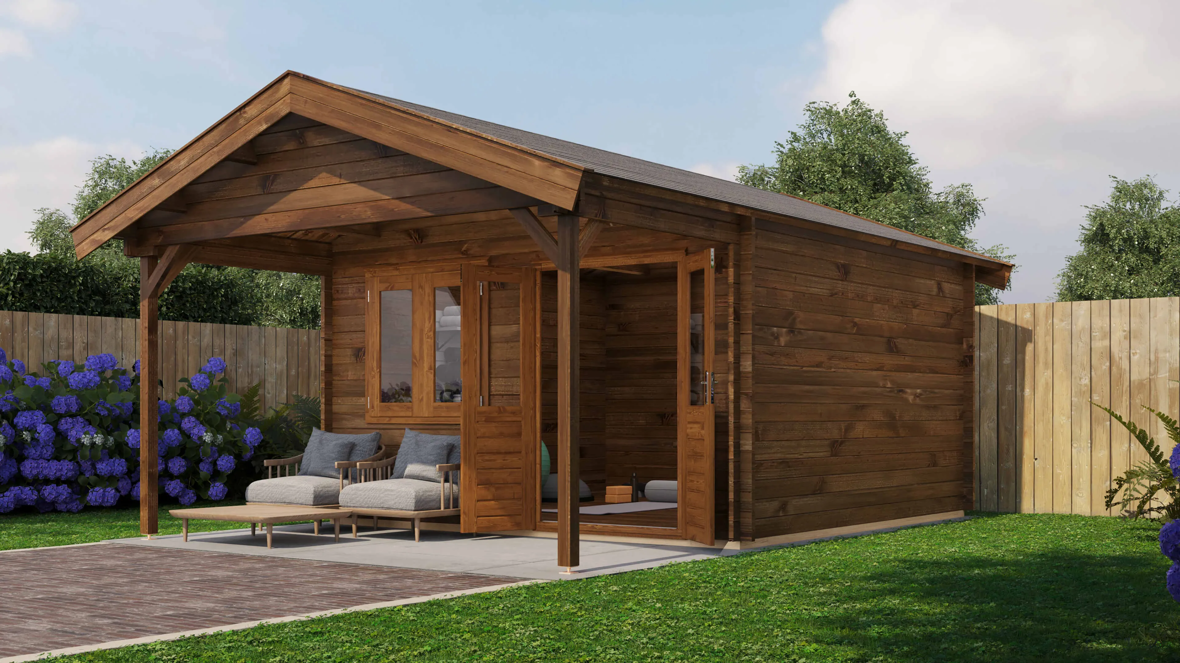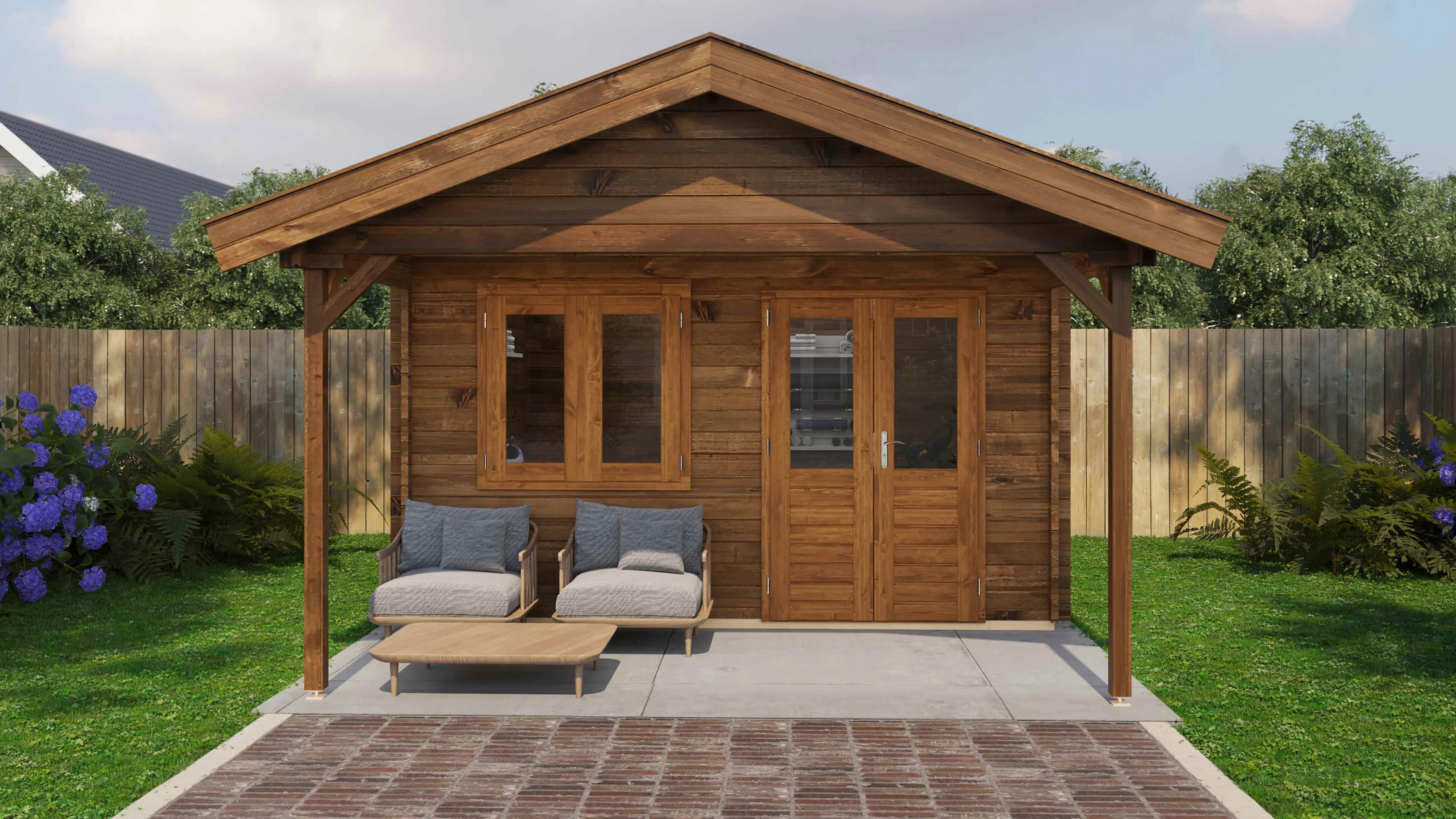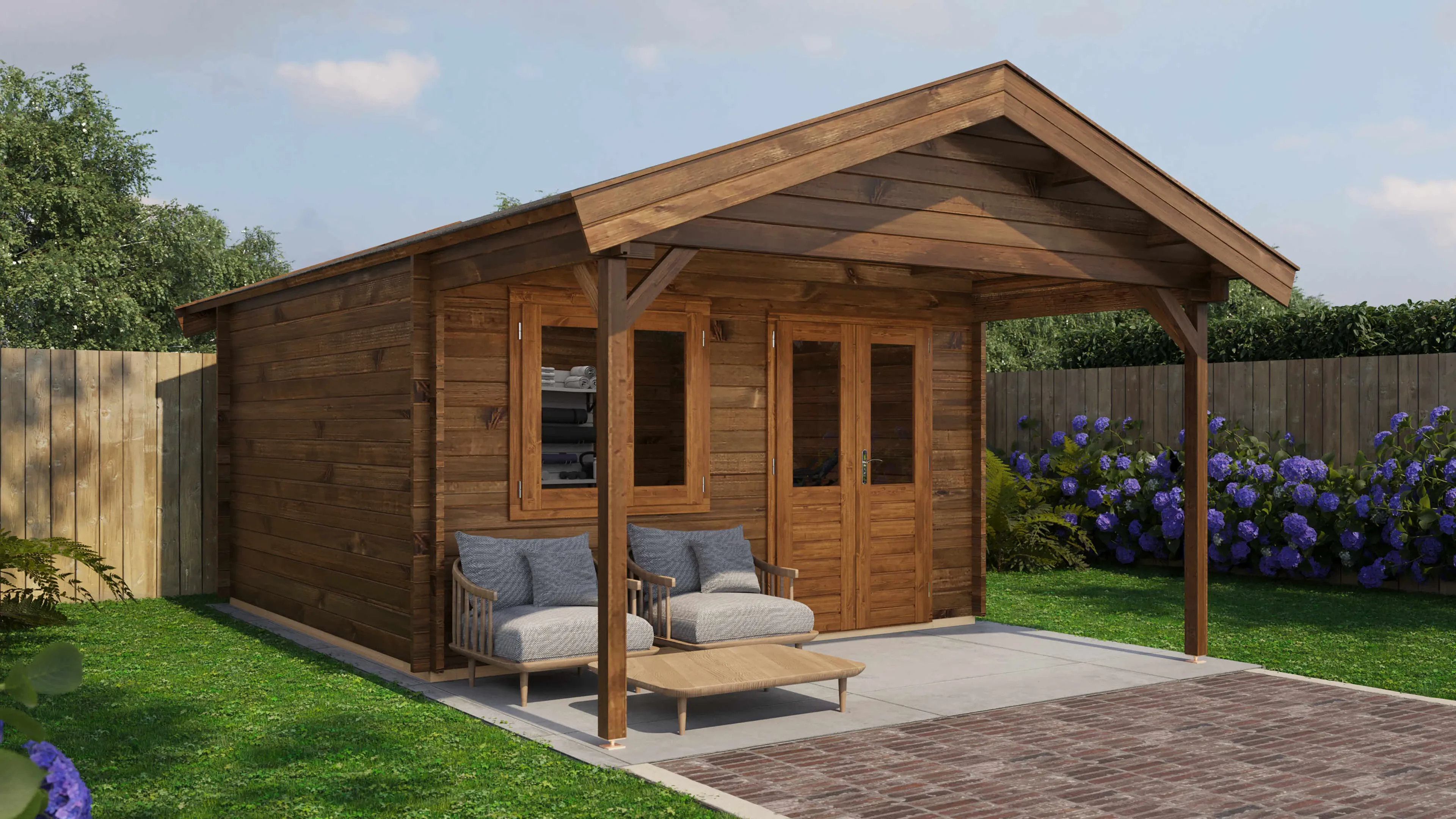 Das Lugarde Select Blockhaus verbindet traditionelle Holzbauweise mit moderner Funktionalität. Mit einer Grundfläche von 400 × 400 cm bietet es vielseitige Nutzungsmöglichkeiten für Ihren Garten.