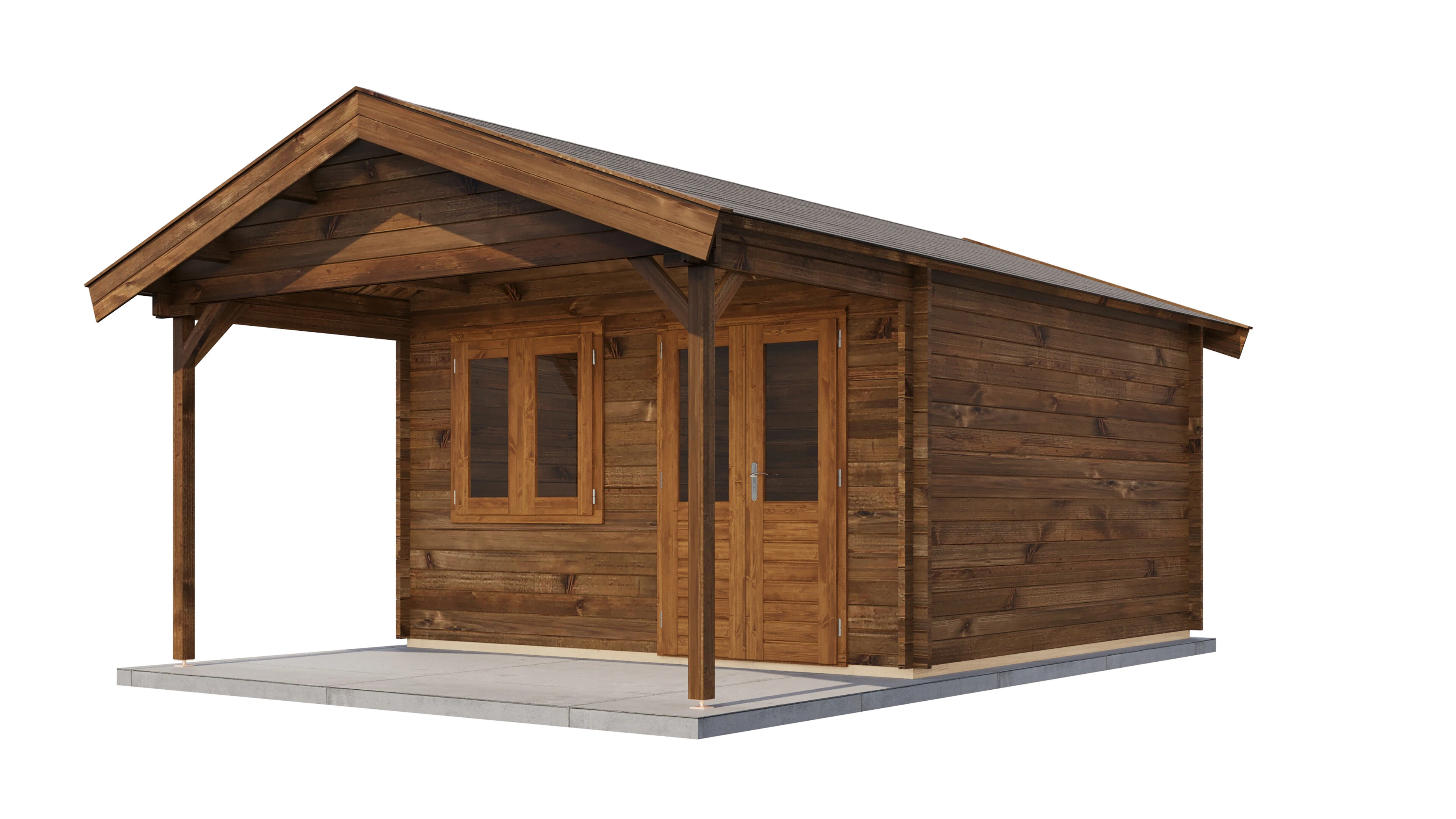 Produktinformationen "Lugarde Select Blockhaus Herford mit Vordach 400x400cm + 200cm - Kesseldruck Braun"