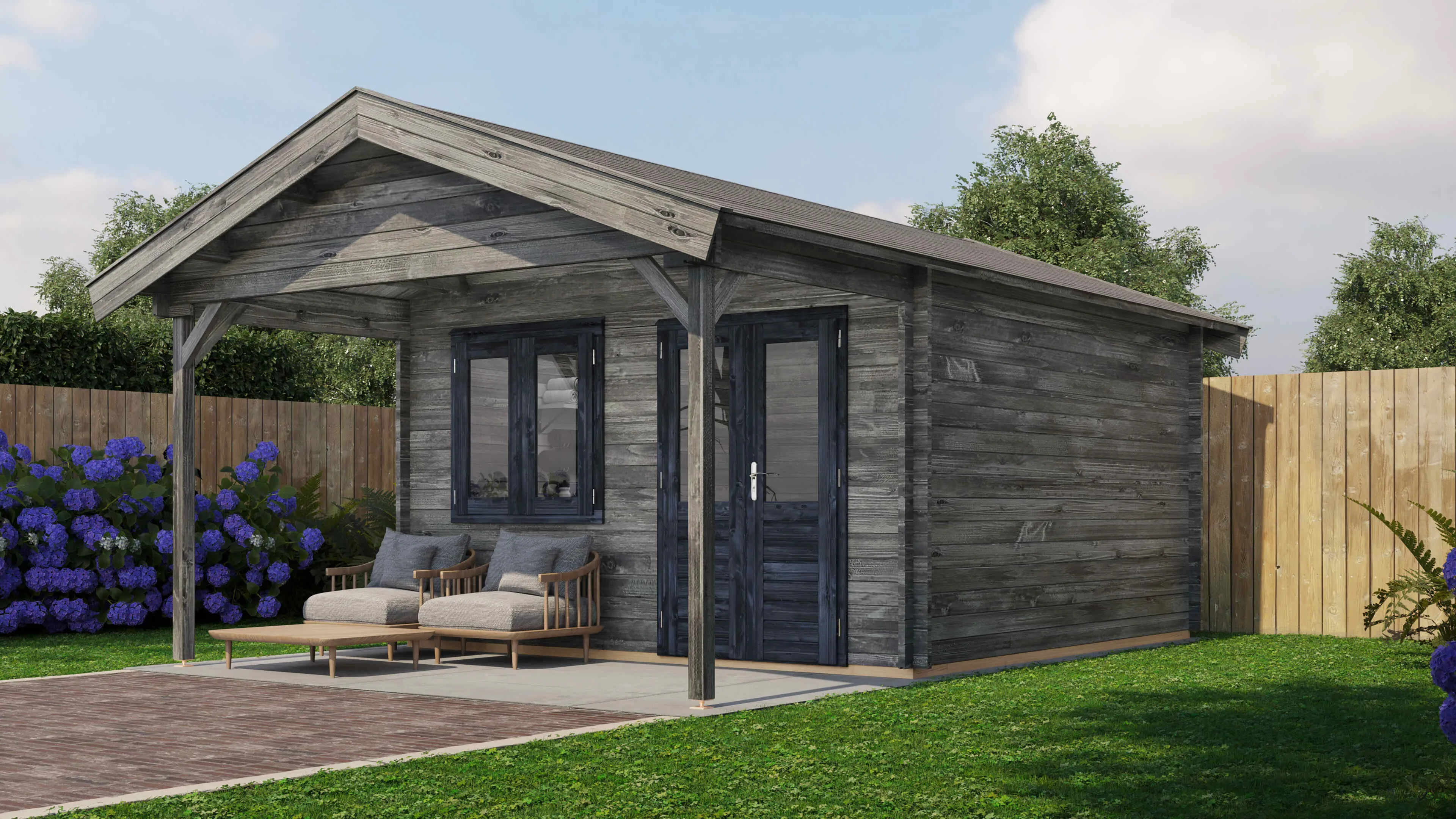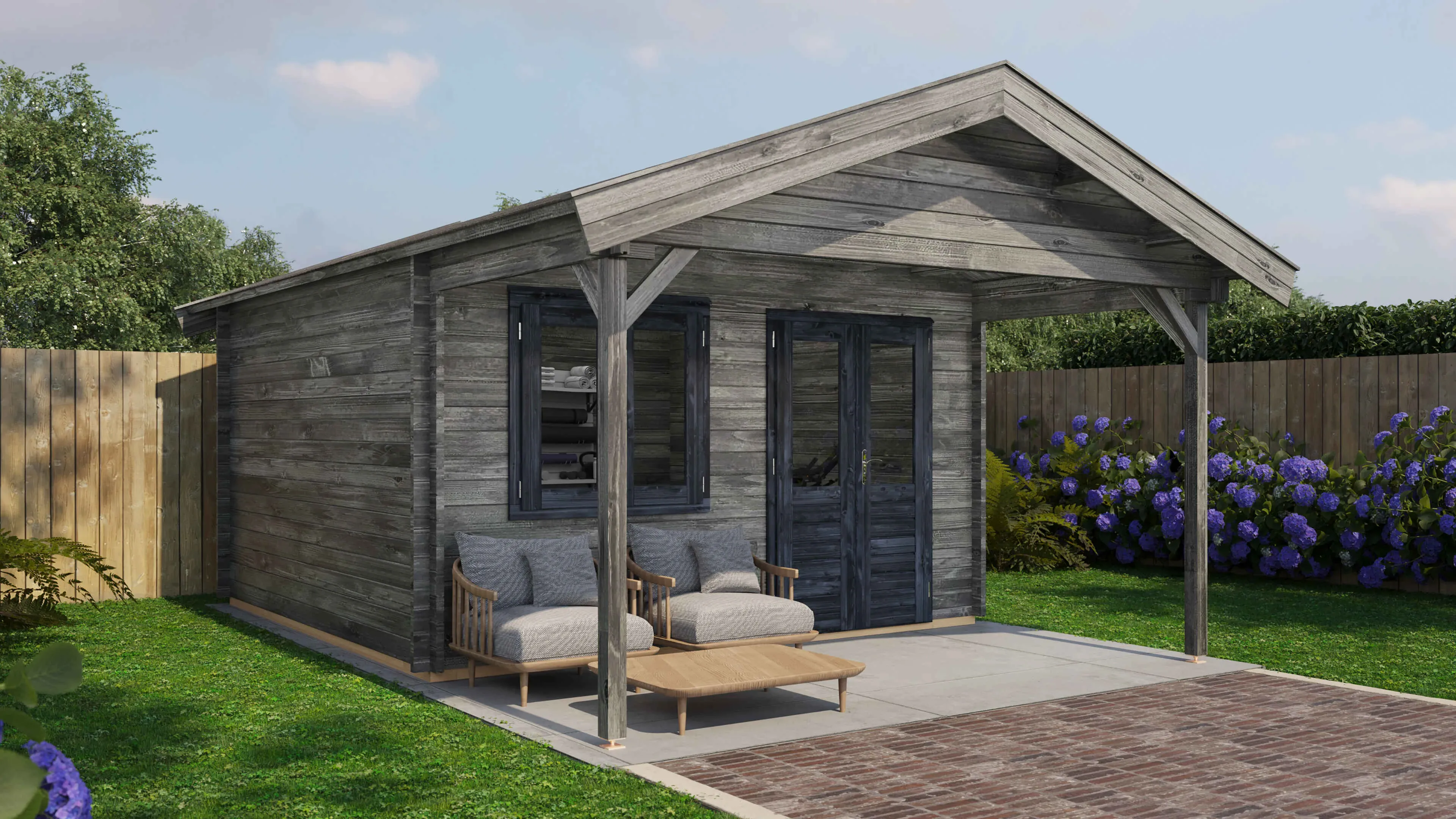 Das Lugarde Select Blockhaus verbindet traditionelle Holzbauweise mit moderner Funktionalität. Mit einer Grundfläche von 400 × 400 cm bietet es vielseitige Nutzungsmöglichkeiten für Ihren Garten.
