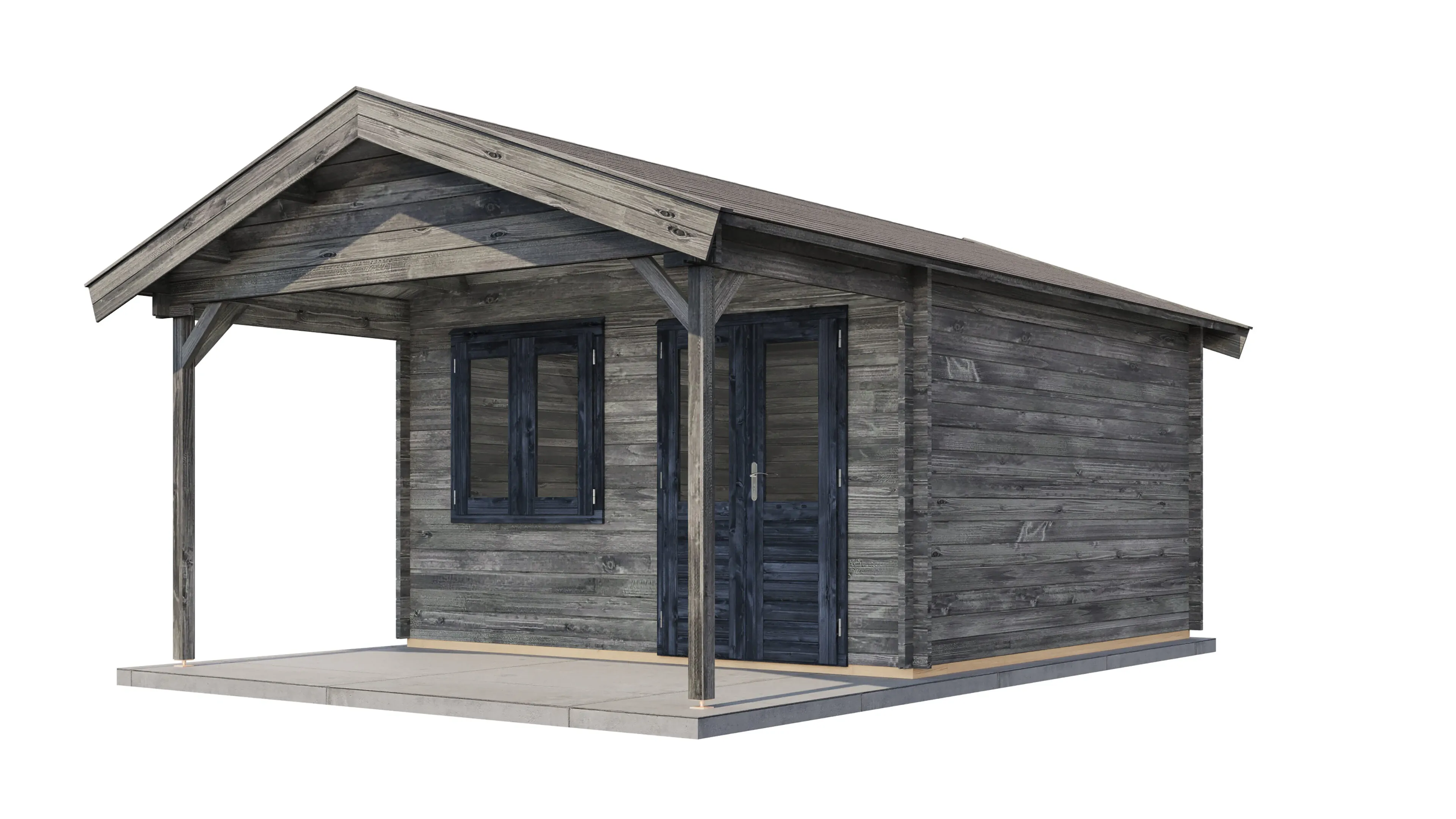 Produktinformationen "Lugarde Select Blockhaus Herford mit Vordach 400x400cm + 200cm - Kesseldruck Grau"