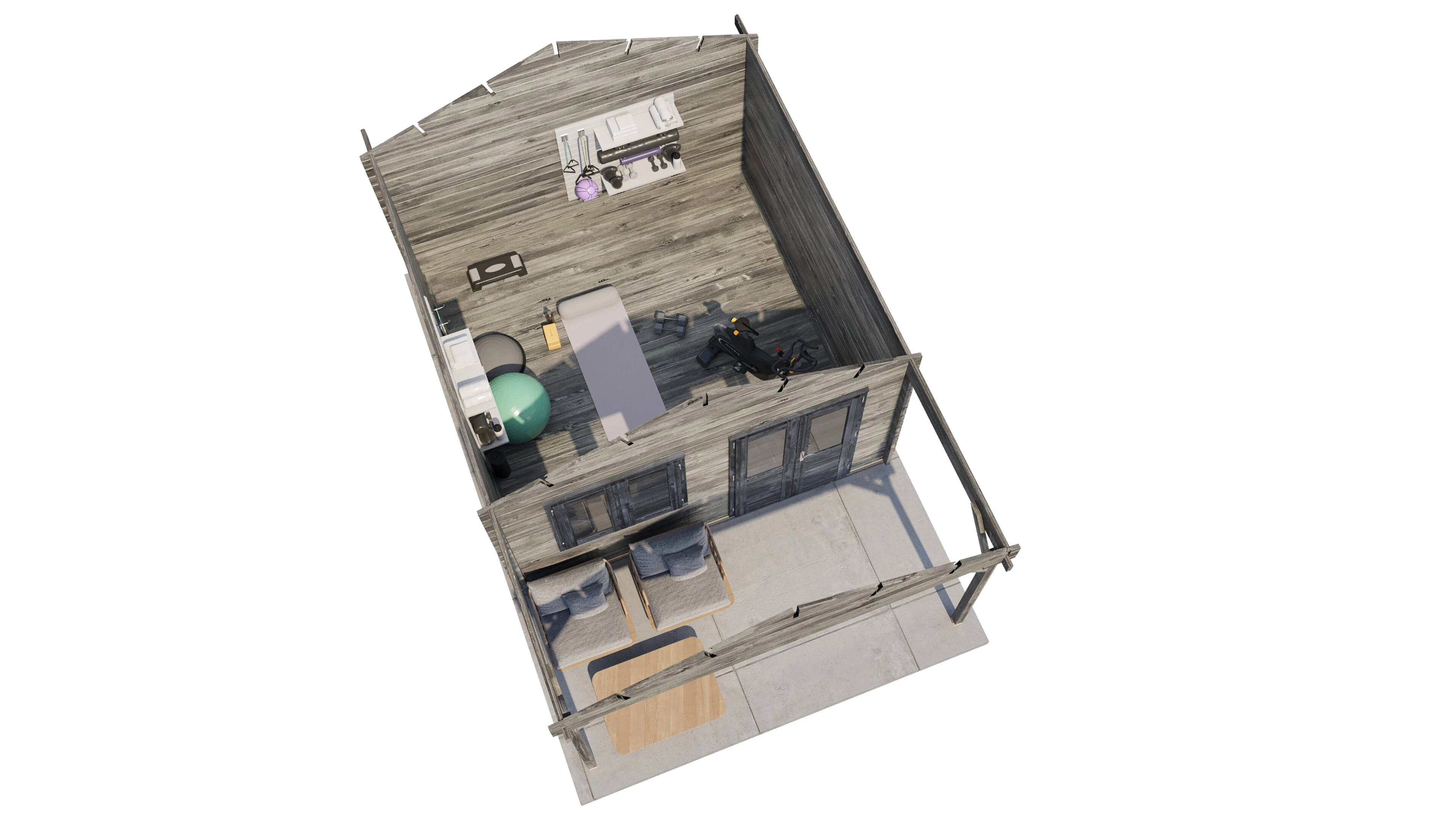 - Grundfläche: 400 × 400 cm