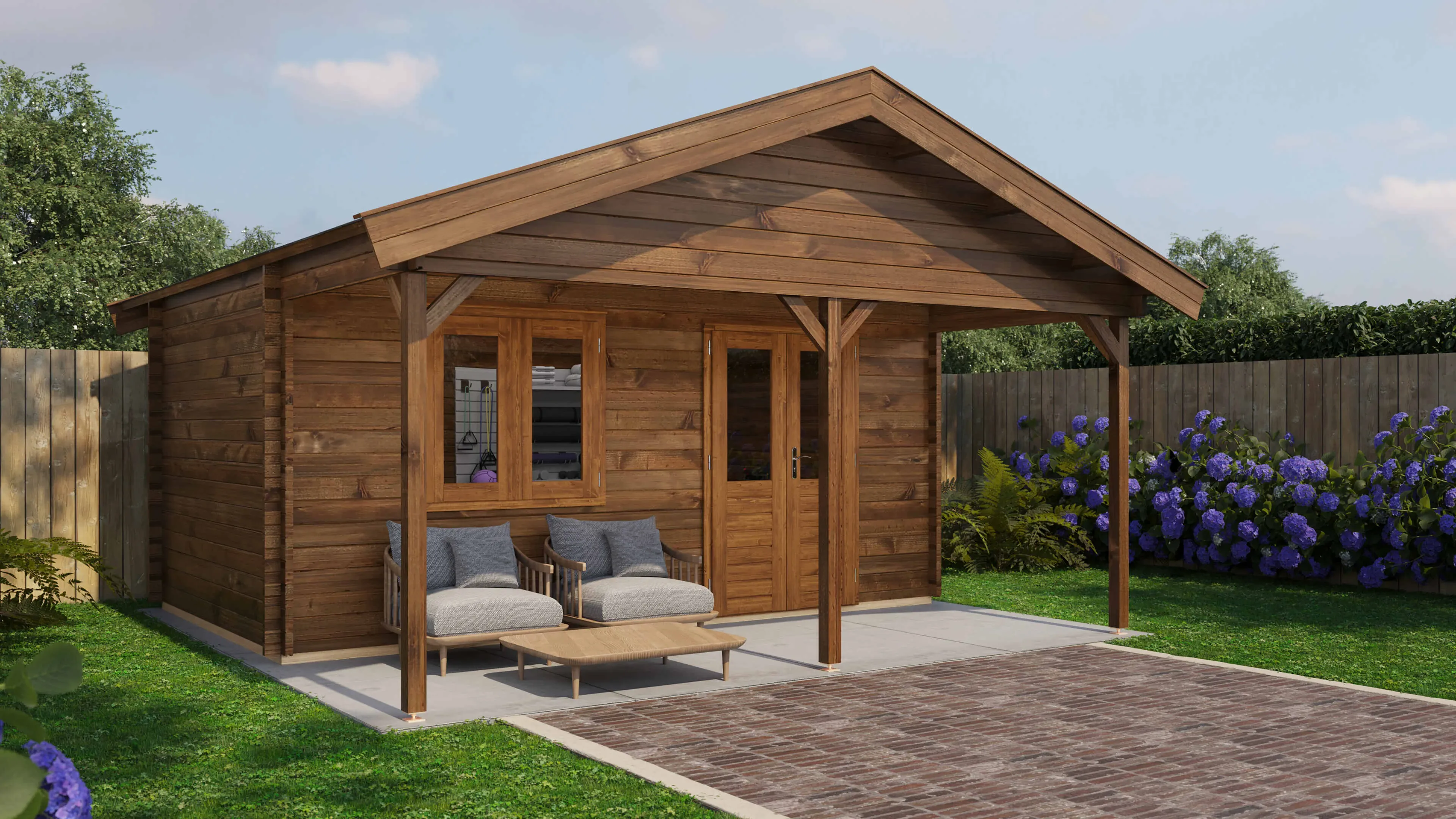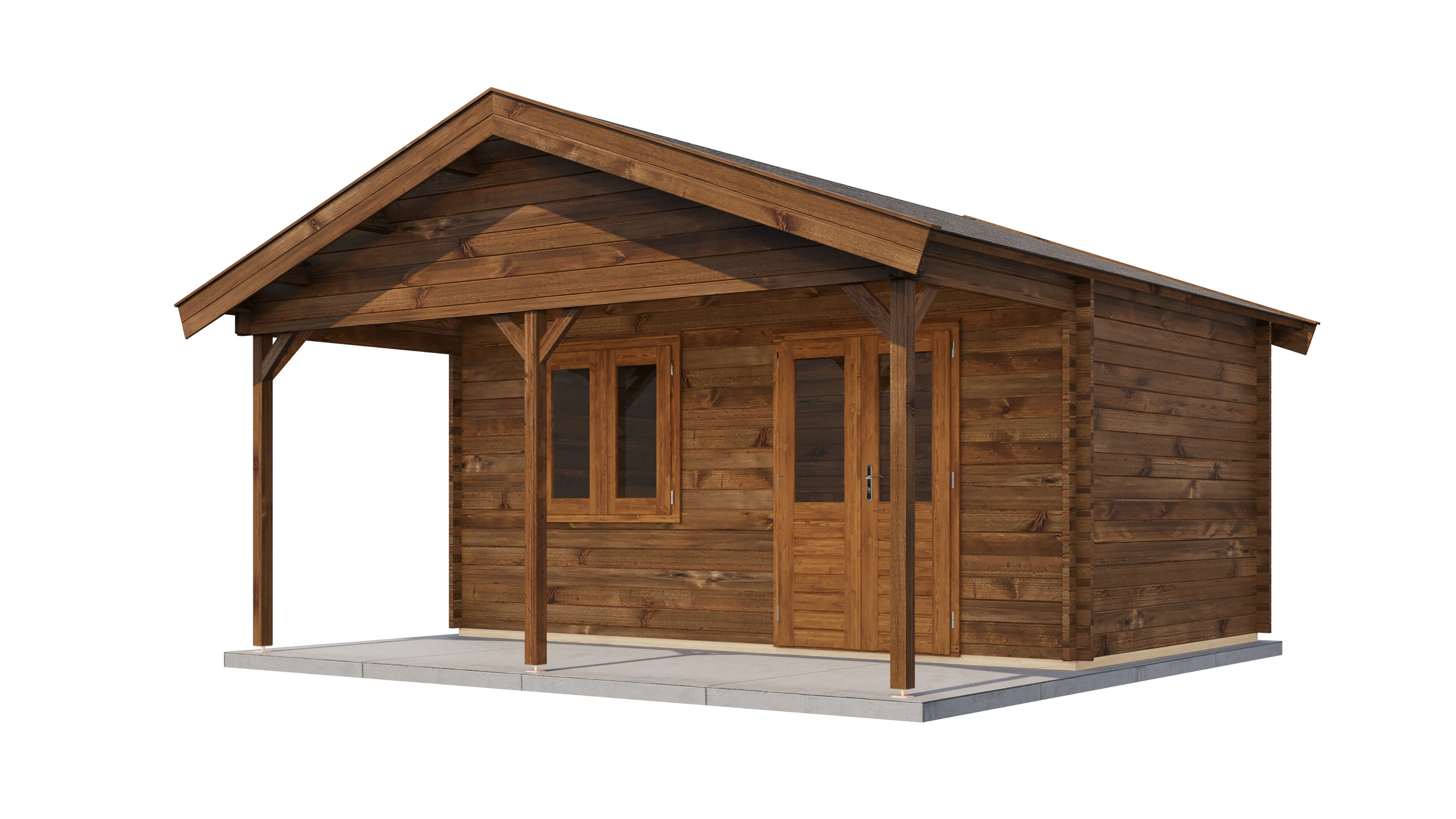 Produktinformationen "Lugarde Select Blockhaus Hildesheim mit Vordach 500x300cm + 200cm - Kesseldruck Braun"