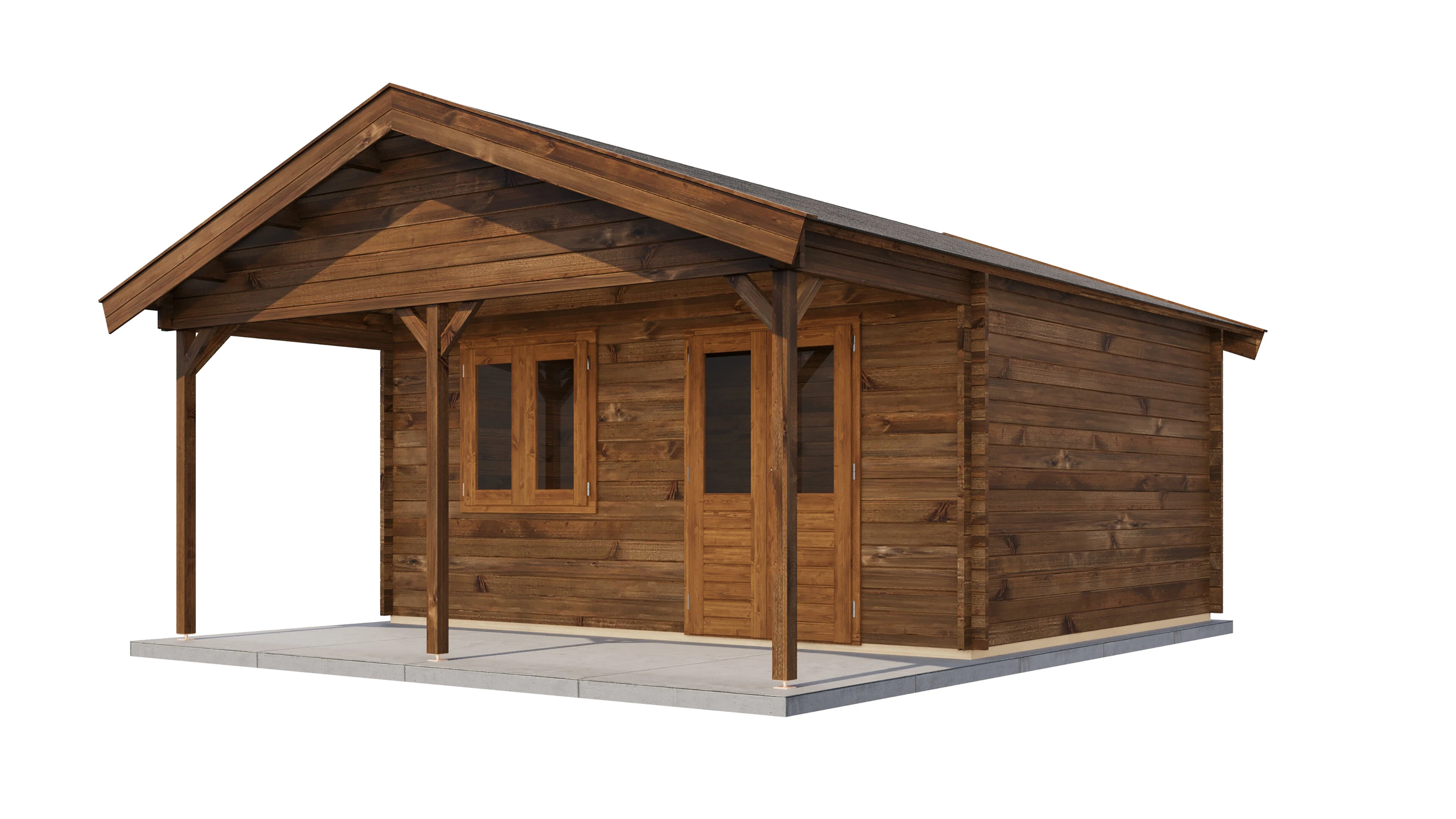 Produktinformationen "Lugarde Select Blockhaus Hof mit Vordach 500x400cm + 200cm - Kesseldruck Braun"