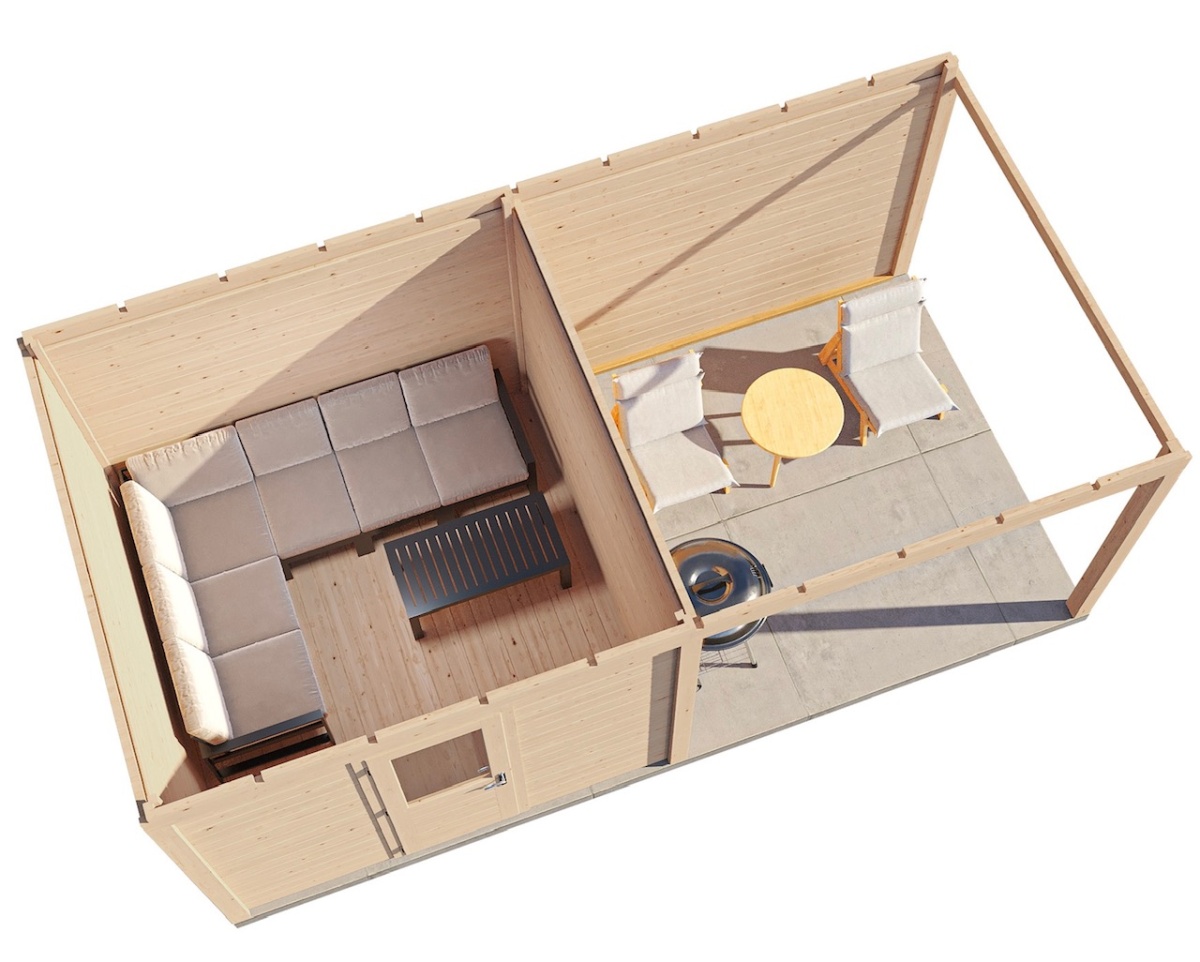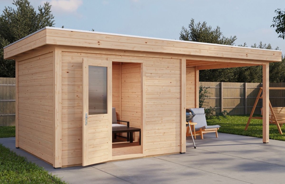 Lugarde Select Modern Gartenhaus 28mm mit Vordach Bonn 300x300cm + 300cm - Unbehandelt