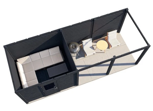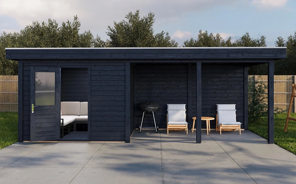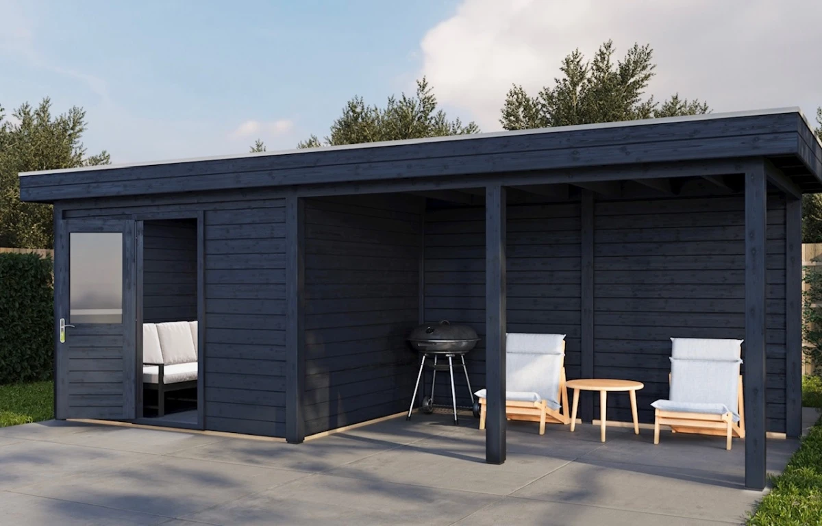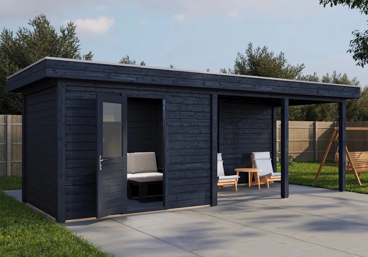 Das Lugarde Select Gartenhaus 300 × 300 cm mit 300 cm Vordach kombiniert modernes Design, massive Bauweise und hochwertige Materialien. Mit seinem eleganten Flachdach und dem großen Vordach bietet dieses Holzgartenhaus optimalen Wetterschutz und vielseitige Nutzungsmöglichkeiten – ideal als Stauraum, gemütlicher Rückzugsort, Hobbyraum oder stilvolles Gartenbüro.
