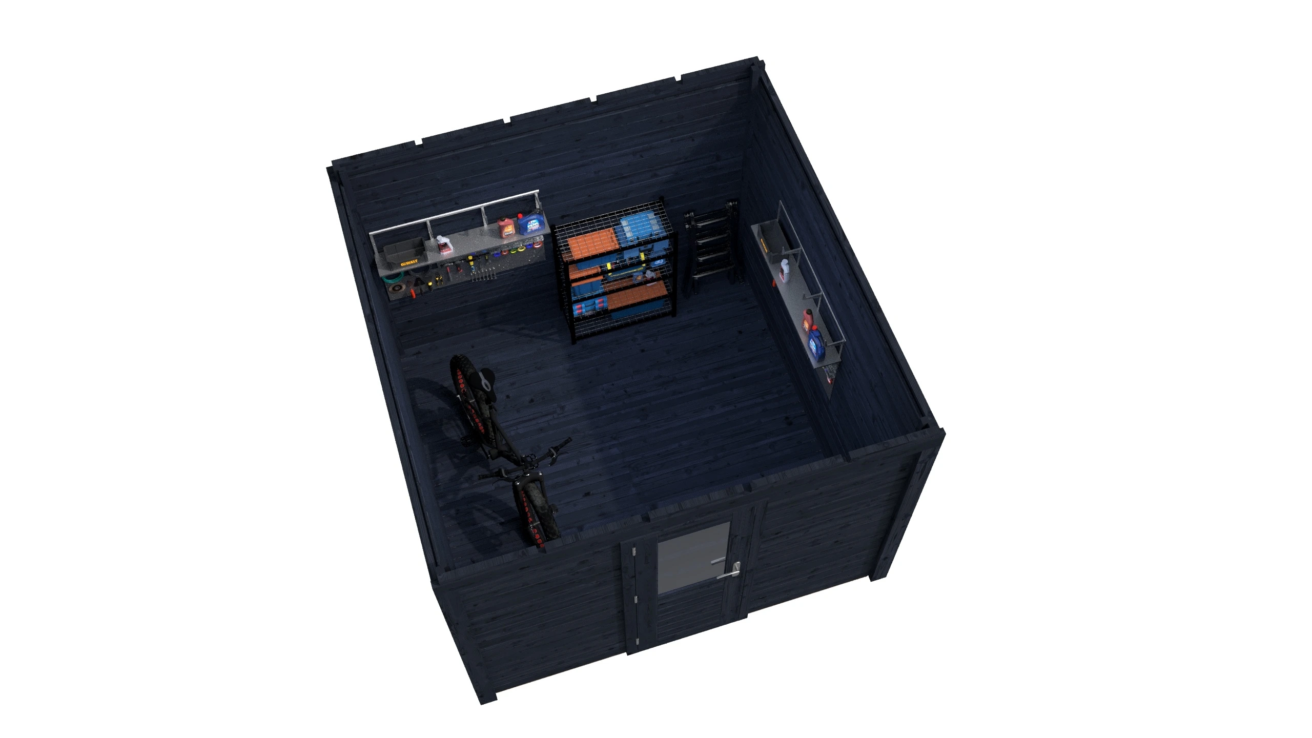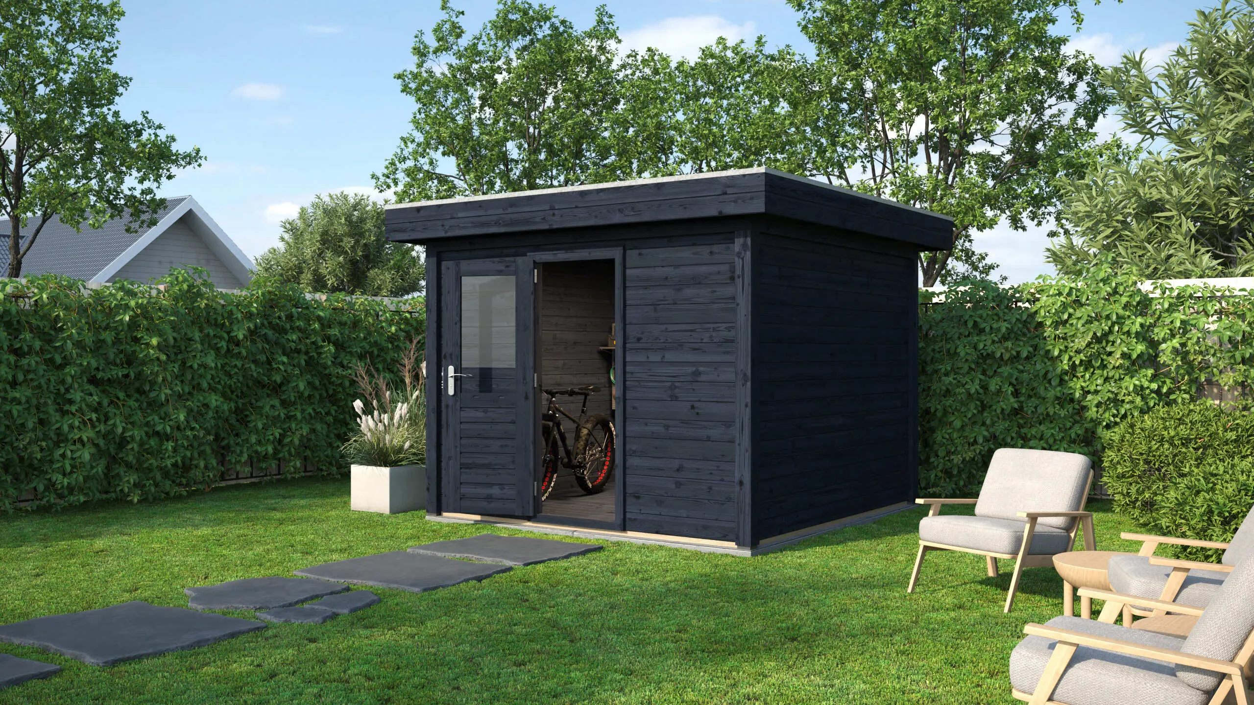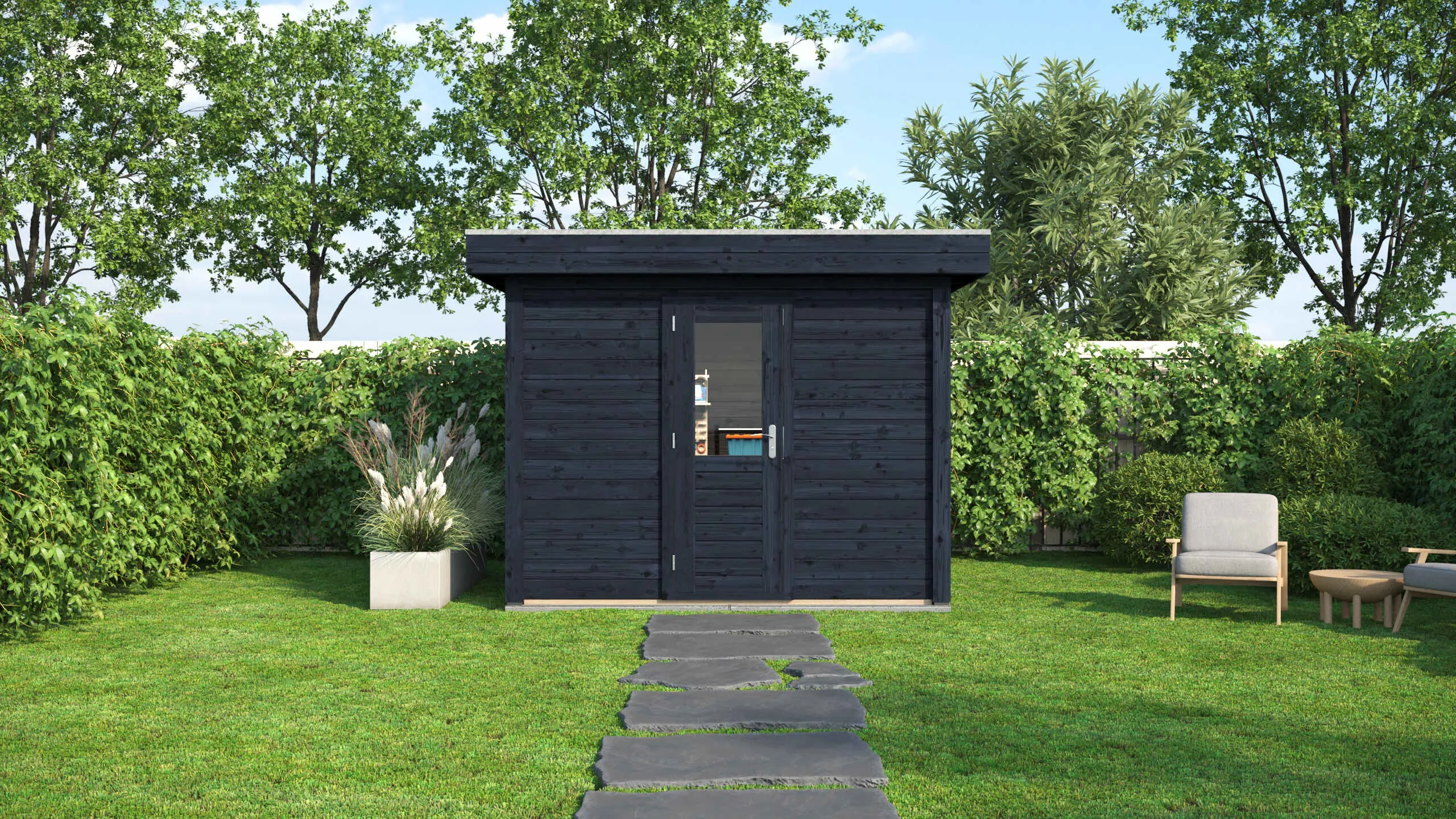 Das Lugarde Select Modern Gartenhaus zeichnet sich durch seine klare, zeitgemäße Architektur aus. Die Grundfläche von 300 × 300 cm ermöglicht eine flexible Nutzung als Arbeitsraum, Hobbyraum oder Rückzugsort.
