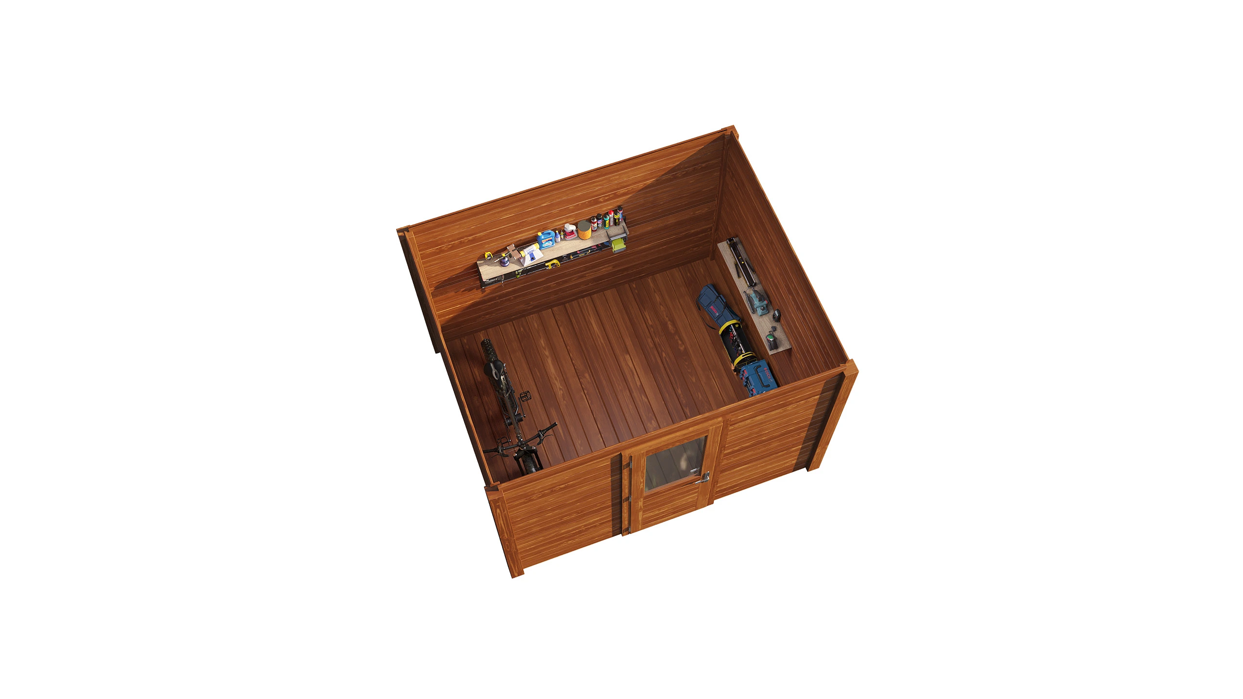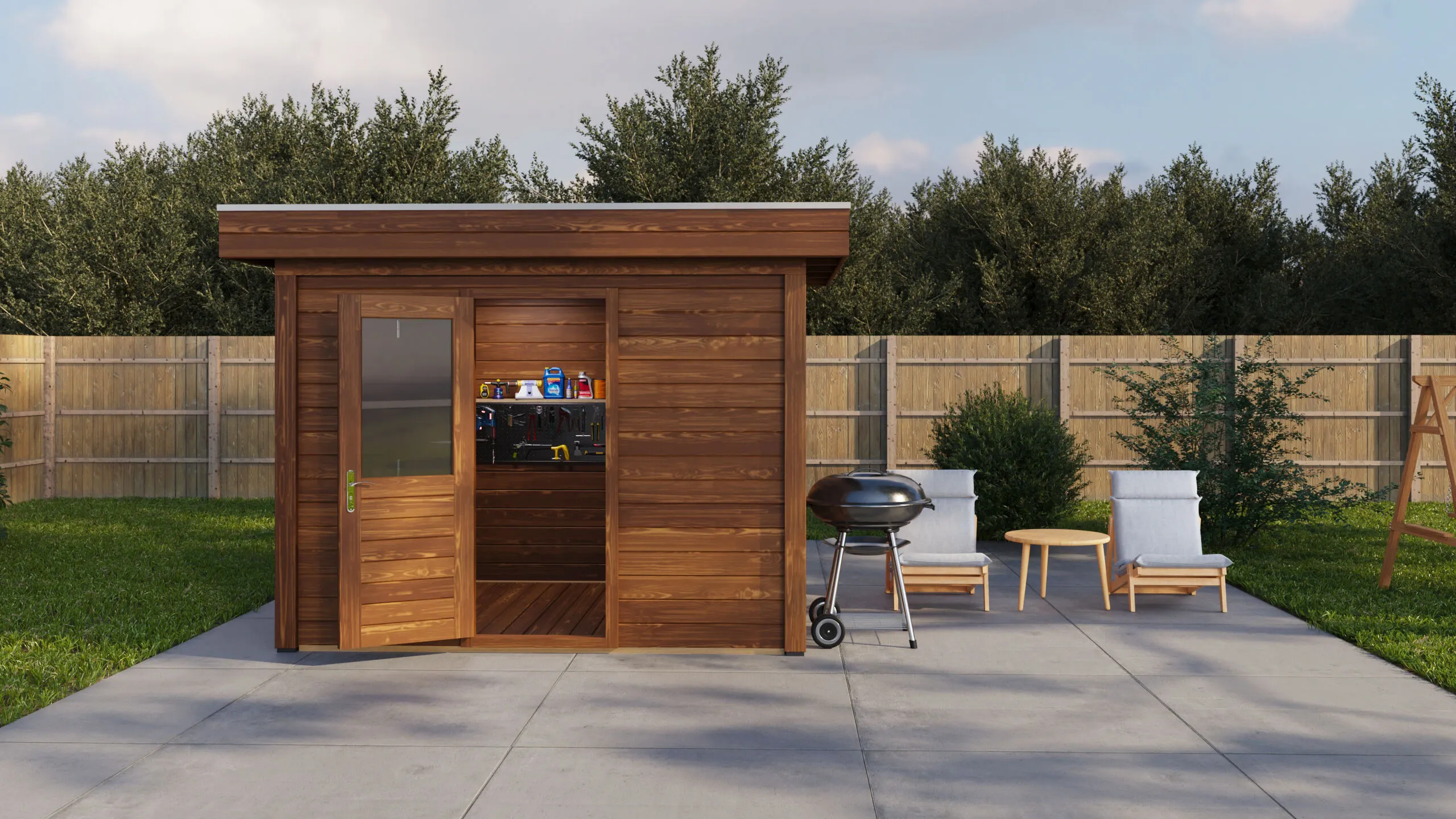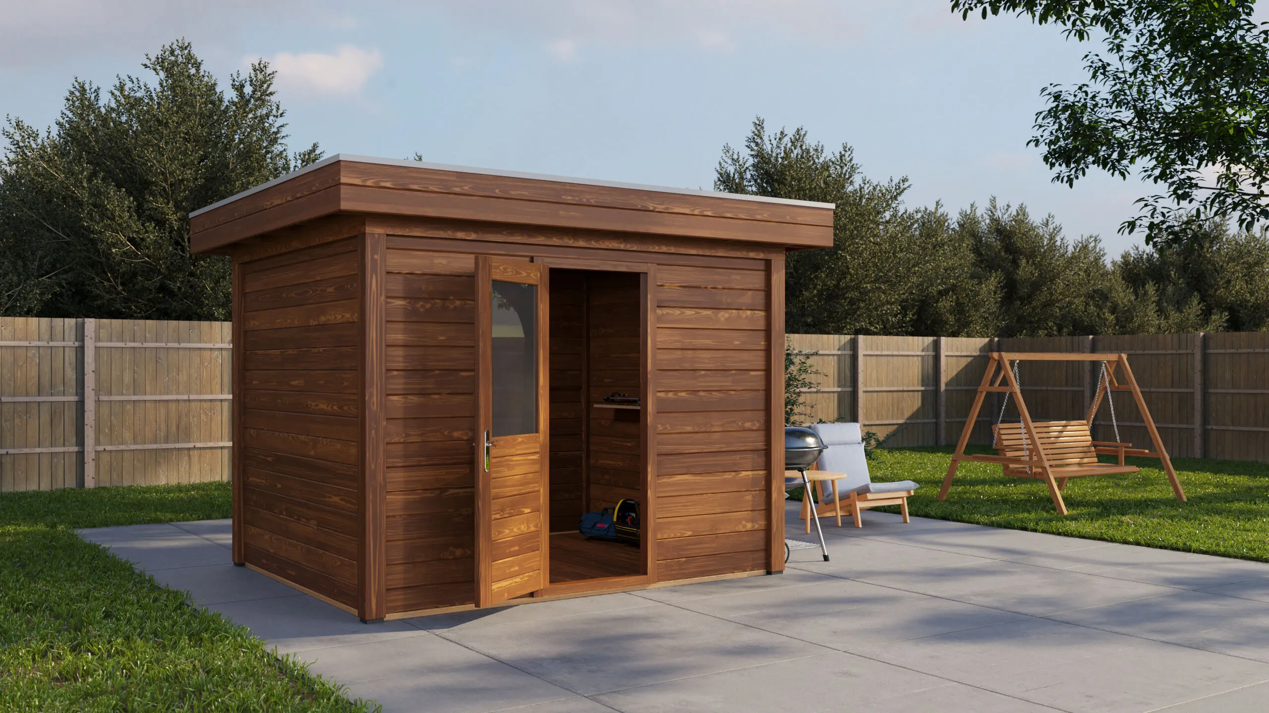 Das Lugarde Select Modern Gartenhaus zeichnet sich durch seine klare, zeitgemäße Architektur aus. Die Grundfläche von 300 × 250 cm ermöglicht eine flexible Nutzung als Arbeitsraum, Hobbyraum oder Rückzugsort.